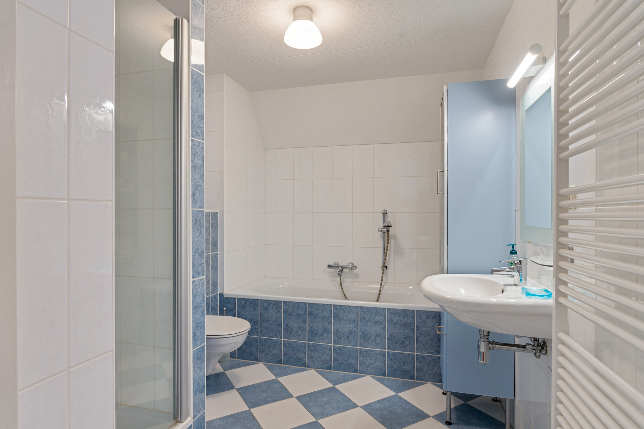 De badkamer ligt centraal op de verdieping en is voorzien van een douche en wastafel. Het separate toilet op de overloop zorgt voor extra gemak tijdens drukke ochtenden.