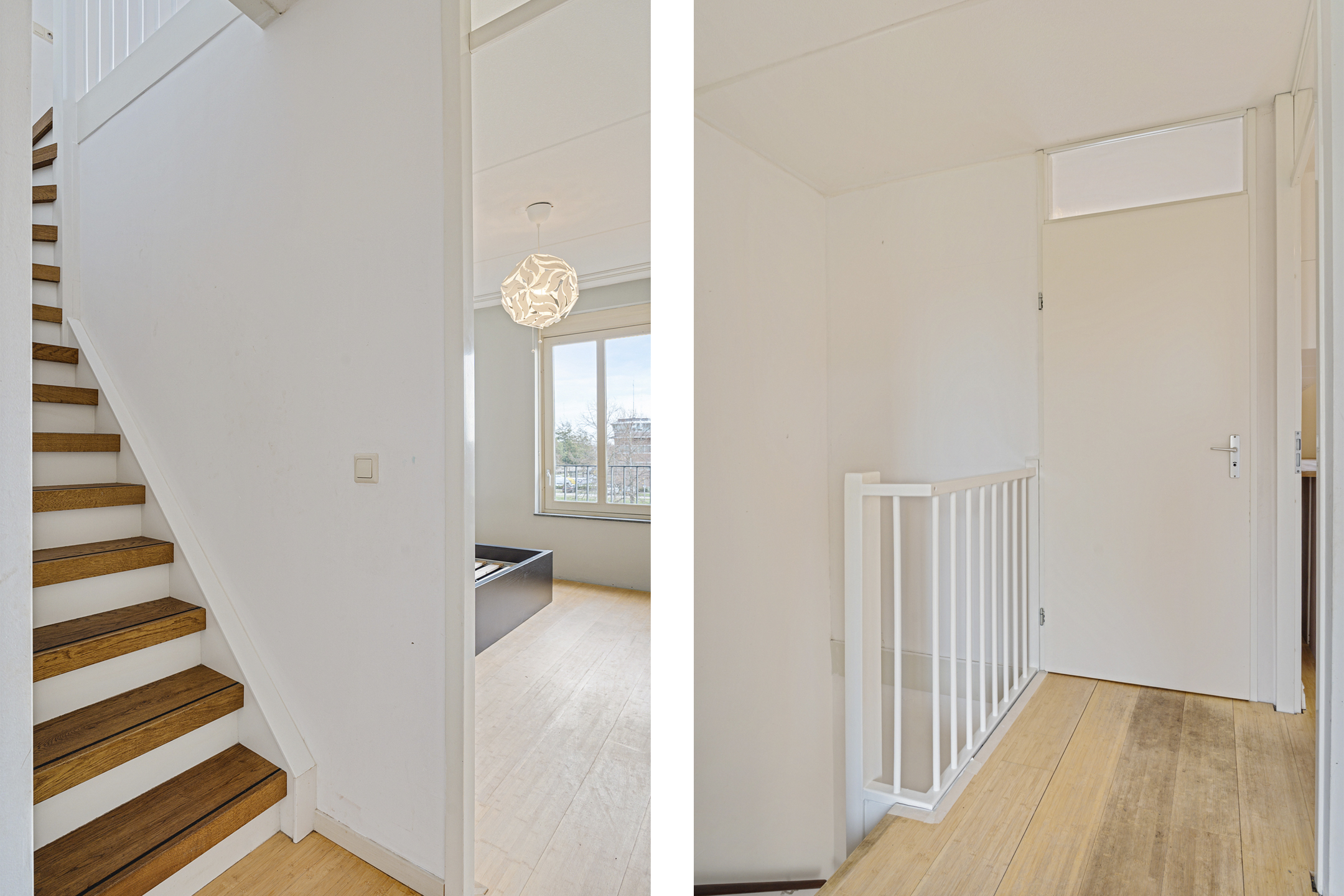 De ruime overloop leidt naar de masterbedroom aan de voorzijde, voorzien van een vaste kast en drie Franse balkons. Aan de achterzijde tref je de recent vernieuwde badkamer (2024) met ligbad, aparte douche, wastafelmeubel, designradiator en toilet. Daarnaast ligt hier nog een ruime slaapkamer.