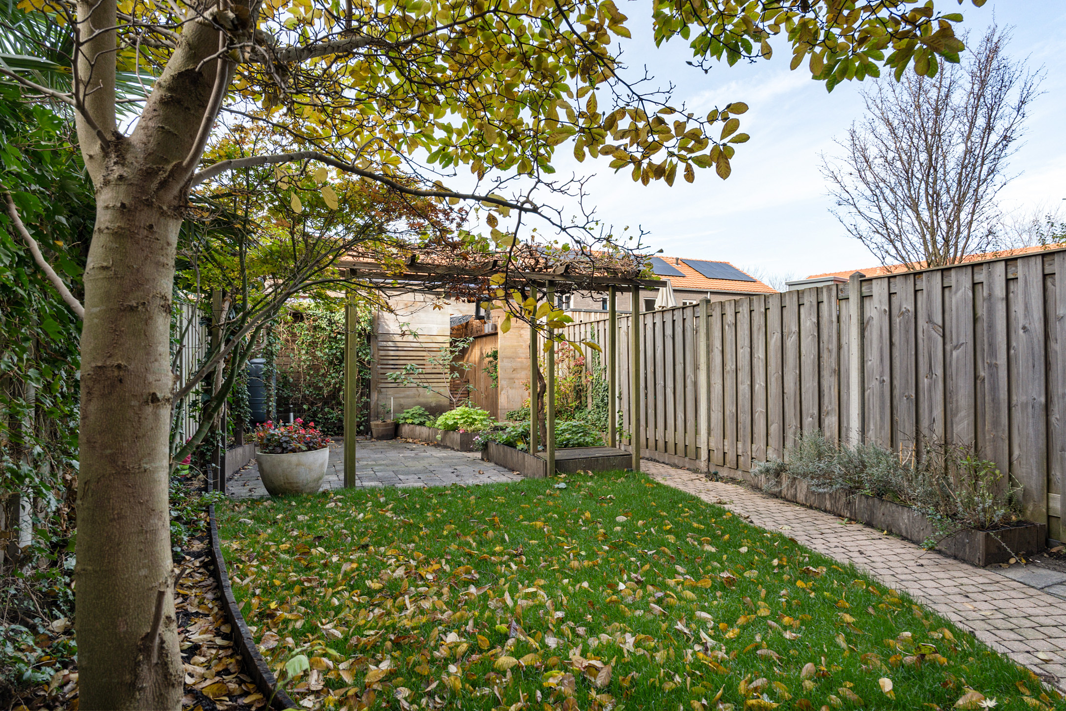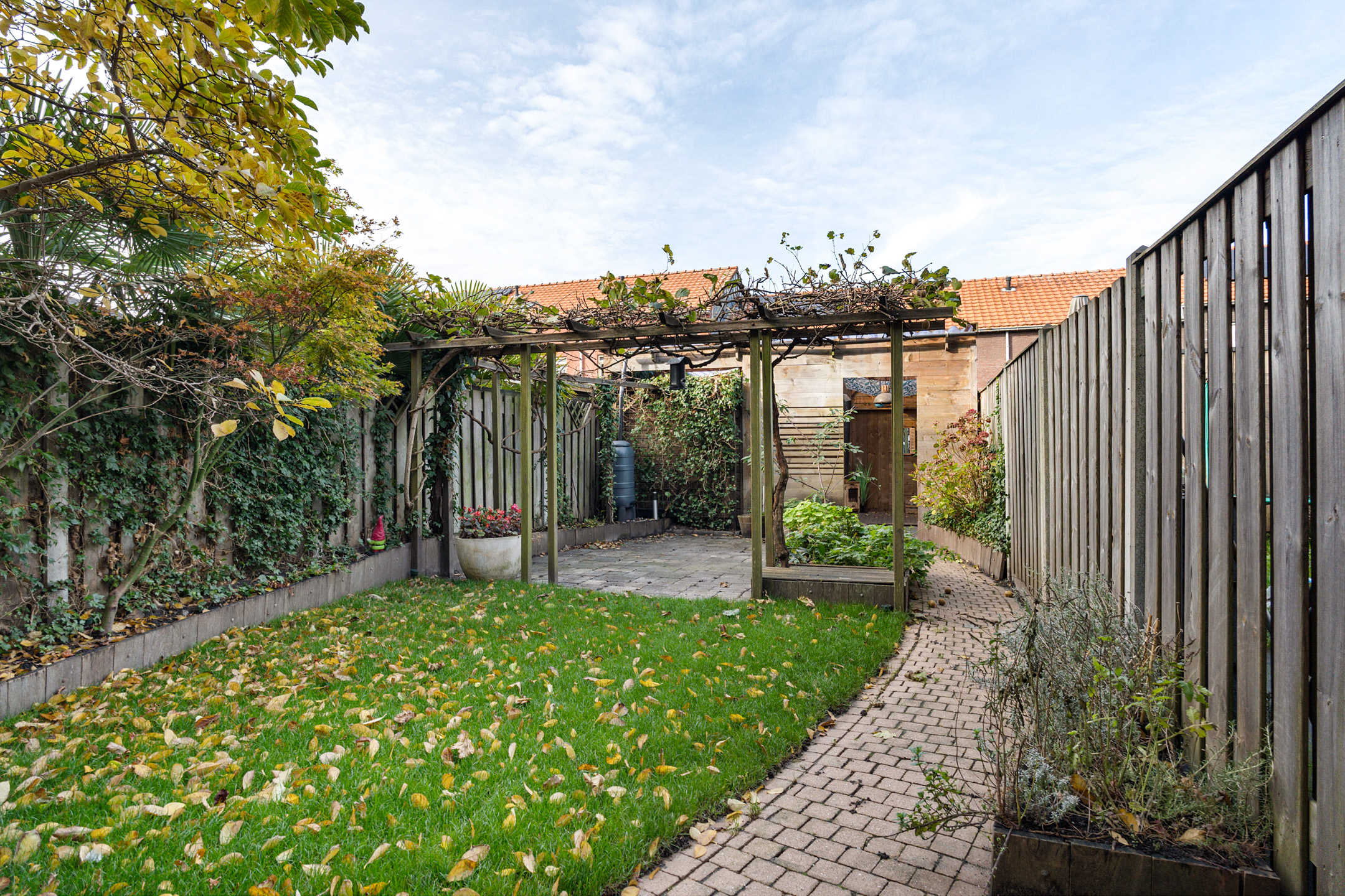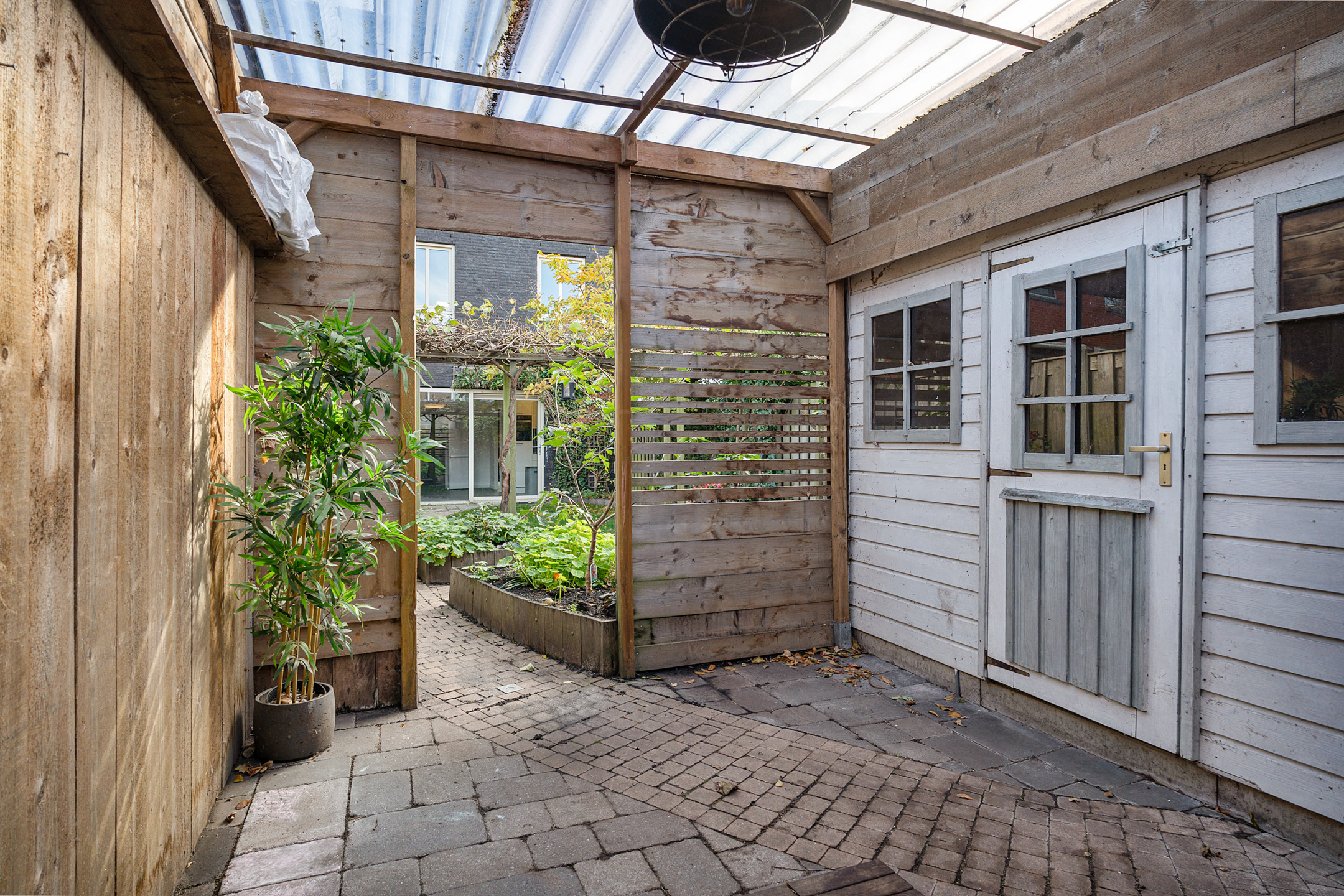 De diepe achtertuin met overkapping en achterom maakt het geheel compleet.