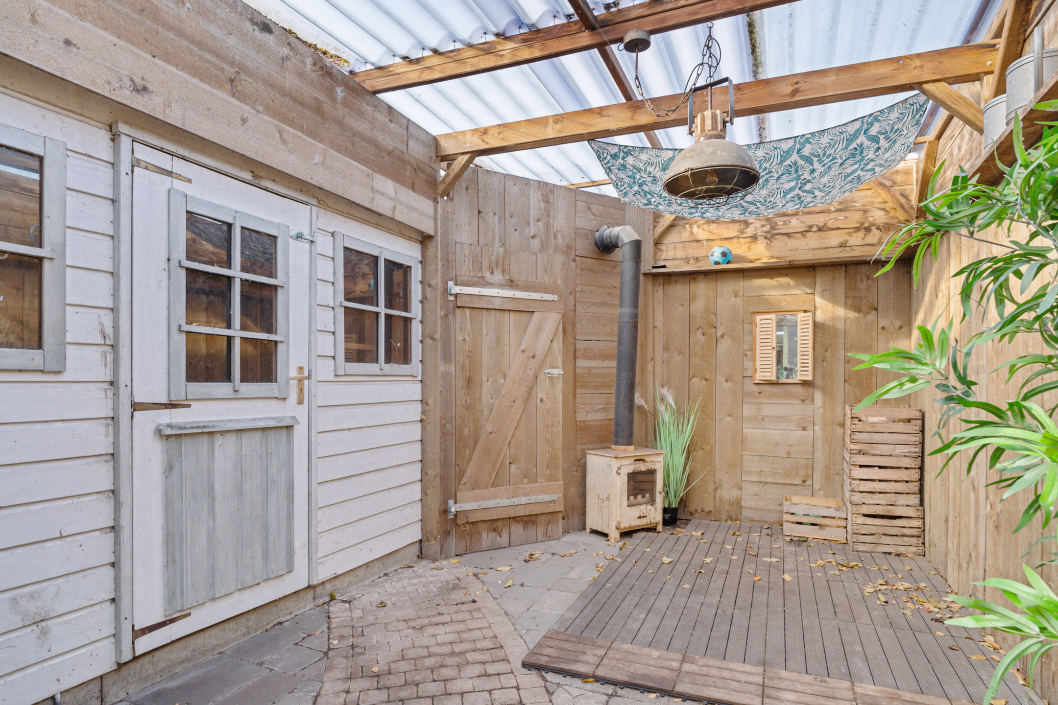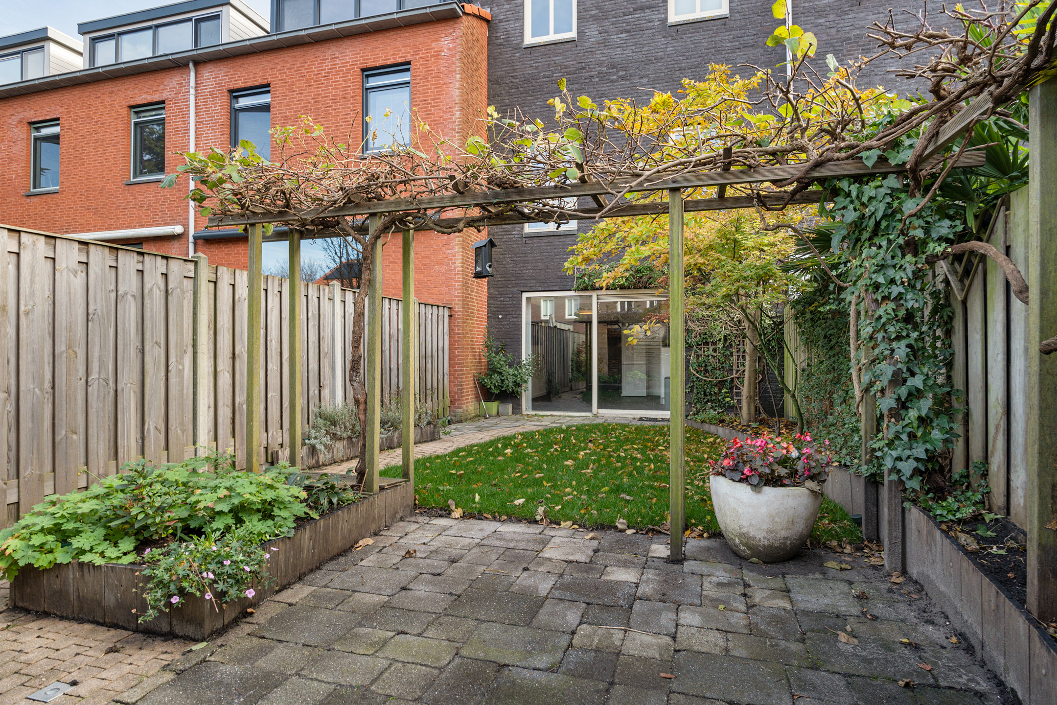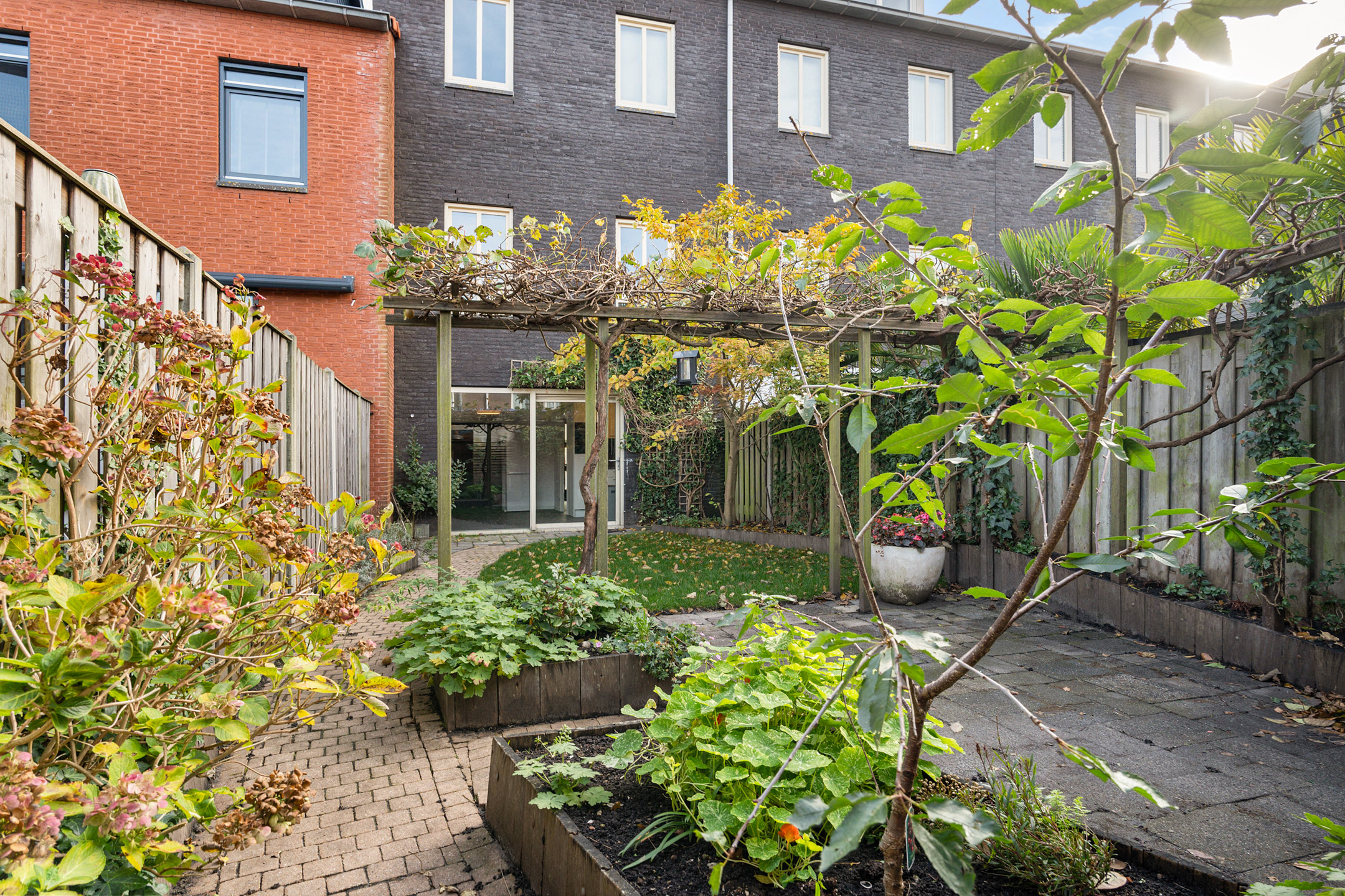 De diepe achtertuin met overkapping en achterom maakt het geheel compleet.