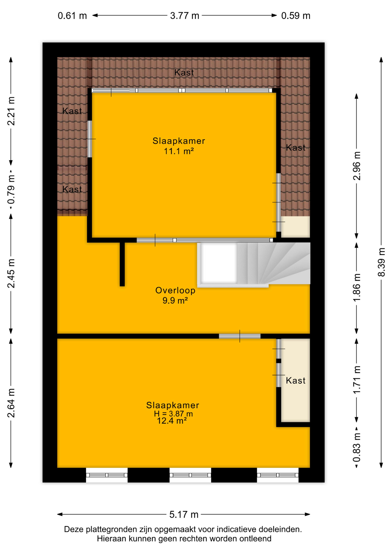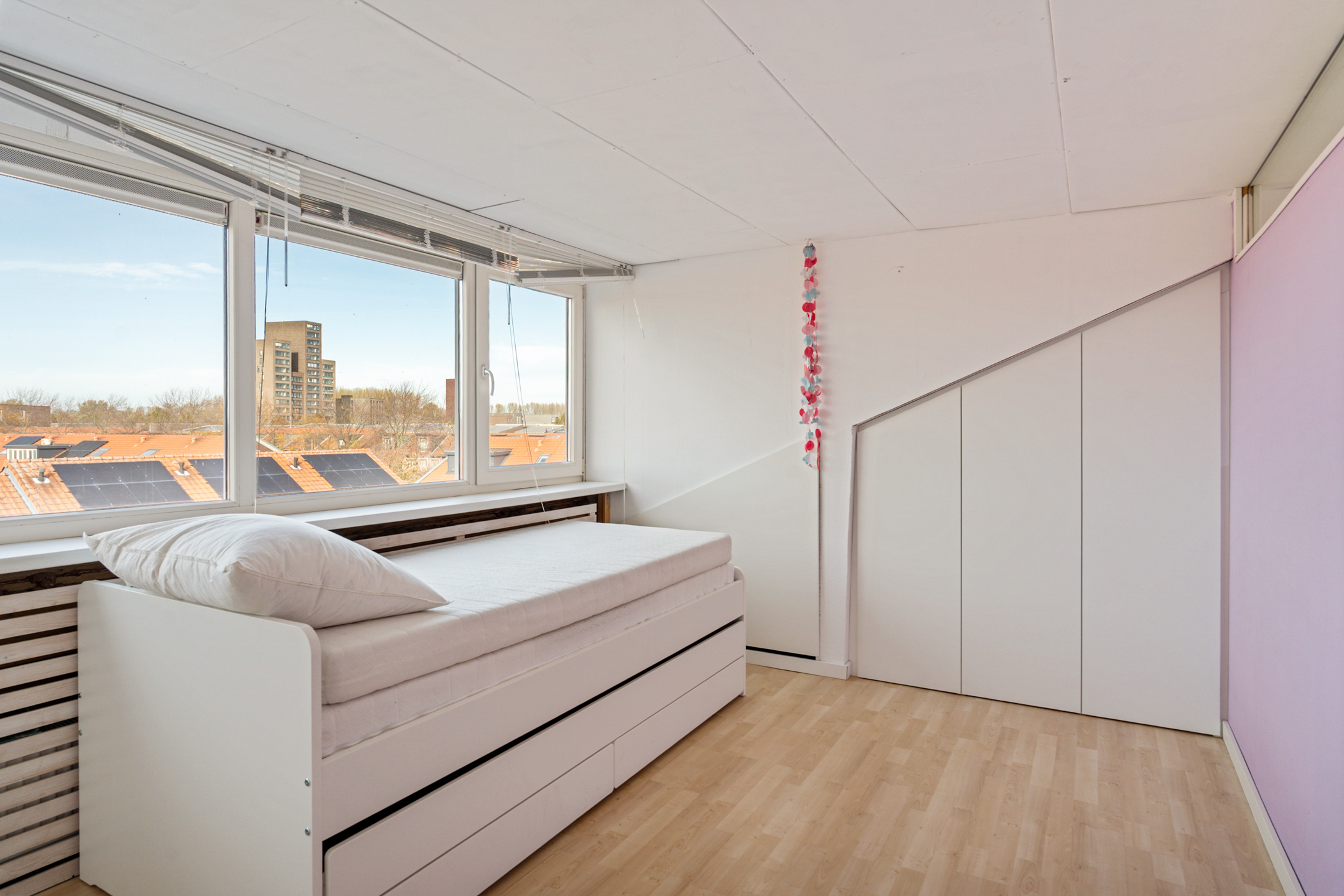 Op deze verdieping vind je twee slaapkamers: één aan de voorzijde en één aan de achterzijde, waarbij de achterkamer is voorzien van een grote dakkapel.