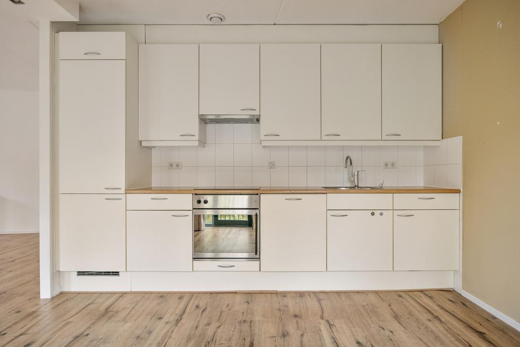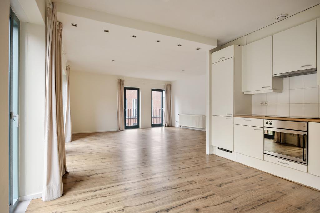 Het betreft een royaal 4 kamer appartement van ca. 104 m2. Het appartement is voorzien van een ruime woonkamer die toegang geeft tot de keuken en de separate eetkamer. De keukens zijn v.v. roomkleurige fronten, een kunststofwerkblad en ATAG-inbouwapparatuur (een elektrische kookplaat, een afzuigkap, een koel-vriescombinatie en een vaatwasmachine).