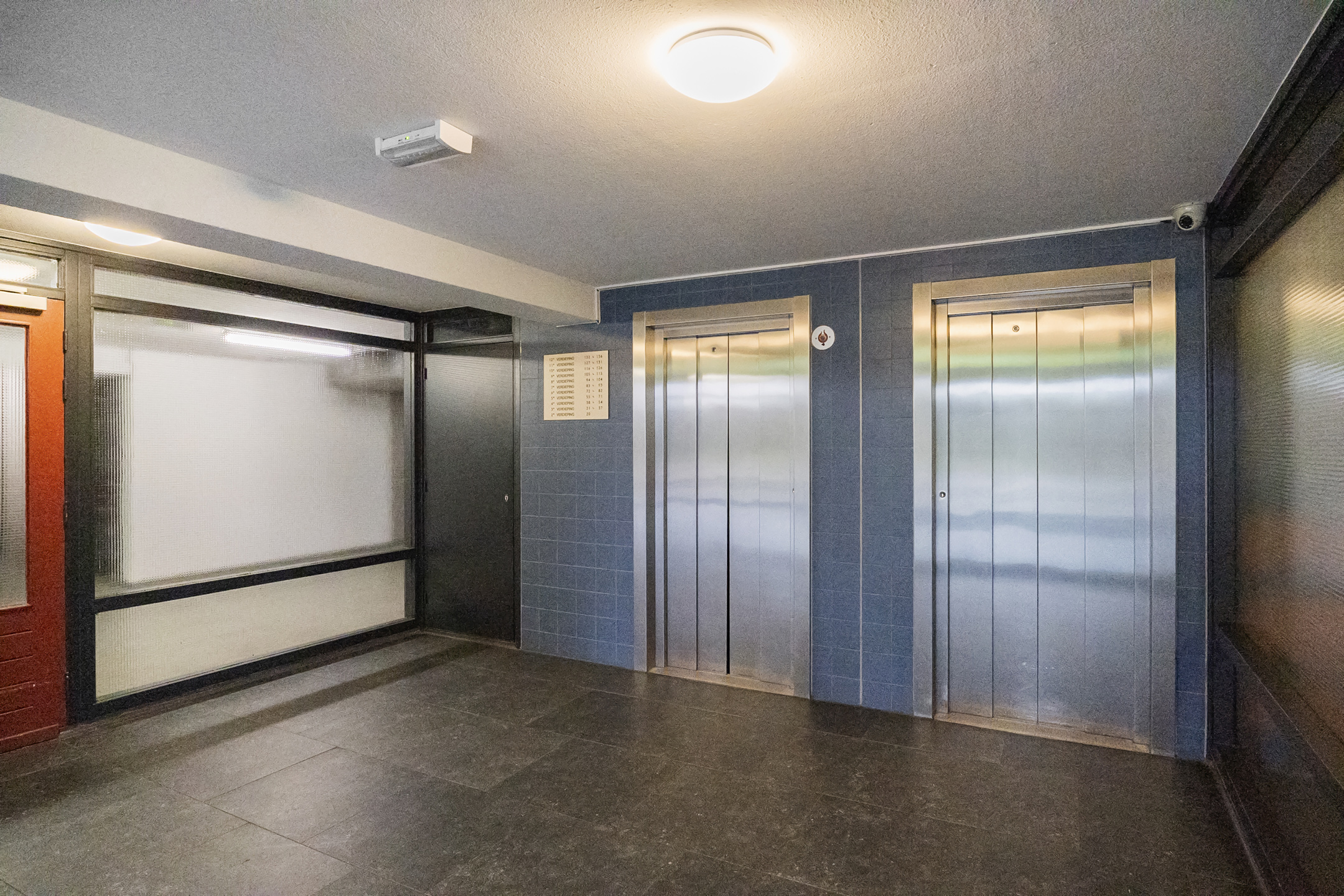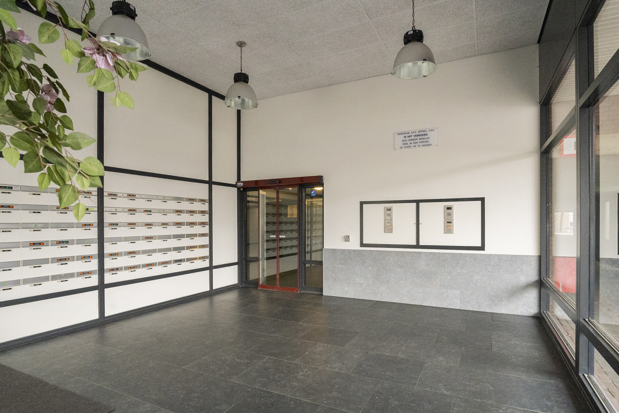 Bij de entree van het gebouw word je verwelkomd in een ruime hal met brievenbussen en een bellentableau voorzien van een videofooninstallatie. Vanuit de afgesloten hal is er toegang tot de dubbele liftinstallatie, de bergingen en de parkeergarage.