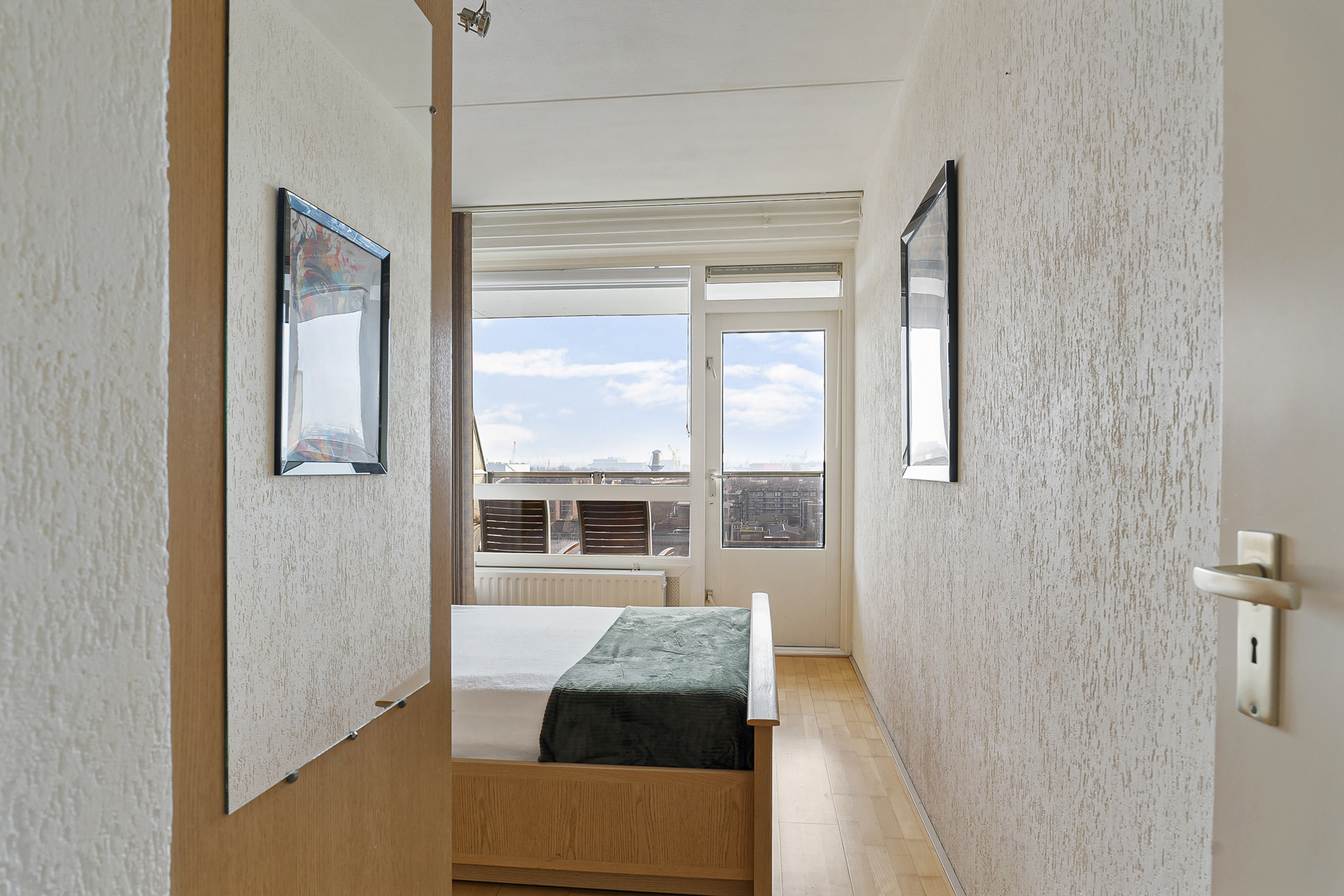 Dit fijne appartement in Schiedam ligt op de tiende verdieping en biedt een fraai uitzicht over de omgeving. Het beschikt over een ruime woonkamer met een open keuken, een royale slaapkamer en een praktische badkamer. Daarnaast heb je de luxe van een heerlijk balkon, een eigen fietsenberging en een inpandige parkeerplaats. Dit maakt het appartement een uitstekende keuze voor een jong stel of een alleenstaande die comfortabel en centraal wil wonen. Met voorzieningen zoals winkels, horeca, scholen, sportfaciliteiten, recreatie, groen en openbaar vervoer dichtbij, heb je alles wat je nodig hebt in de buurt. Bovendien woon je op loopafstand van het trendy Distillers District, waar je kunt genieten van gezellige restaurants en bars.