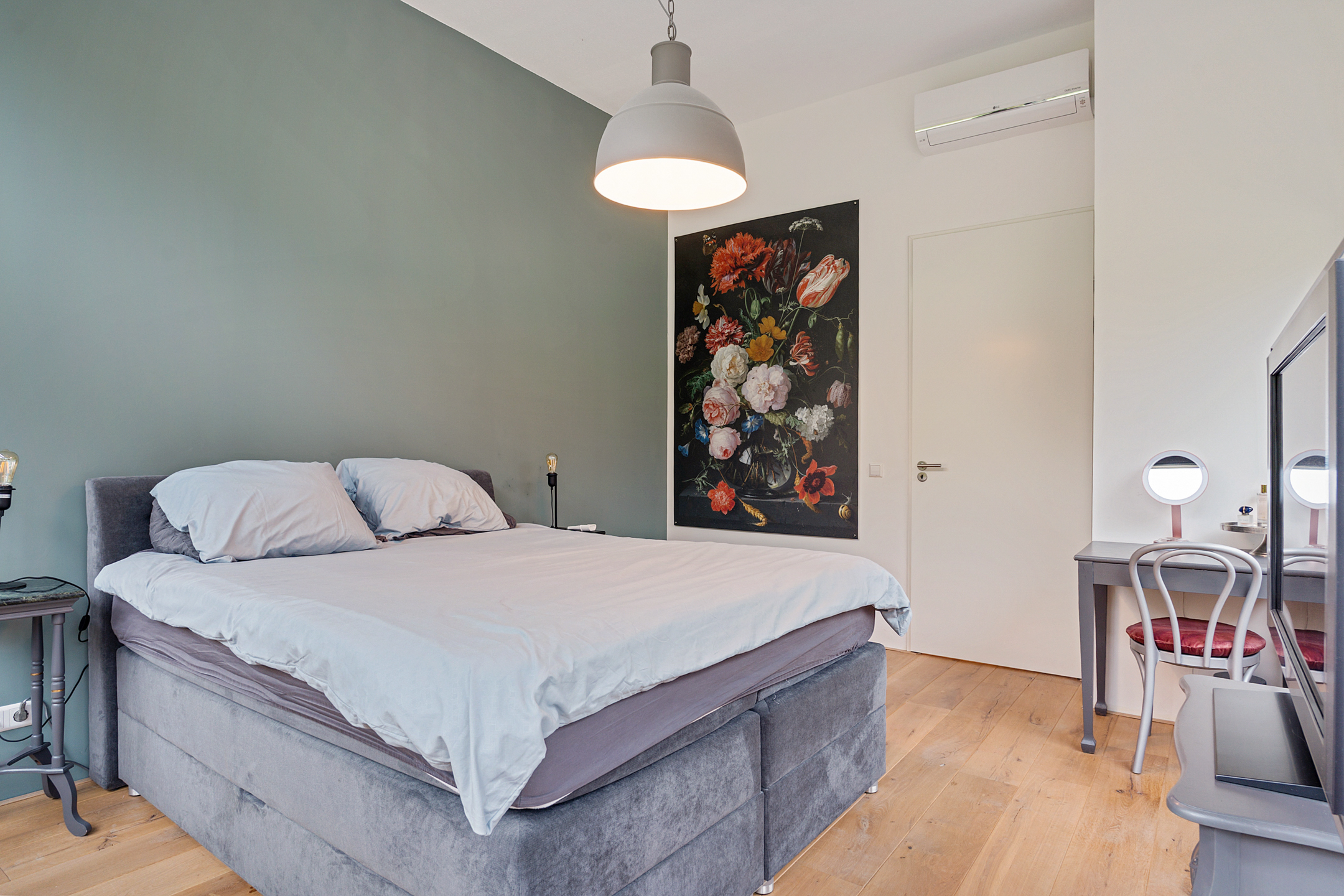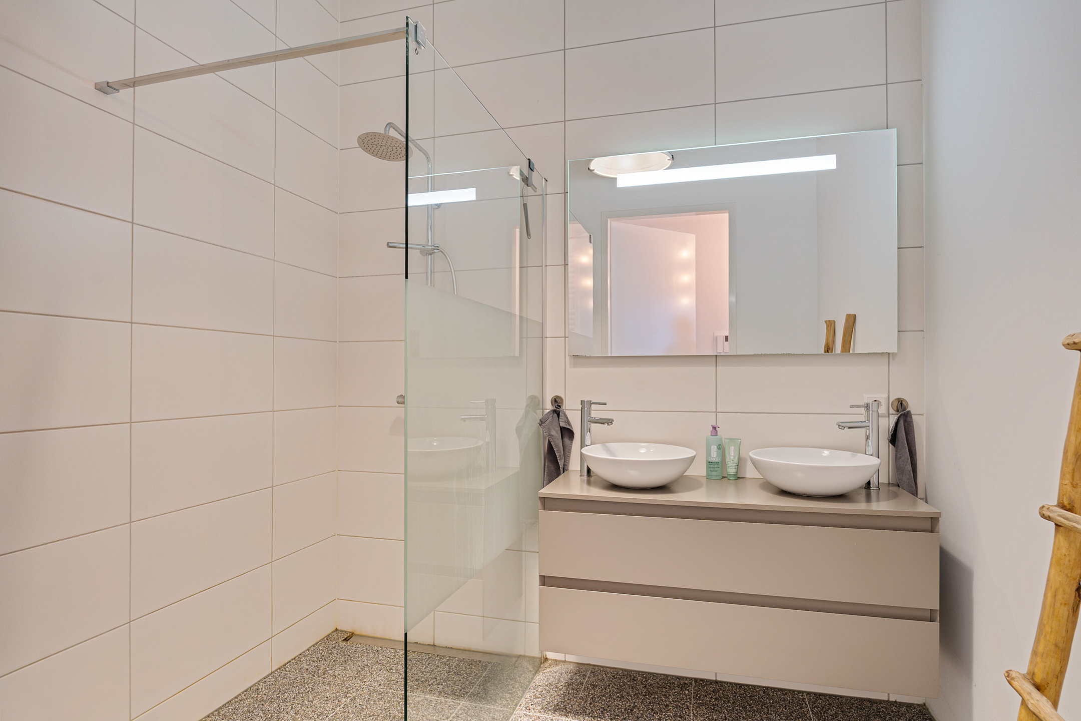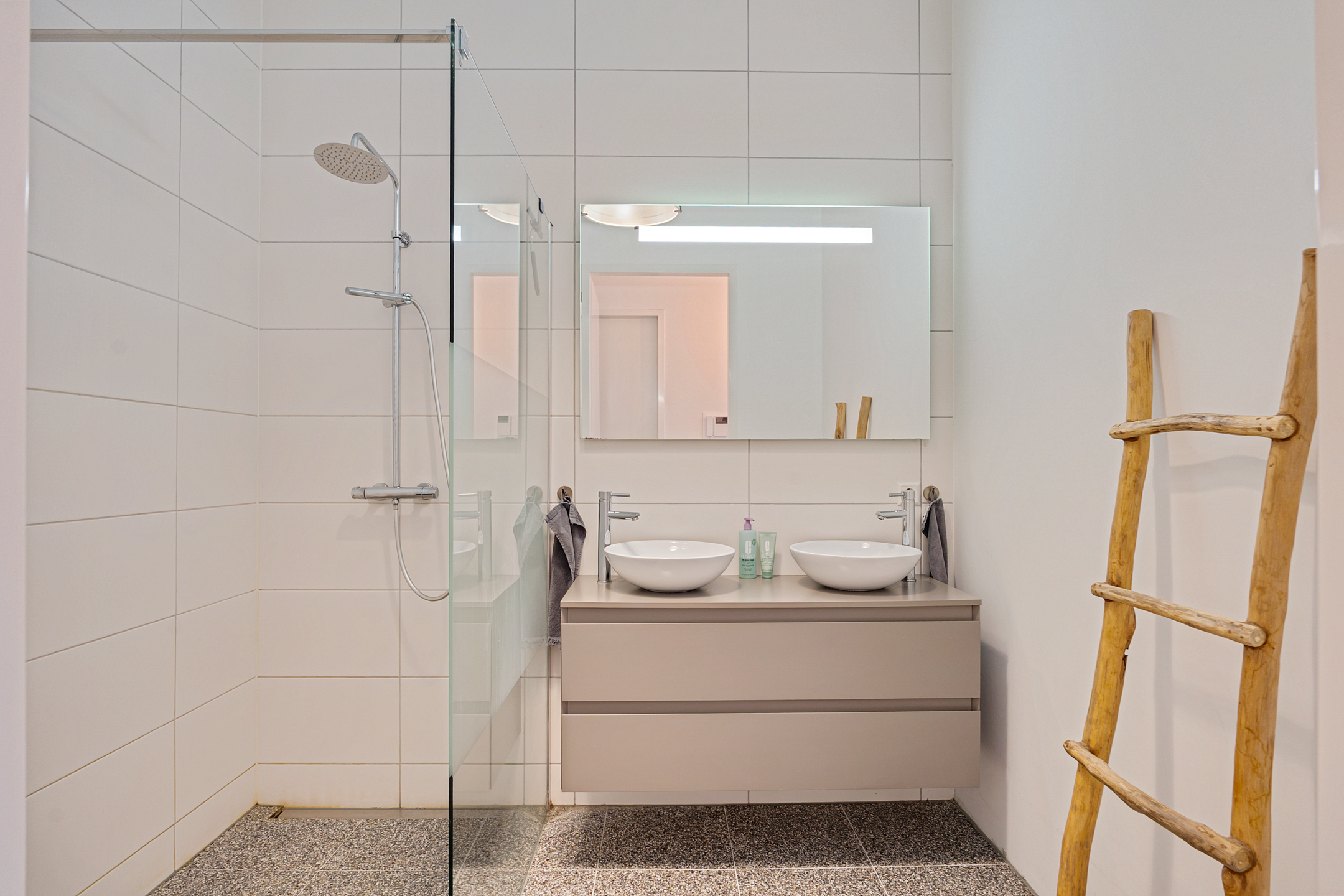 De badkamer is eigentijds uitgevoerd met grote tegels, een inloopdouche met regendouche, dubbele wastafel met meubel, spiegel en designradiator. Er zijn twee slaapkamers: een ruime hoofdslaapkamer met grote raampartij en een tweede slaapkamer, geschikt als werk-, logeer- of hobbykamer. In de slaapkamer zijn top down plisségordijnen van Veneta geplaatst (maatwerk), ideaal voor lichtregulatie en privacy.
