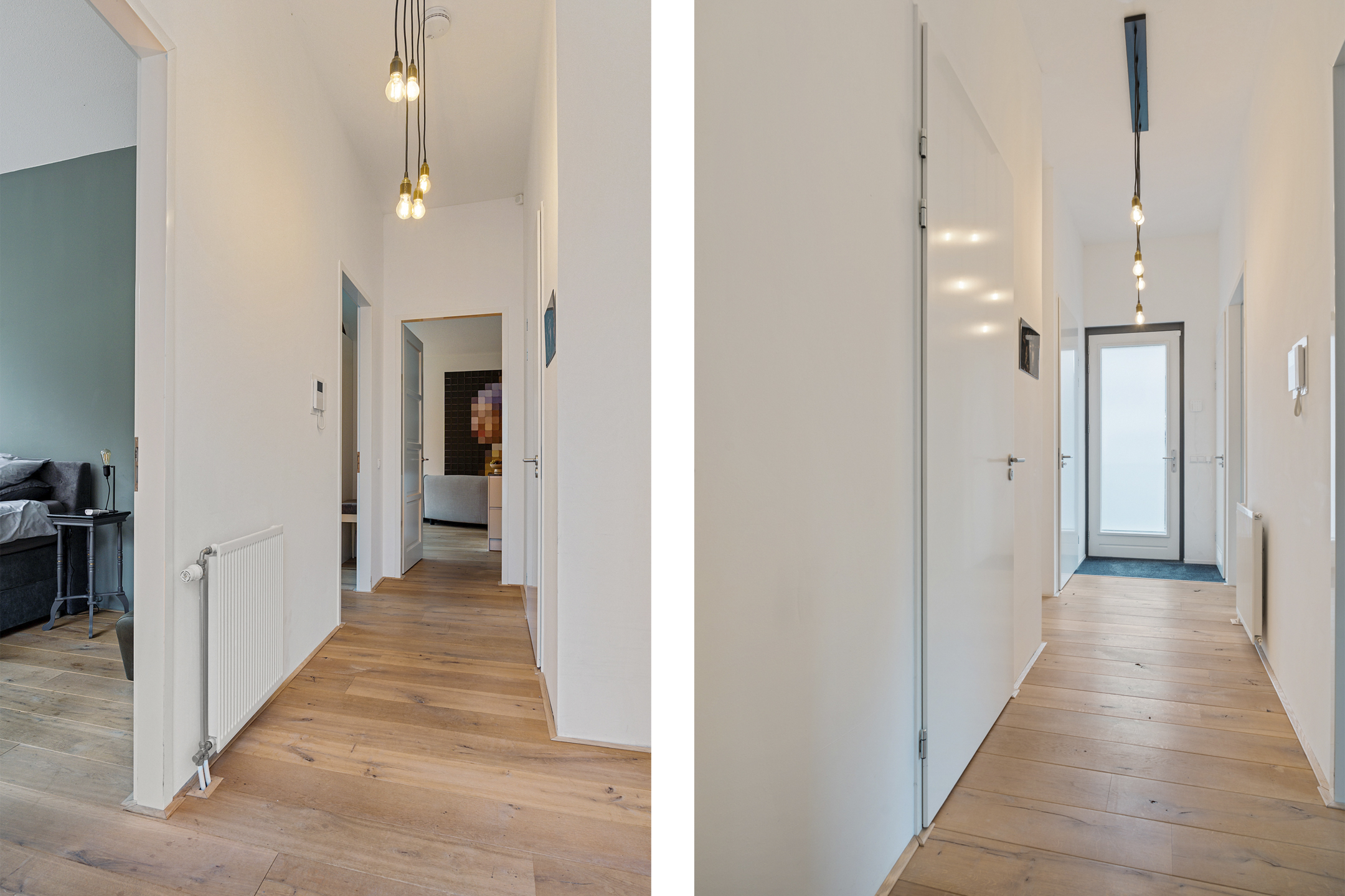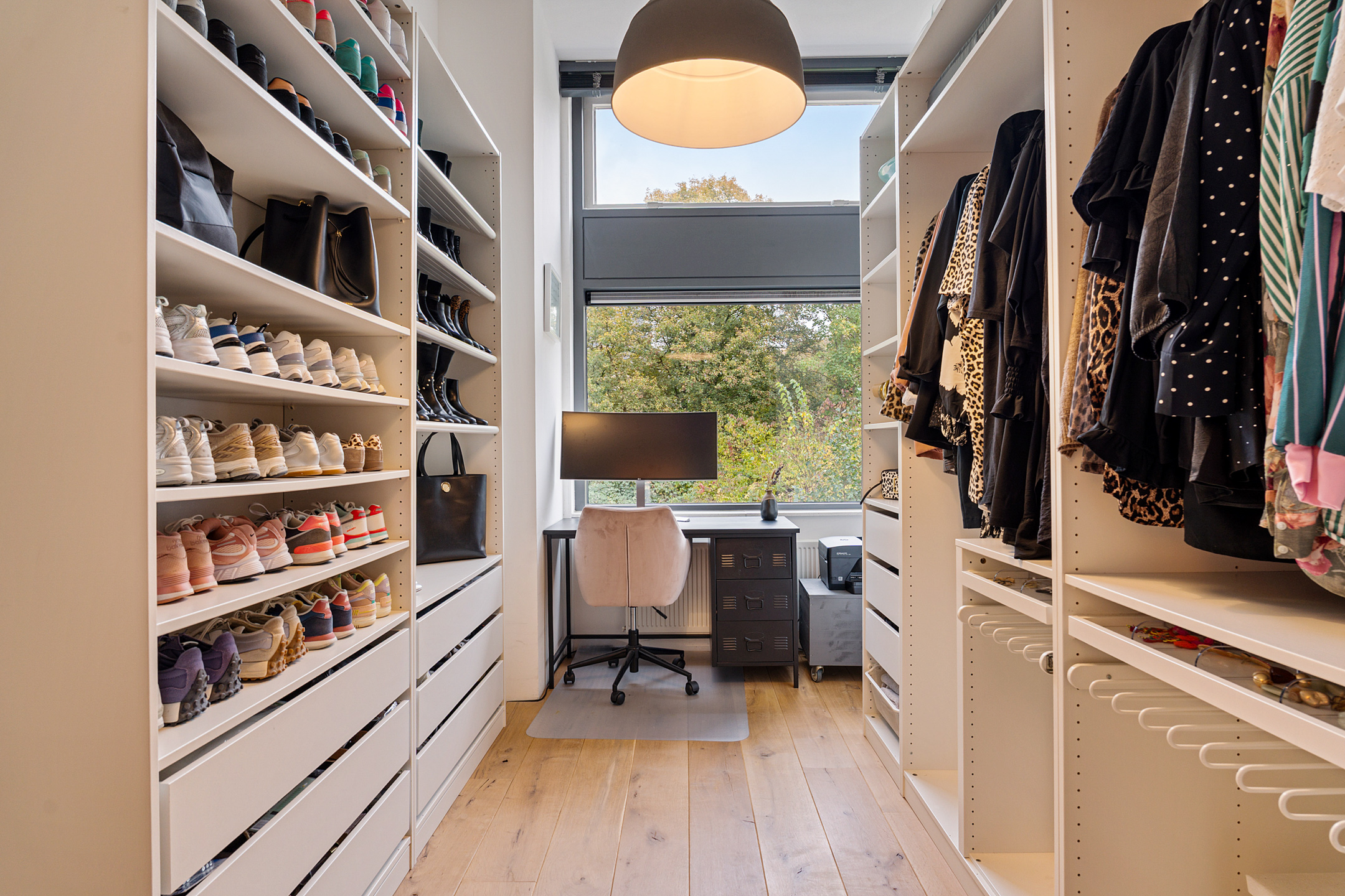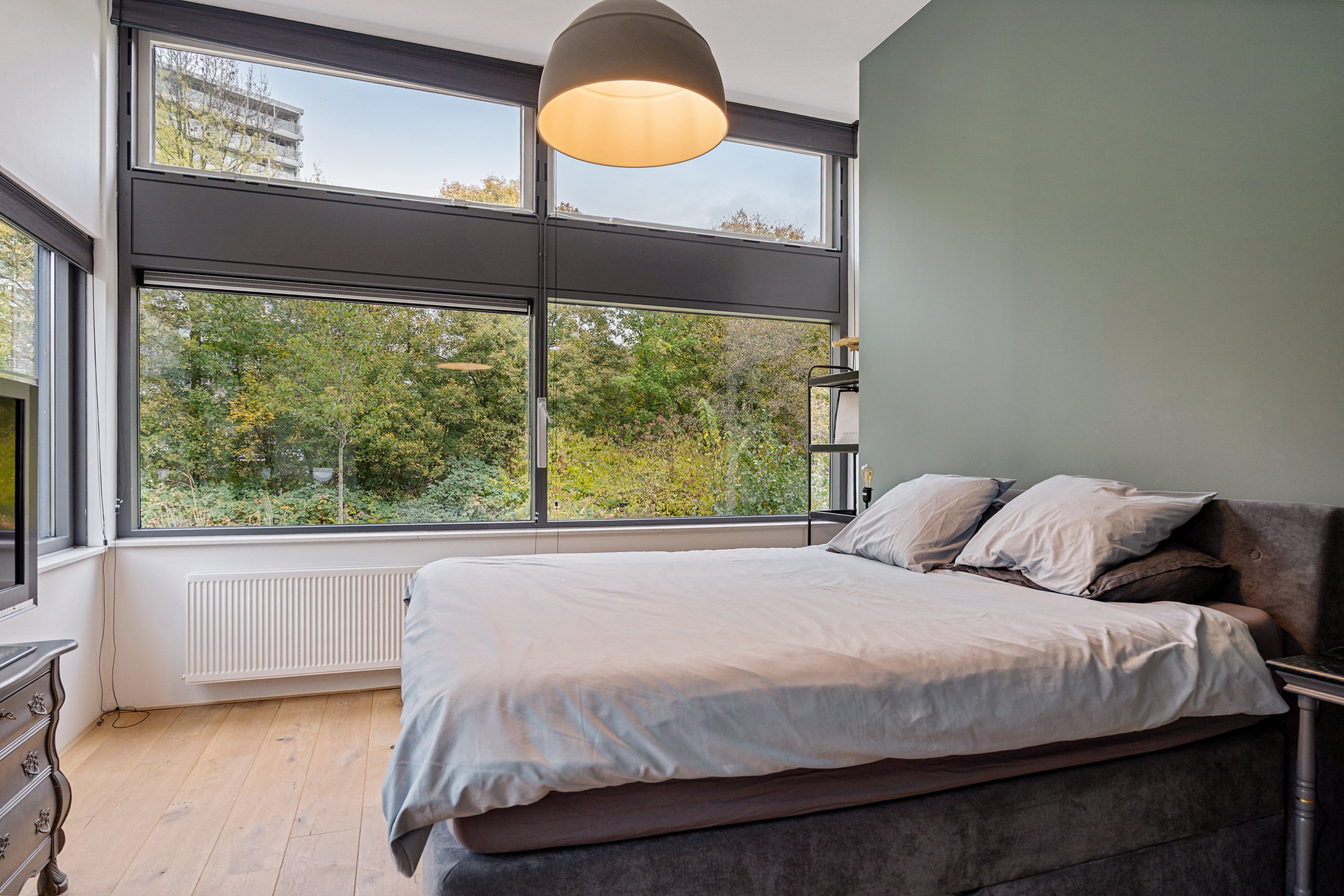 De badkamer is eigentijds uitgevoerd met grote tegels, een inloopdouche met regendouche, dubbele wastafel met meubel, spiegel en designradiator. Er zijn twee slaapkamers: een ruime hoofdslaapkamer met grote raampartij en een tweede slaapkamer, geschikt als werk-, logeer- of hobbykamer. In de slaapkamer zijn top down plisségordijnen van Veneta geplaatst (maatwerk), ideaal voor lichtregulatie en privacy.