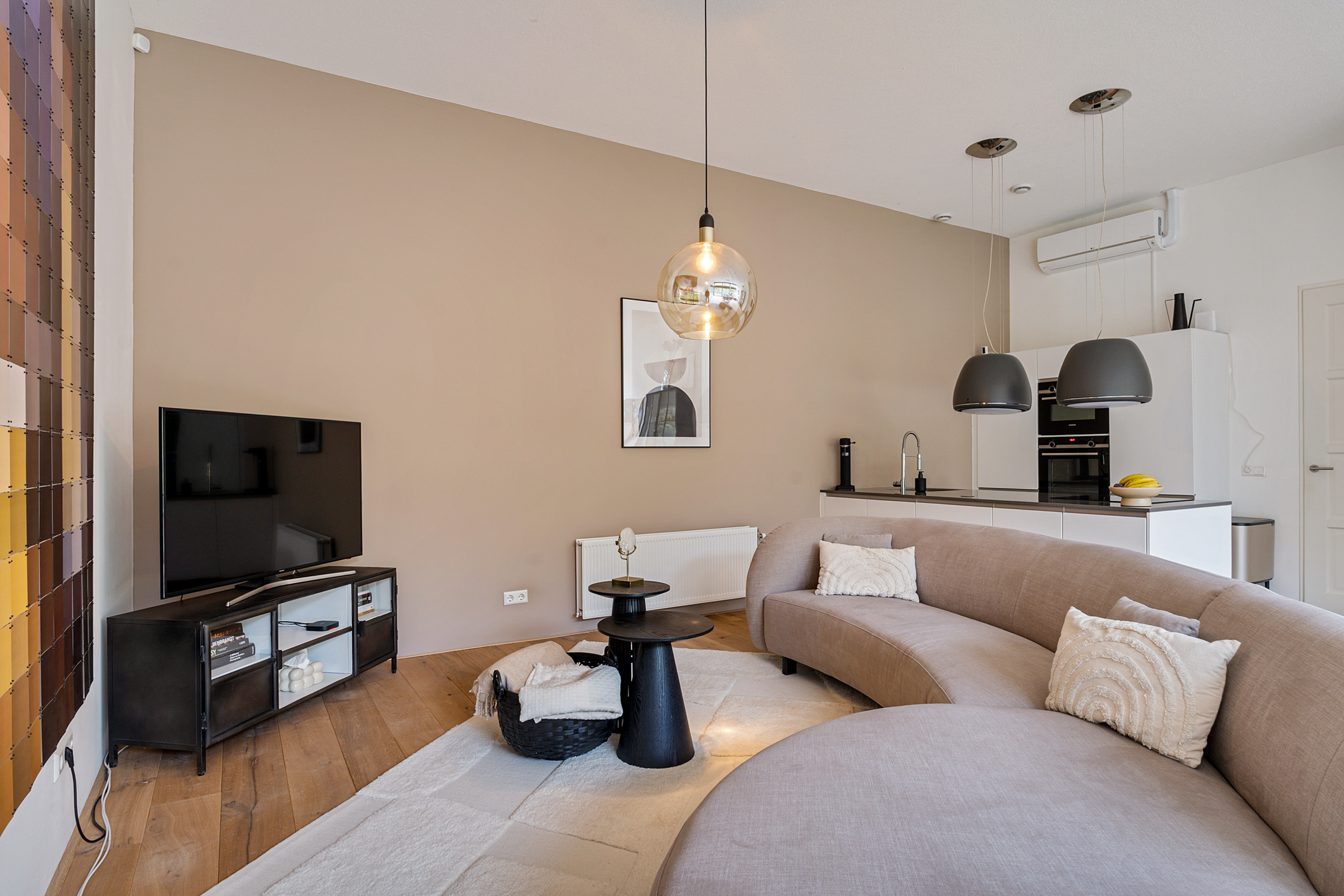 Deze moderne en stijlvol afgewerkte benedenwoning maakt direct indruk door de bijzondere plafondhoogte van ruim 3.30 meter, de grote raampartijen en de combinatie van een fijne achtertuin én een verzorgde voortuin. Met een woonoppervlak van circa 98 m², twee ruime slaapkamers, een luxe keuken en een verzorgde afwerking woon je hier ruim, rustig en toch dicht bij alle voorzieningen.