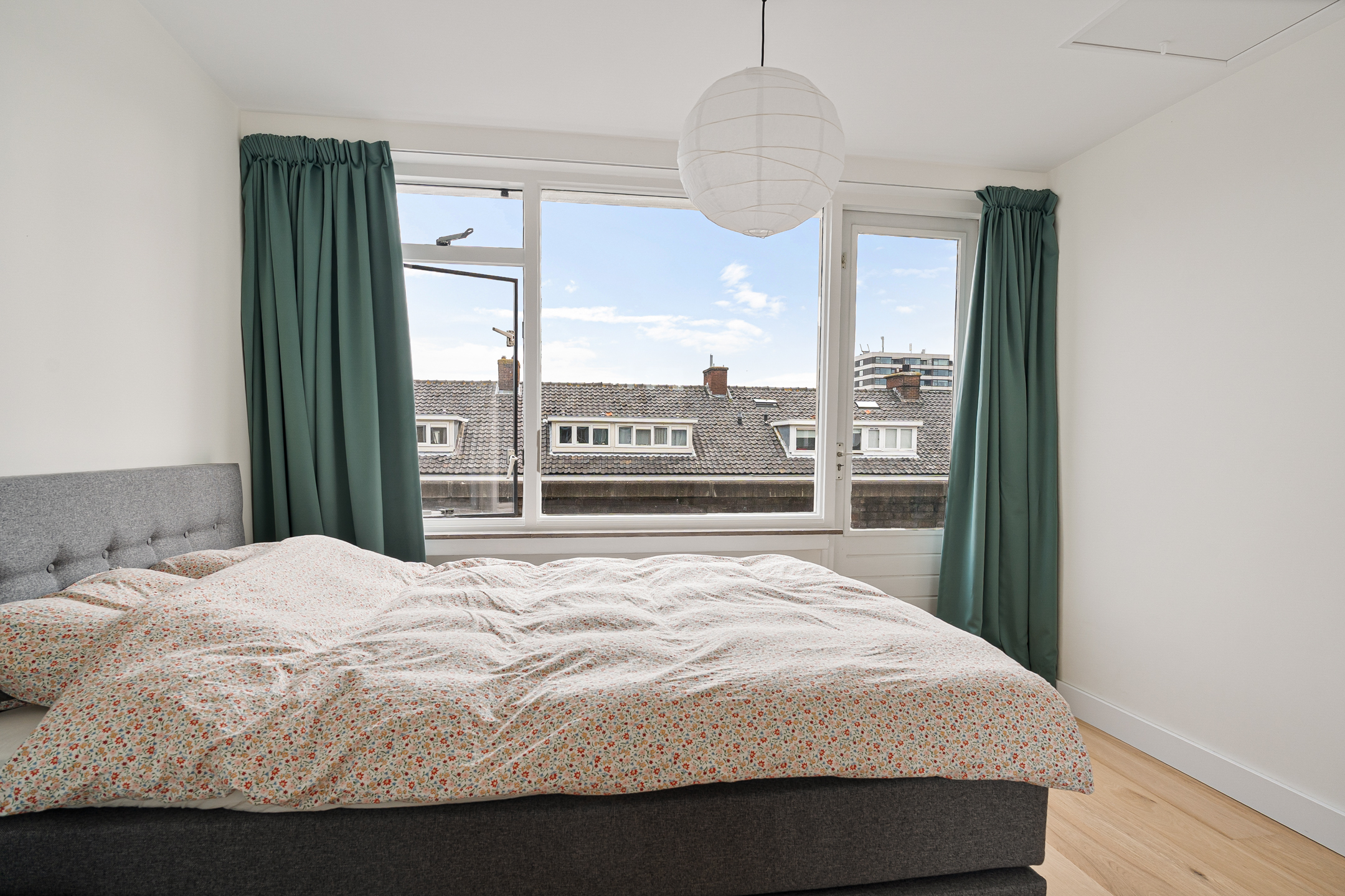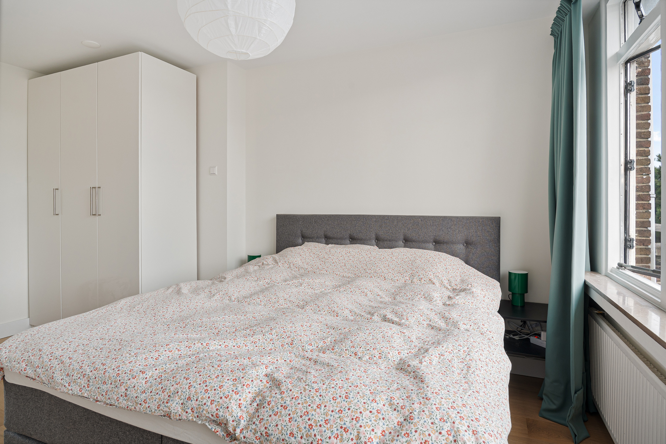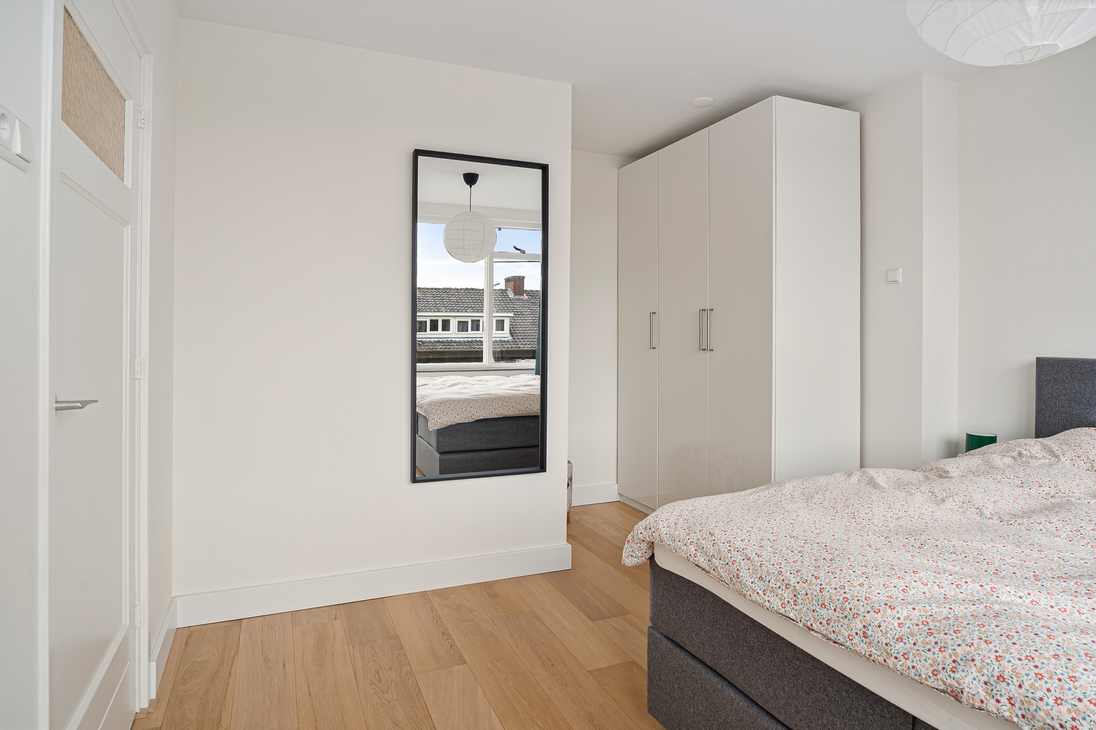 Aan de voorzijde van de woning bevindt zich de eerste slaapkamer, met toegang tot een eigen balkon.