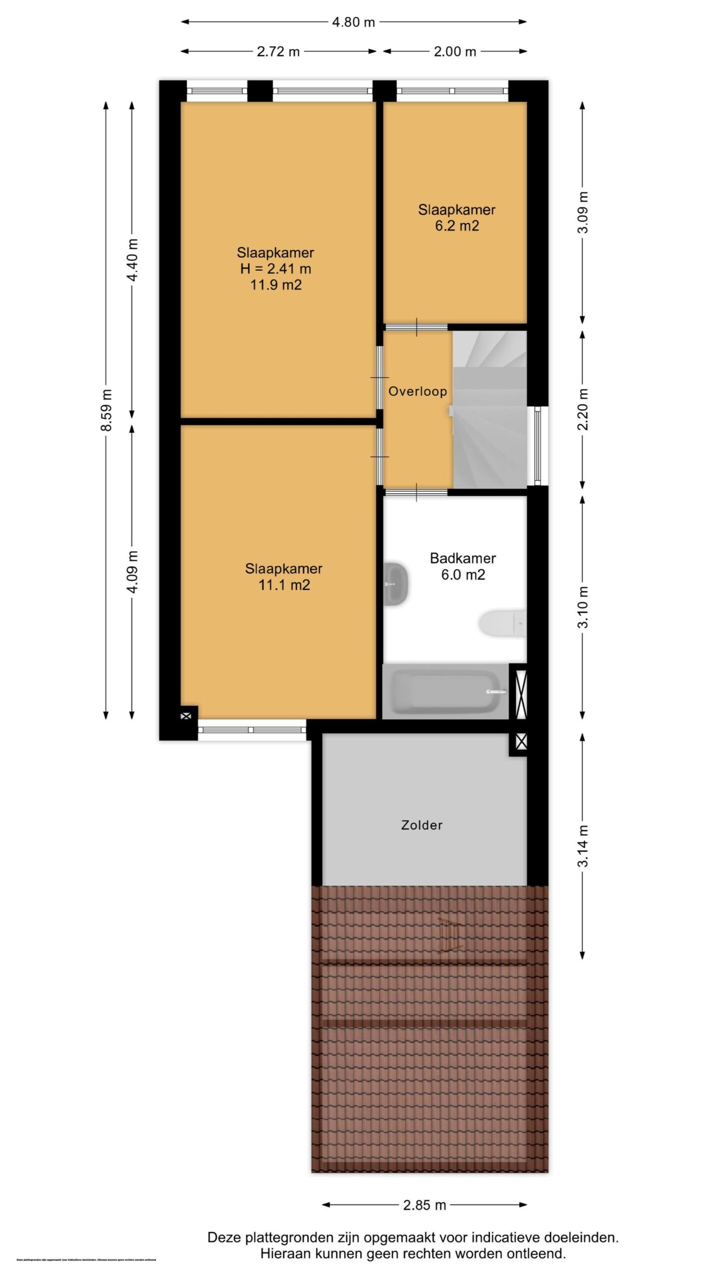 Op de eerste verdieping vind je drie slaapkamers: één aan de voorzijde, twee aan de achterzijde. De kamers zijn goed van formaat en praktisch in te delen. De badkamer ligt aan de voorzijde en kan een flinke opfrisbeurt gebruiken, een ideale kans om deze helemaal naar jouw smaak in te richten.