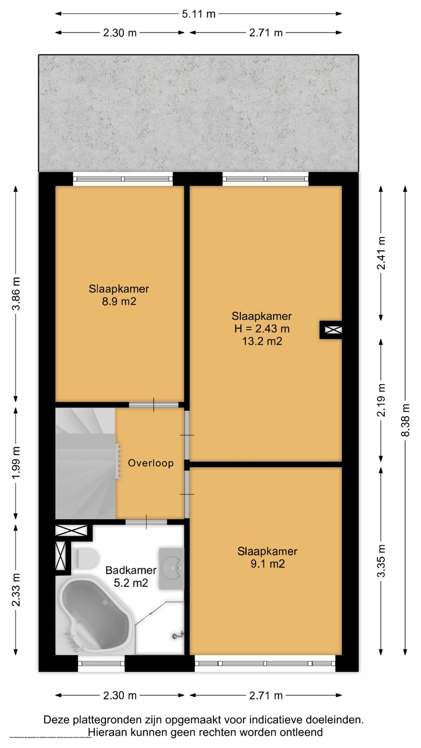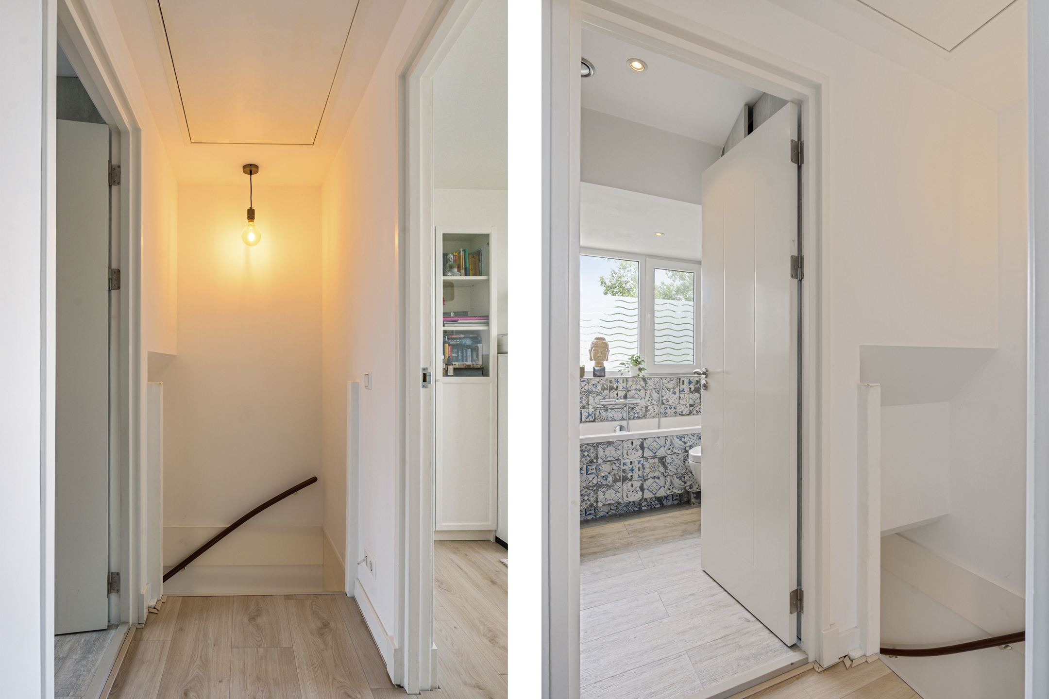 Via de overloop bereik je de vlizotrap die leidt naar de vliering voor extra bergruimte.