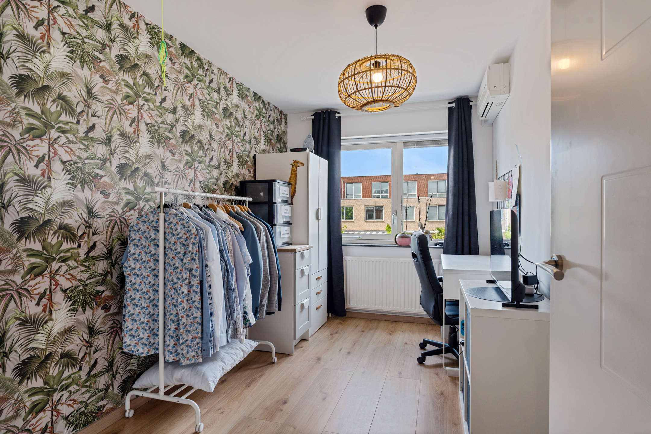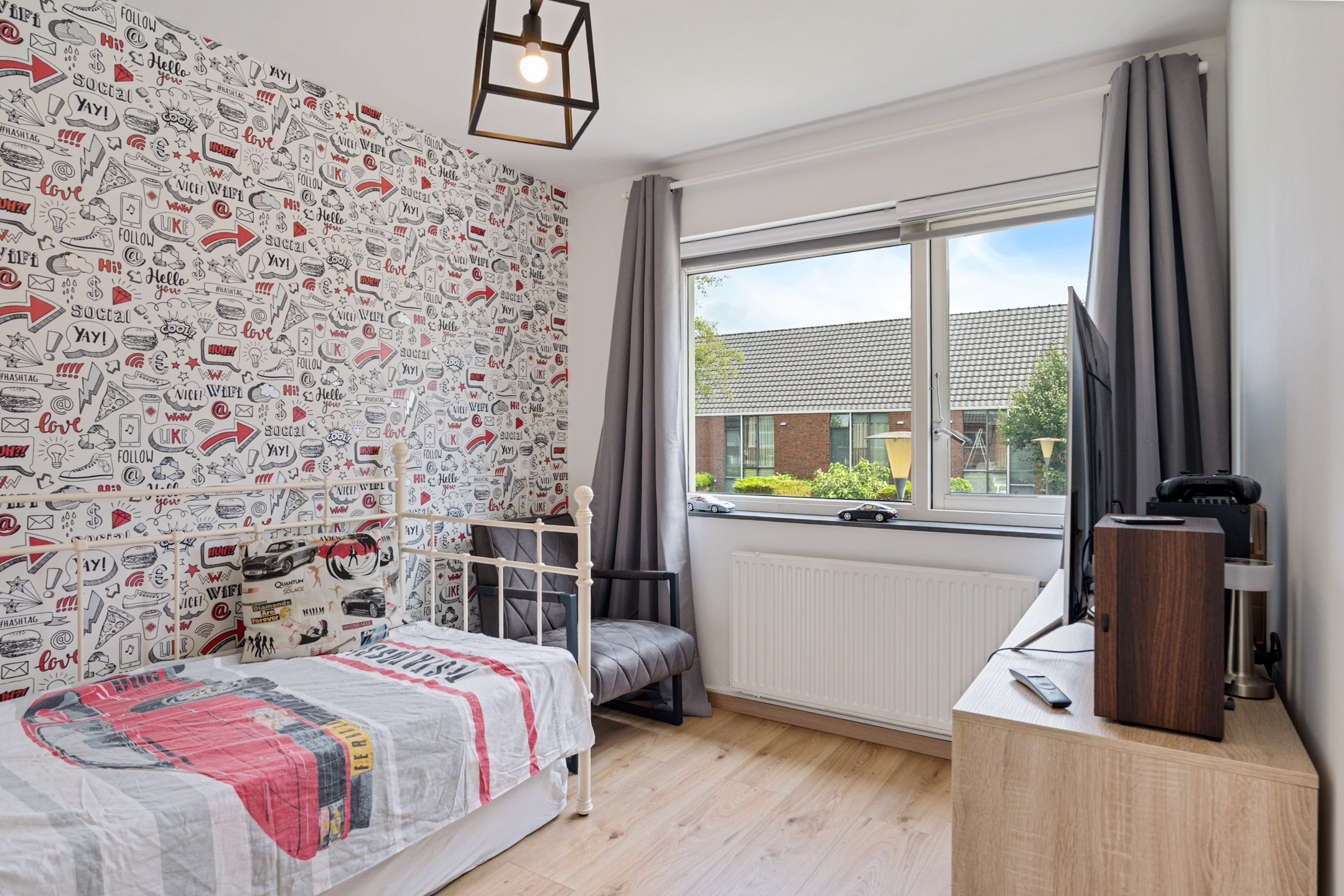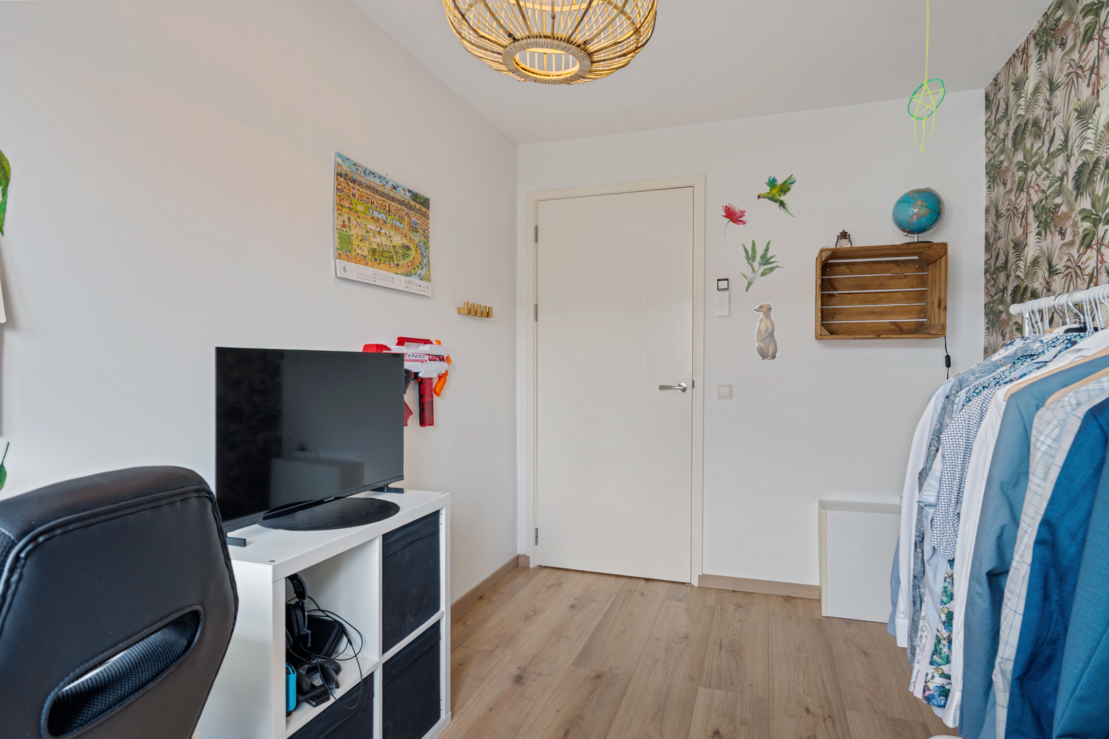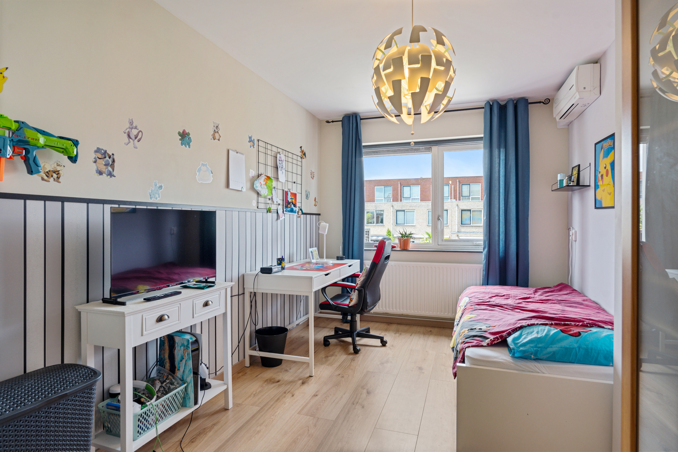 Vanaf de overloop heb je toegang tot drie goed ingedeelde slaapkamers. Aan de voorzijde ligt een kamer die momenteel dienstdoet als werk- of studeerkamer. Aan de achterzijde bevindt zich de royale hoofdslaapkamer met airconditioning en daarnaast een sfeervolle kinderkamer, eveneens voorzien van airco.