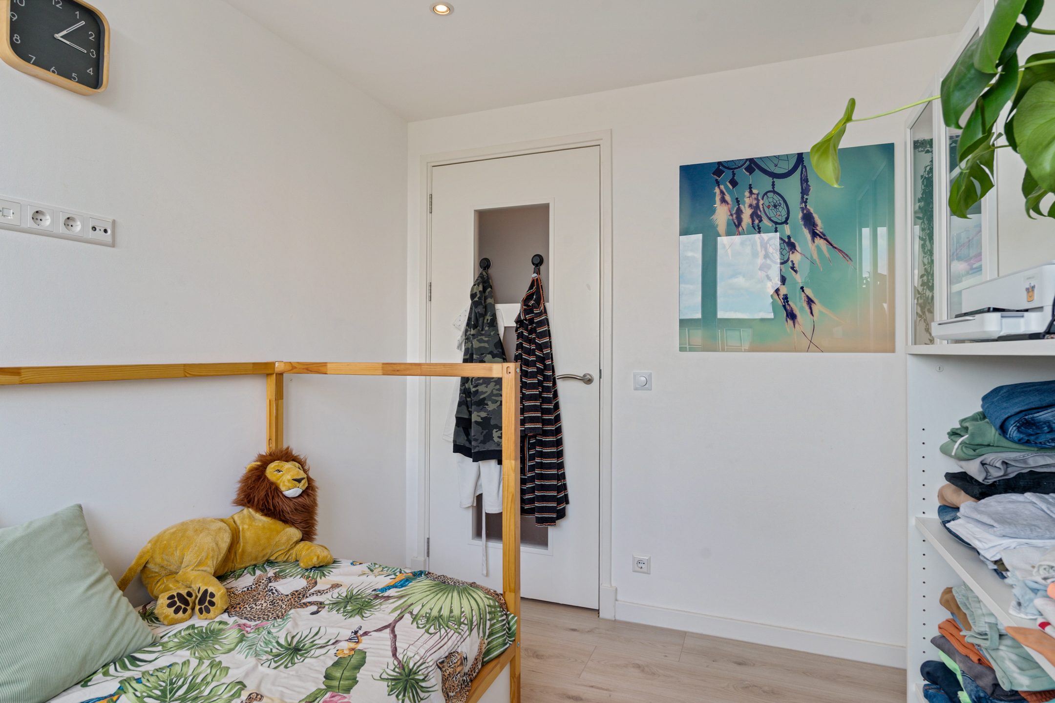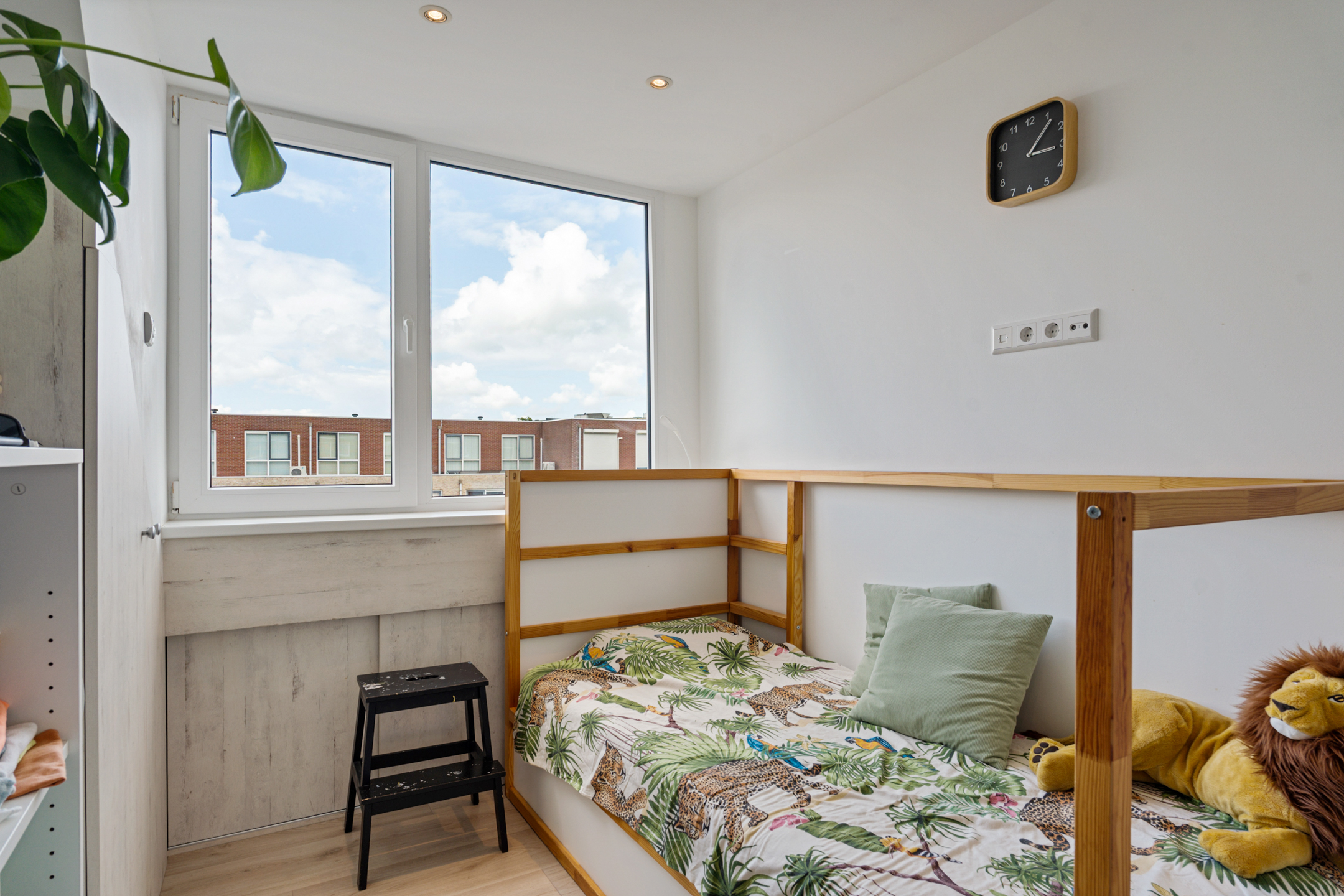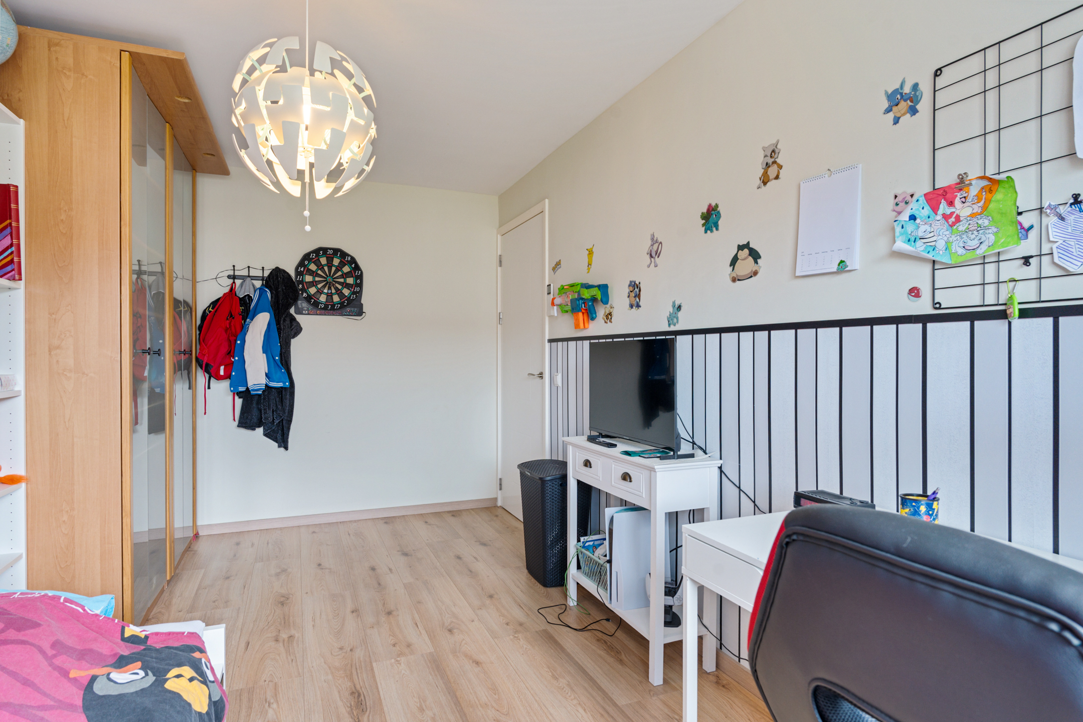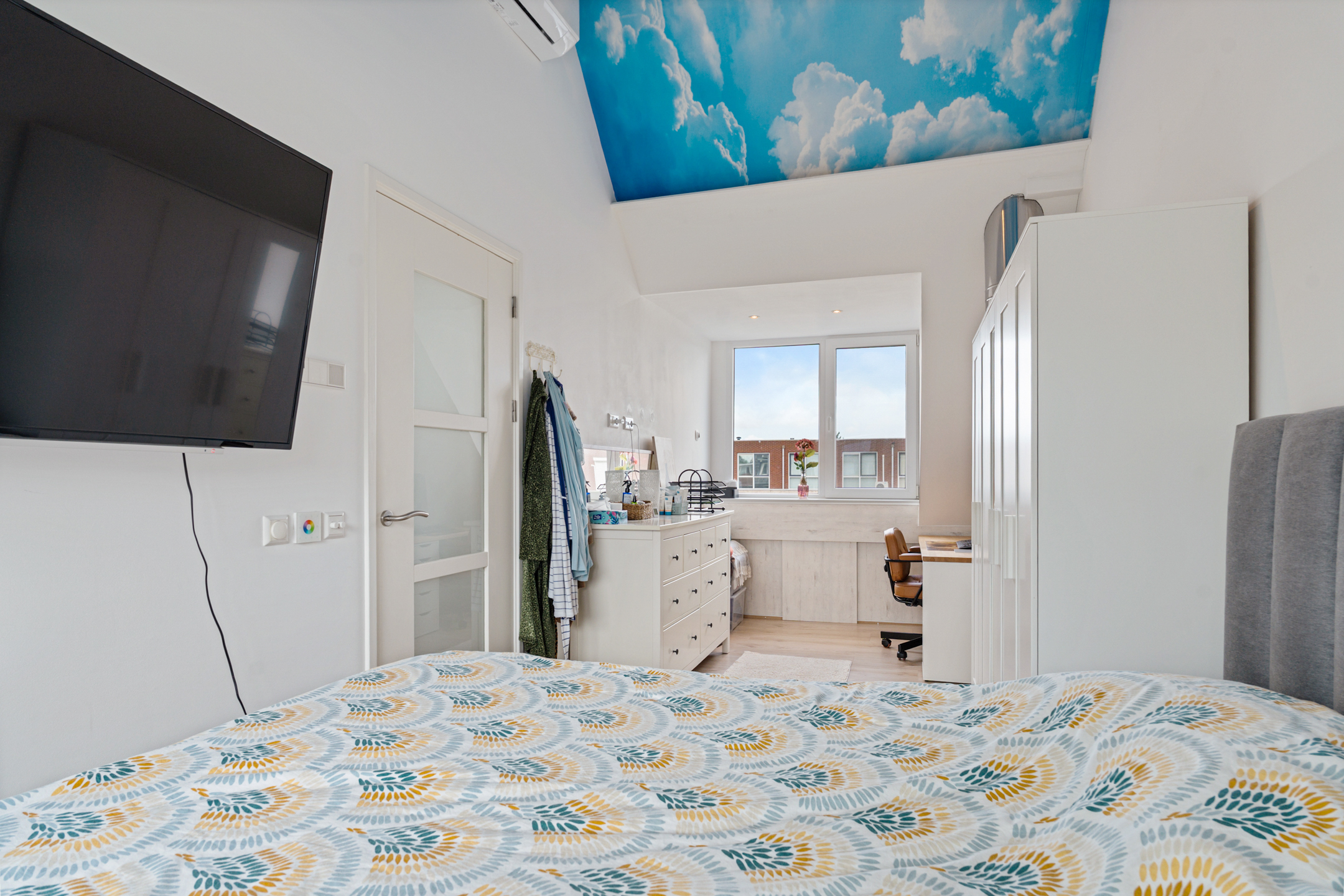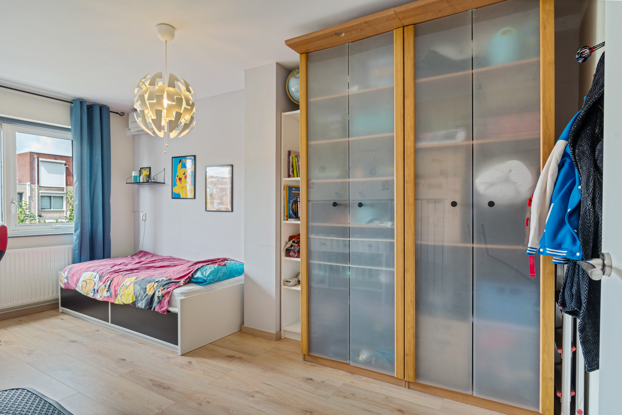 Vanaf de overloop heb je toegang tot drie goed ingedeelde slaapkamers. Aan de voorzijde ligt een kamer die momenteel dienstdoet als werk- of studeerkamer. Aan de achterzijde bevindt zich de royale hoofdslaapkamer met airconditioning en daarnaast een sfeervolle kinderkamer, eveneens voorzien van airco.