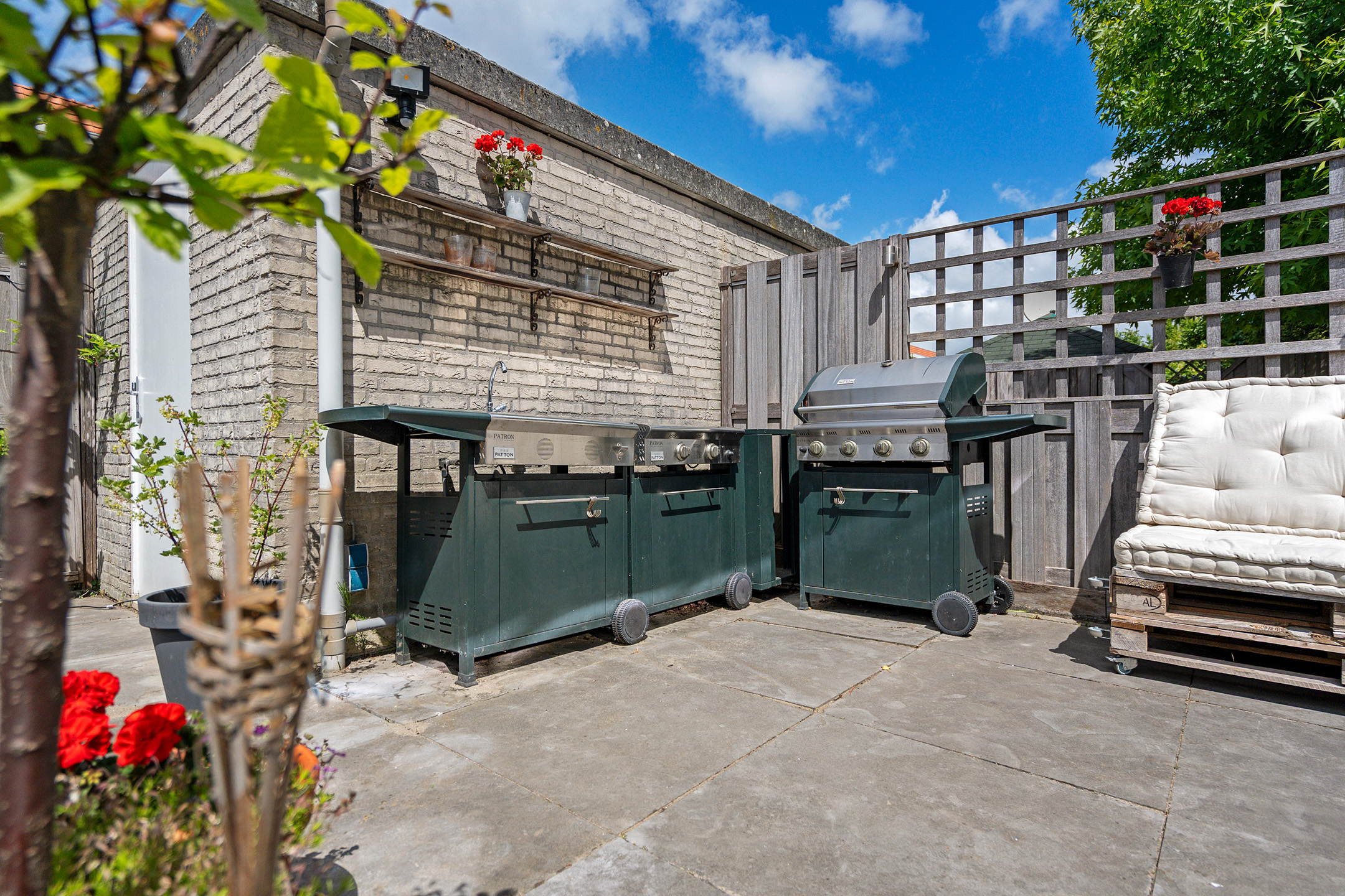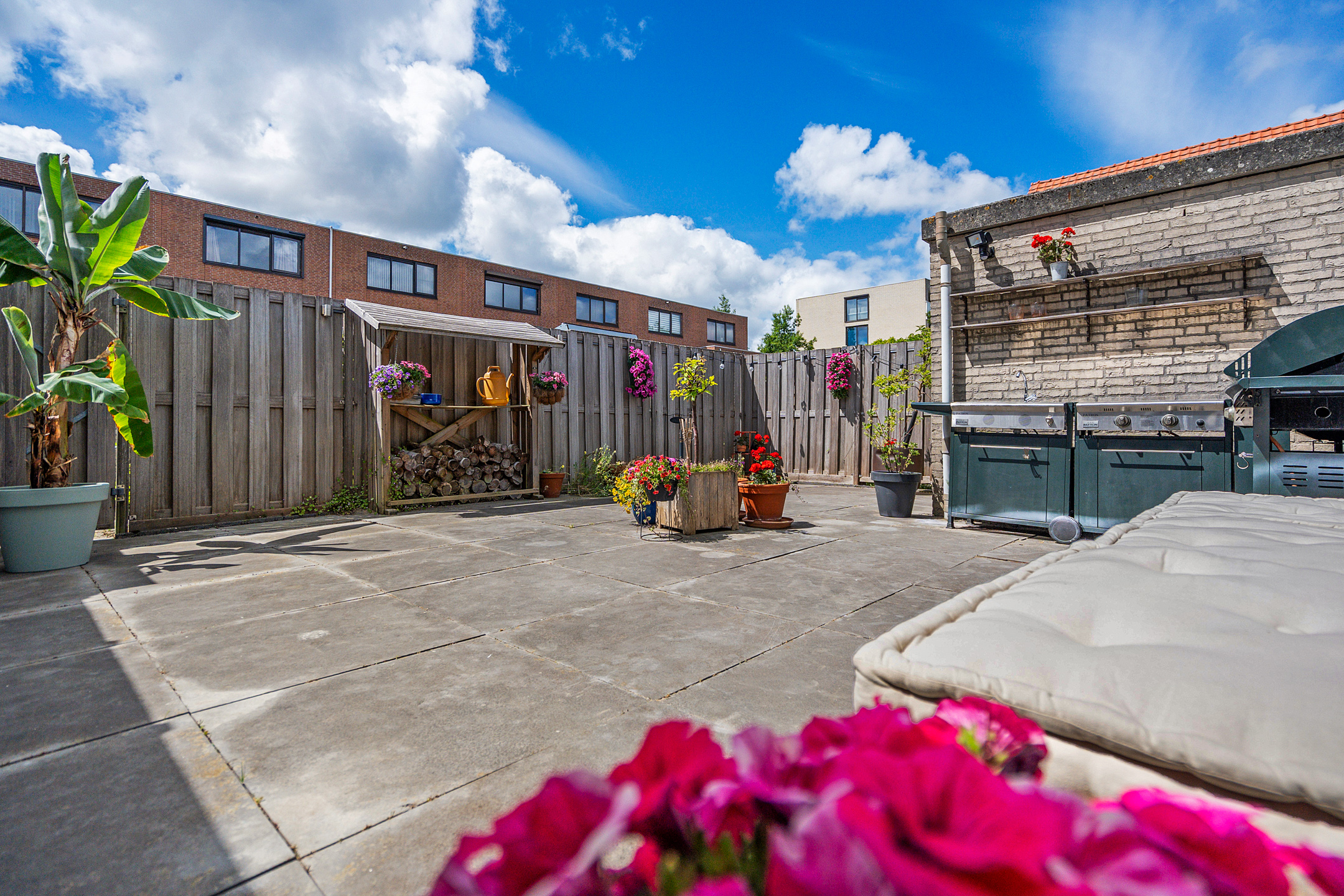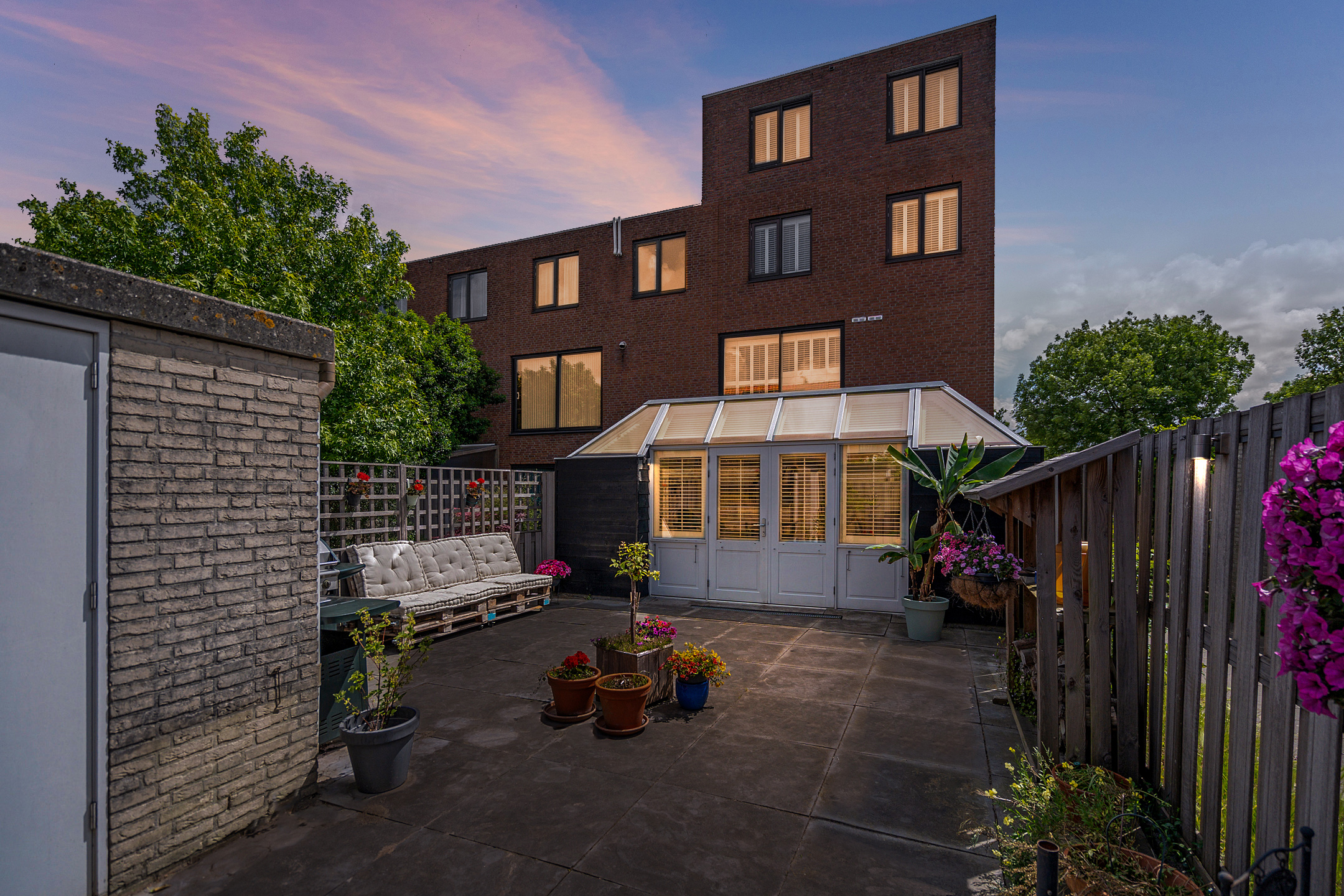 + Royale, volledig betegelde achtertuin op het westen met berging en achterom