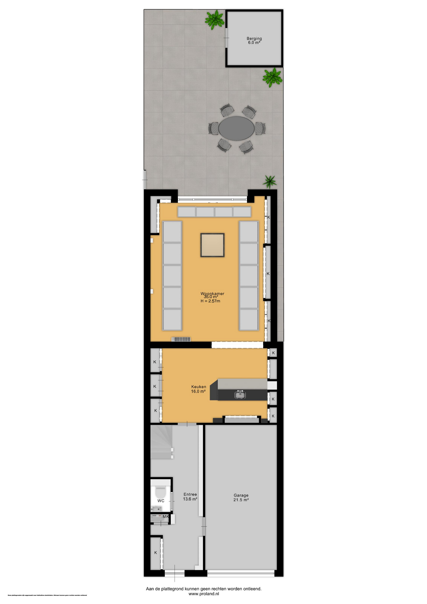 De grote raampartijen en open opzet zorgen voor een overvloed aan lichtinval en een vrije doorkijk naar de onderhoudsvriendelijke, westelijk gelegen achtertuin. De tuin is volledig betegeld, voorzien van een stenen berging, achterom en biedt volop ruimte om buiten te genieten.