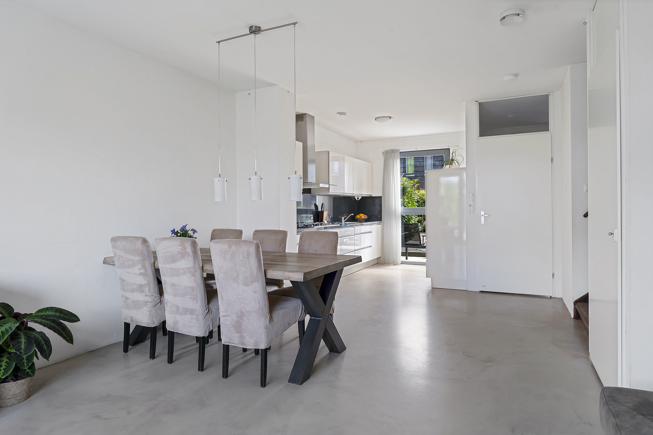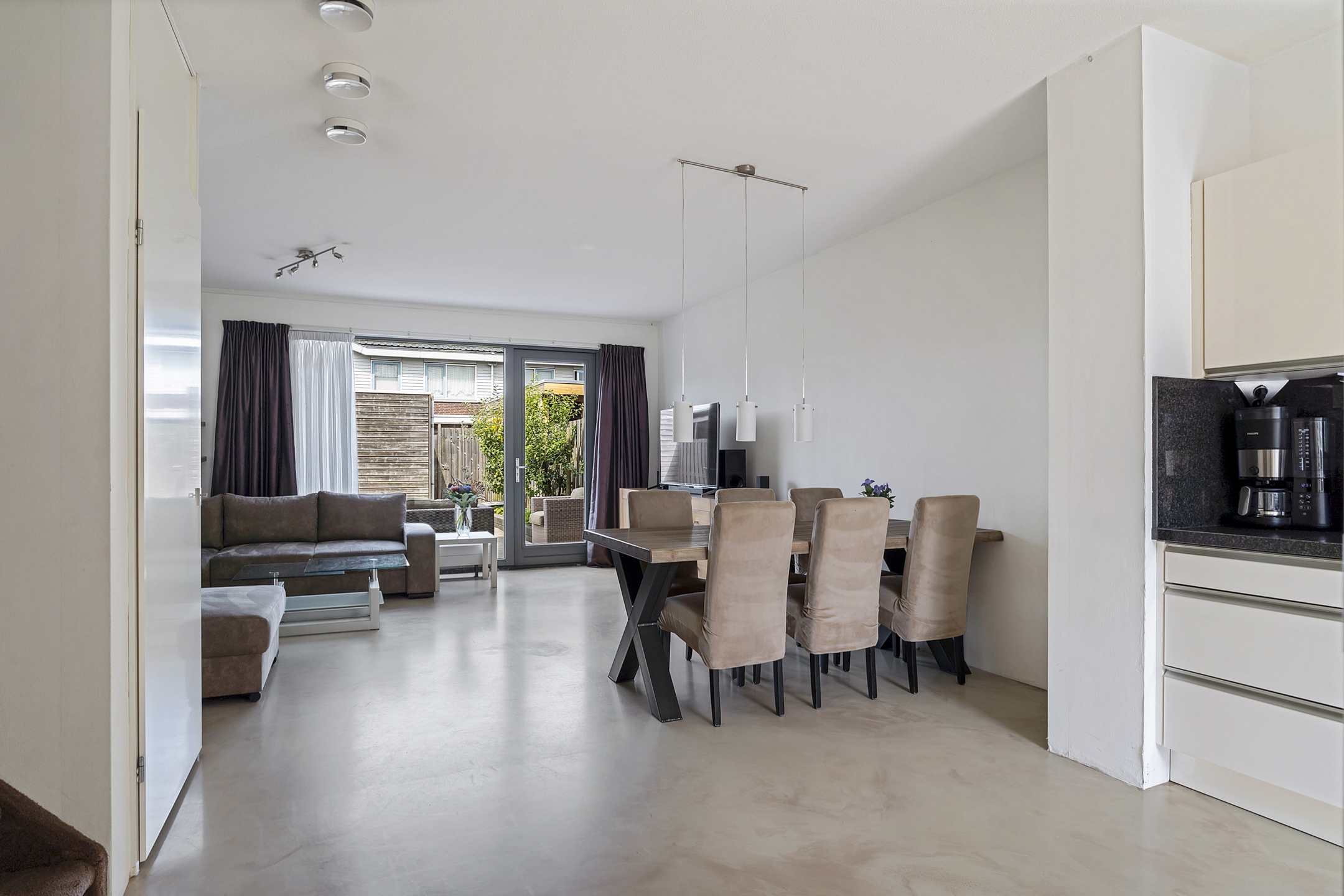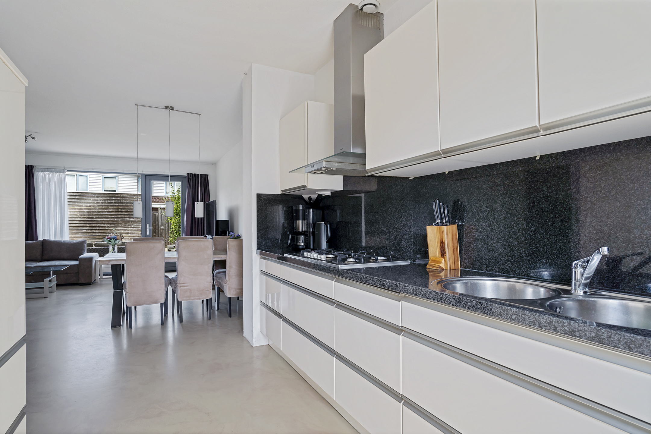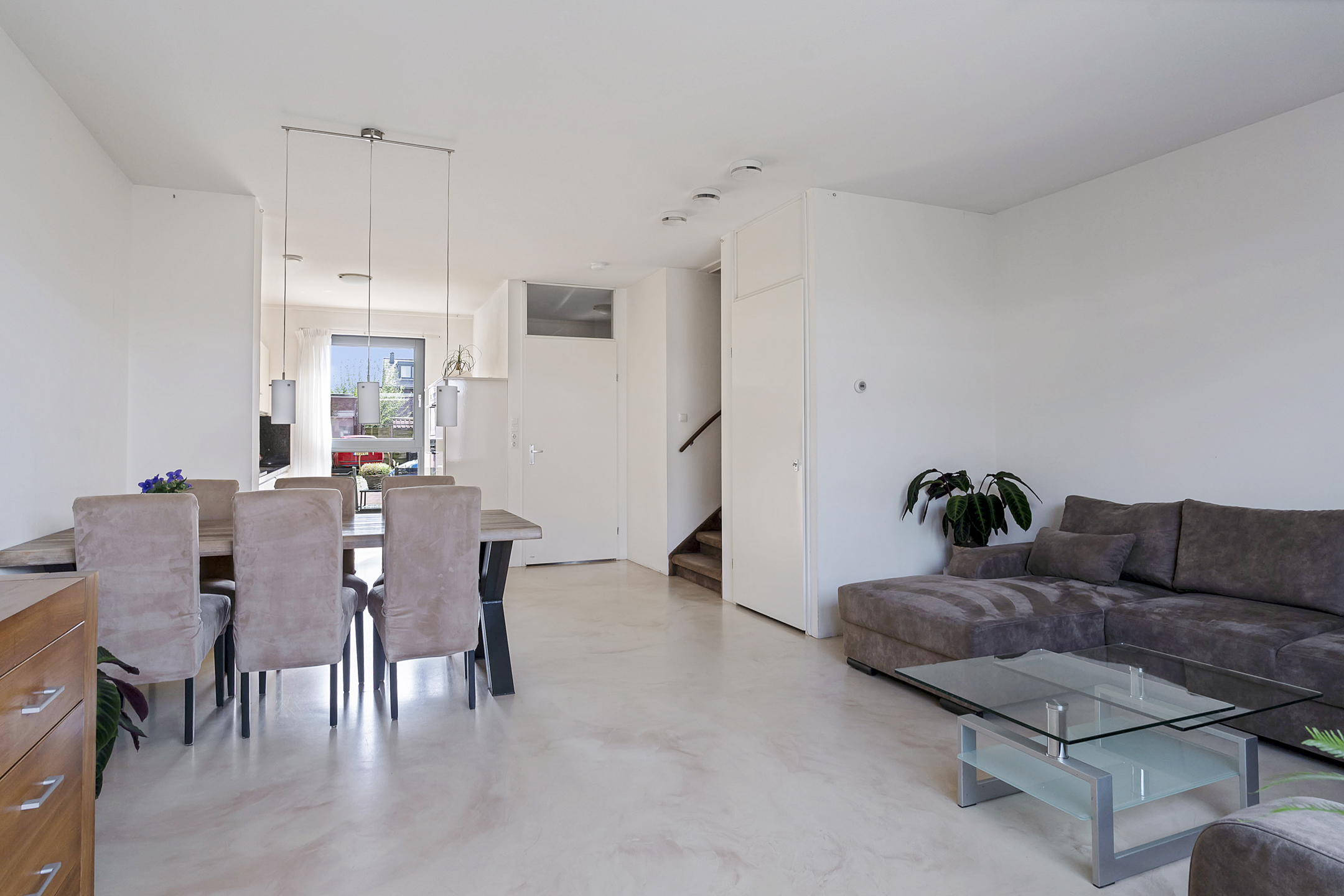 Bij het betreden van de woning kom je in de entreehal. Hier vind je de meterkast en een separaat toilet. Vanuit de entreehal heb je toegang tot de ruime en lichte woonkamer. De gehele begane grond is voorzien van een volledige vloerverwarming. De royale woonkamer zorgt voor een comfortabele leefruimte. Aan het begin van de woonkamer bevindt zich ook de trapopgang naar de eerste verdieping. De woning verkeert in uitstekende staat en is met veel zorg onderhouden, waardoor je zonder zorgen kunt genieten van het comfort dat deze woning biedt. De grote ramen aan de voor- en achterzijde zorgen voor veel lichtinval, waardoor de ruimte extra uitnodigend aanvoelt. De keuken is praktisch ingericht en biedt veel opbergruimte. De keuken is uitgerust met een composiet blad en alle benodigde inbouwapparatuur zoals een 6 pits gaskookplaat, afzuiger, vaatwasser, koelkast, combi-oven en combi-magnetron. Ook is er een aparte vriezer aanwezig in de keuken