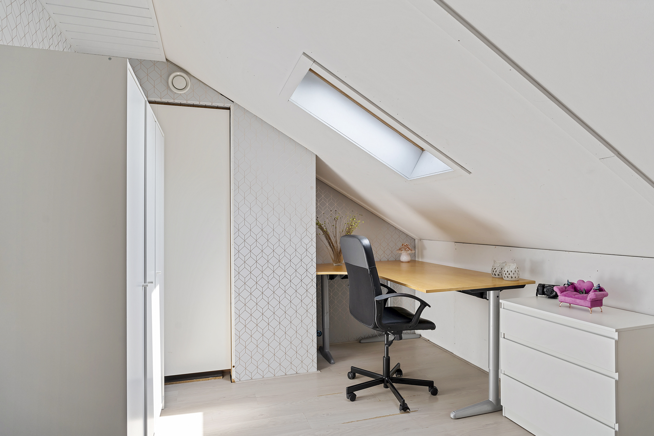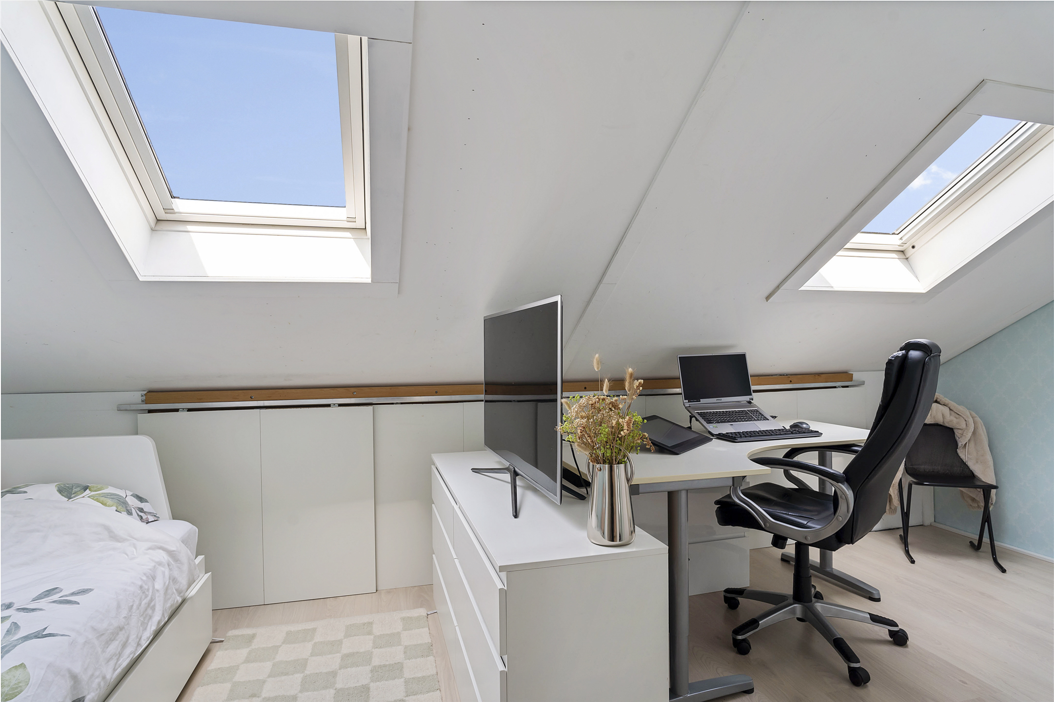 Op de tweede verdieping bevinden zich 2 ruime slaapkamers, met veel lichtinval. Een van de slaapkamers kan worden gebruikt als werkkamer. In 2021 zijn er 12 zonnepanelen op het dak gemonteerd.