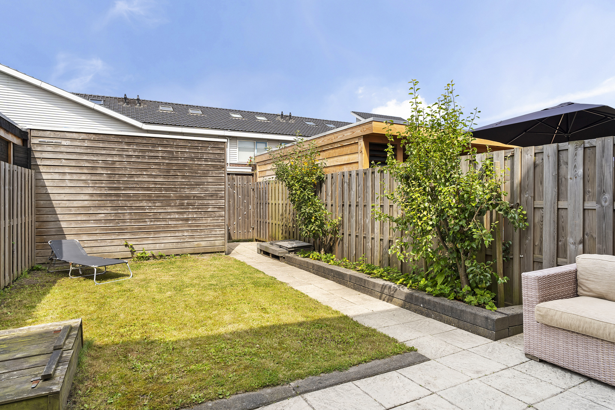 De woning heeft een voortuin van 3,73 meter diep en 5,20 meter breed. Vanuit de woonkamer stap je via de openslaande deur zo de groene tuin op het zuidoosten in. De rustig gelegen achtertuin is 11,80 meter diep en 5,20 meter breed, met een totale oppervlakte van 61m². De tuin beschikt over een ruime schuur aan de achterzijde, ideaal voor het opbergen van fietsen en tuinspullen.