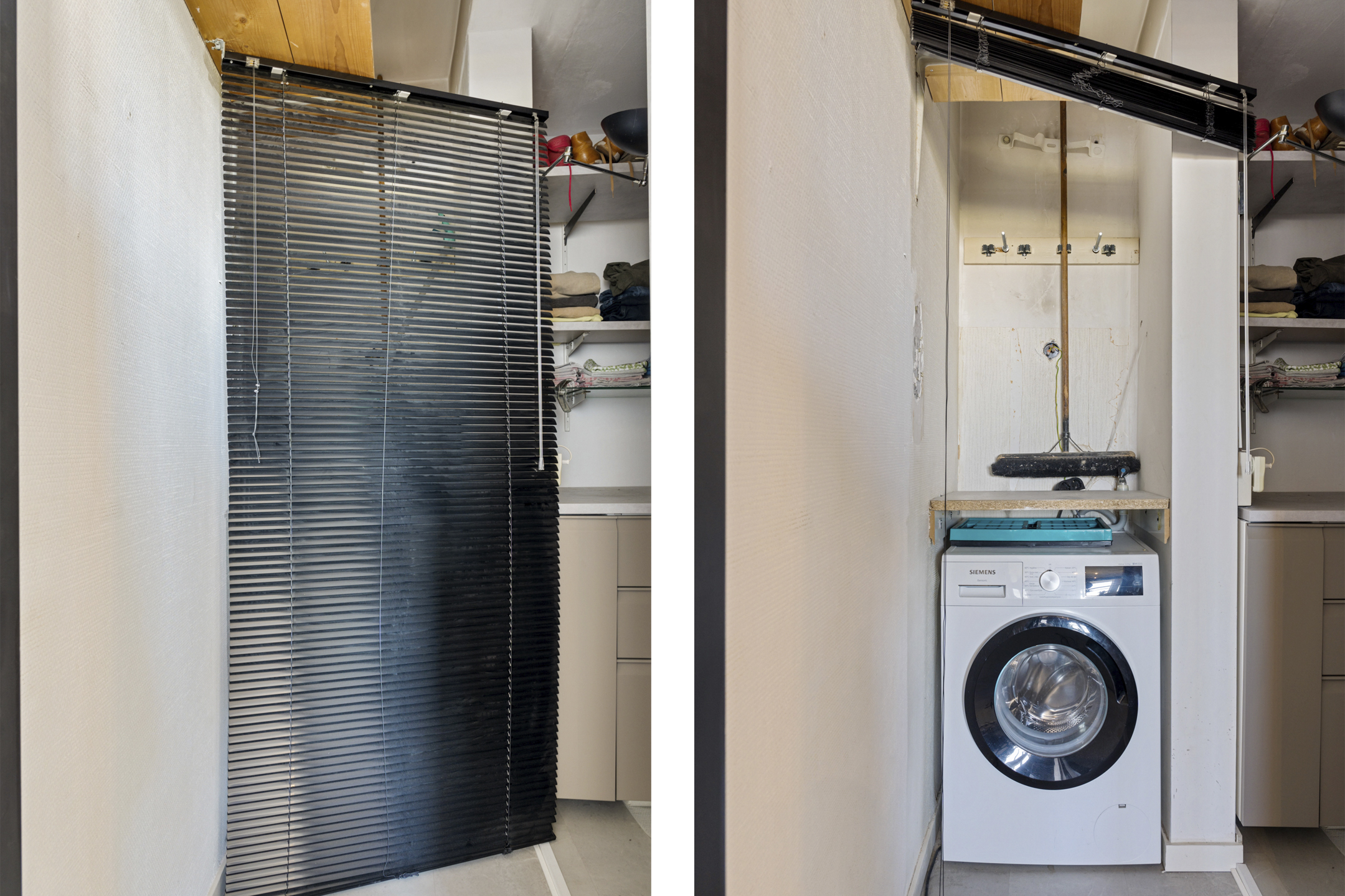 Extra handig is de op maat gemaakte opbergconstructie in de woning: ideaal voor spullen die je liever uit het zicht bewaart.