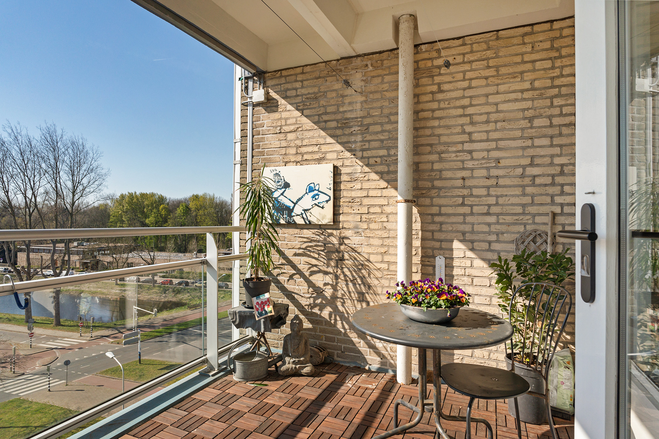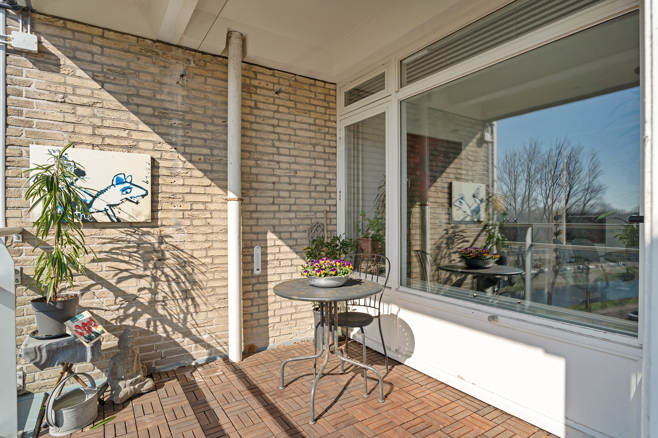 Het royale balkon op het zuidwesten maakt het plaatje compleet: een fijne buitenruimte waar je tot in de avond van de zon profiteert.