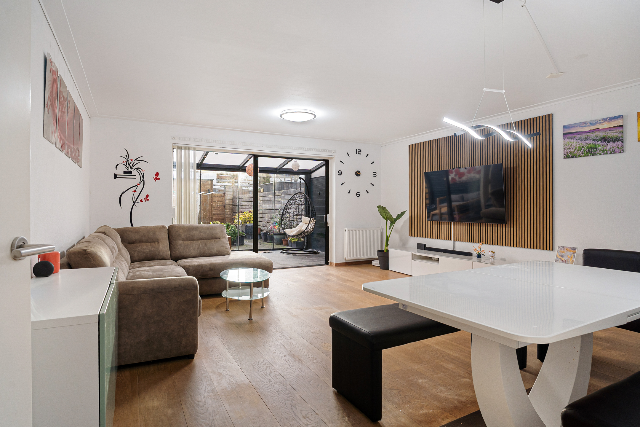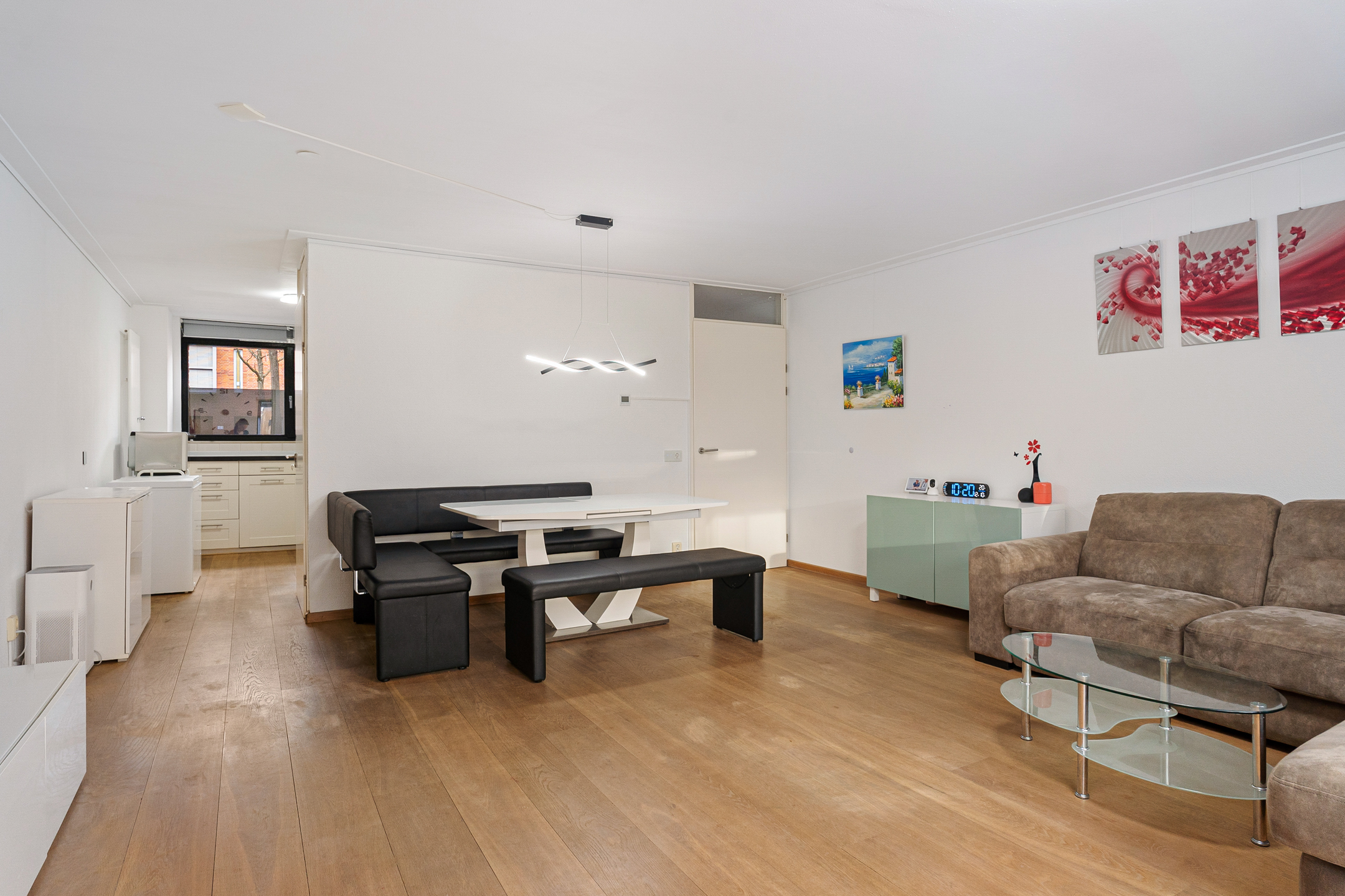 De woon- en eetkamer is licht, ruim opgezet en vormt het centrale leefgedeelte van de woning.