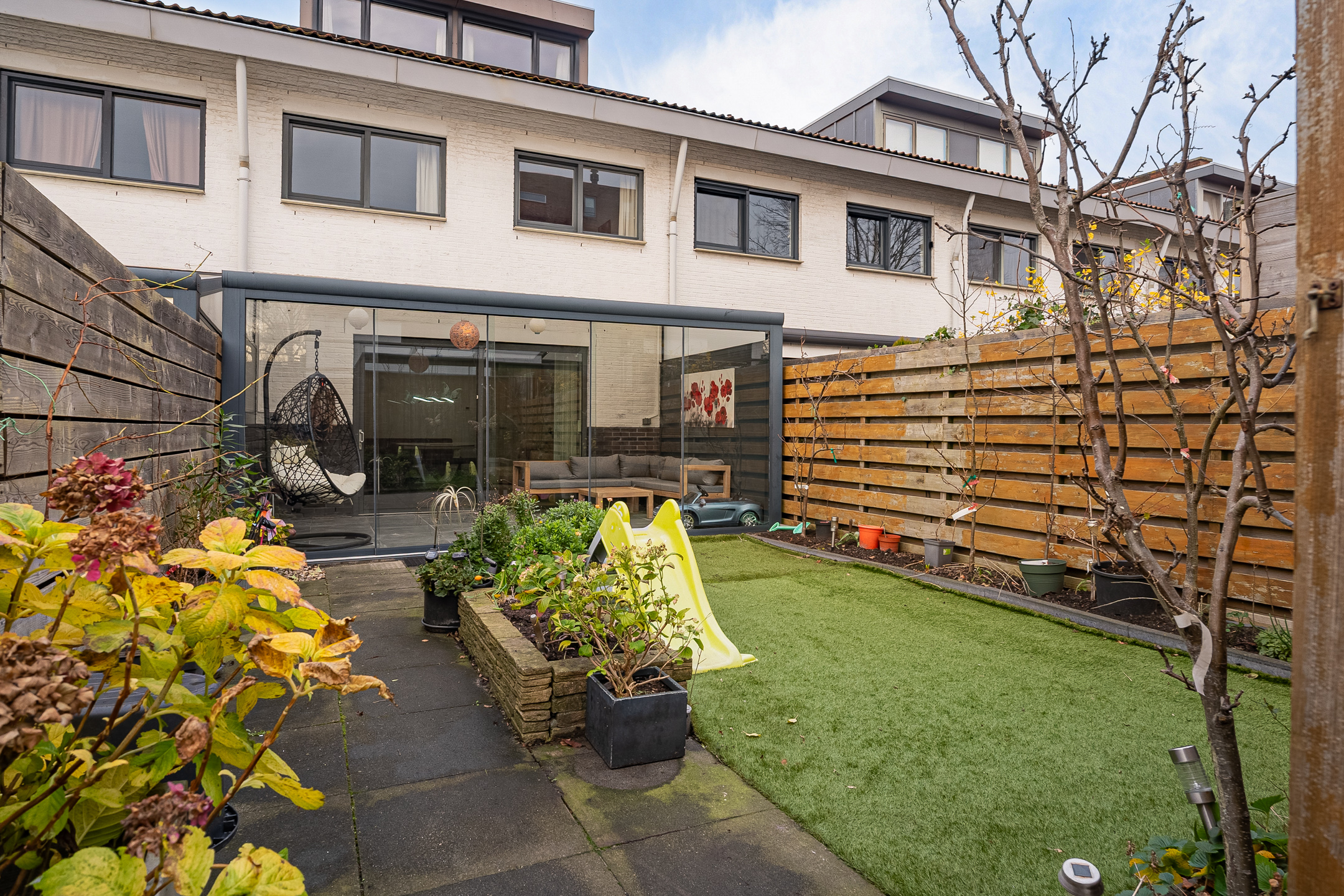 Daarnaast beschikt de tuin over een vrijstaande berging voor fietsen en opslag en een praktische achterom. Het vernieuwde tuinhekwerk uit 2021 draagt bij aan privacy en een nette uitstraling.