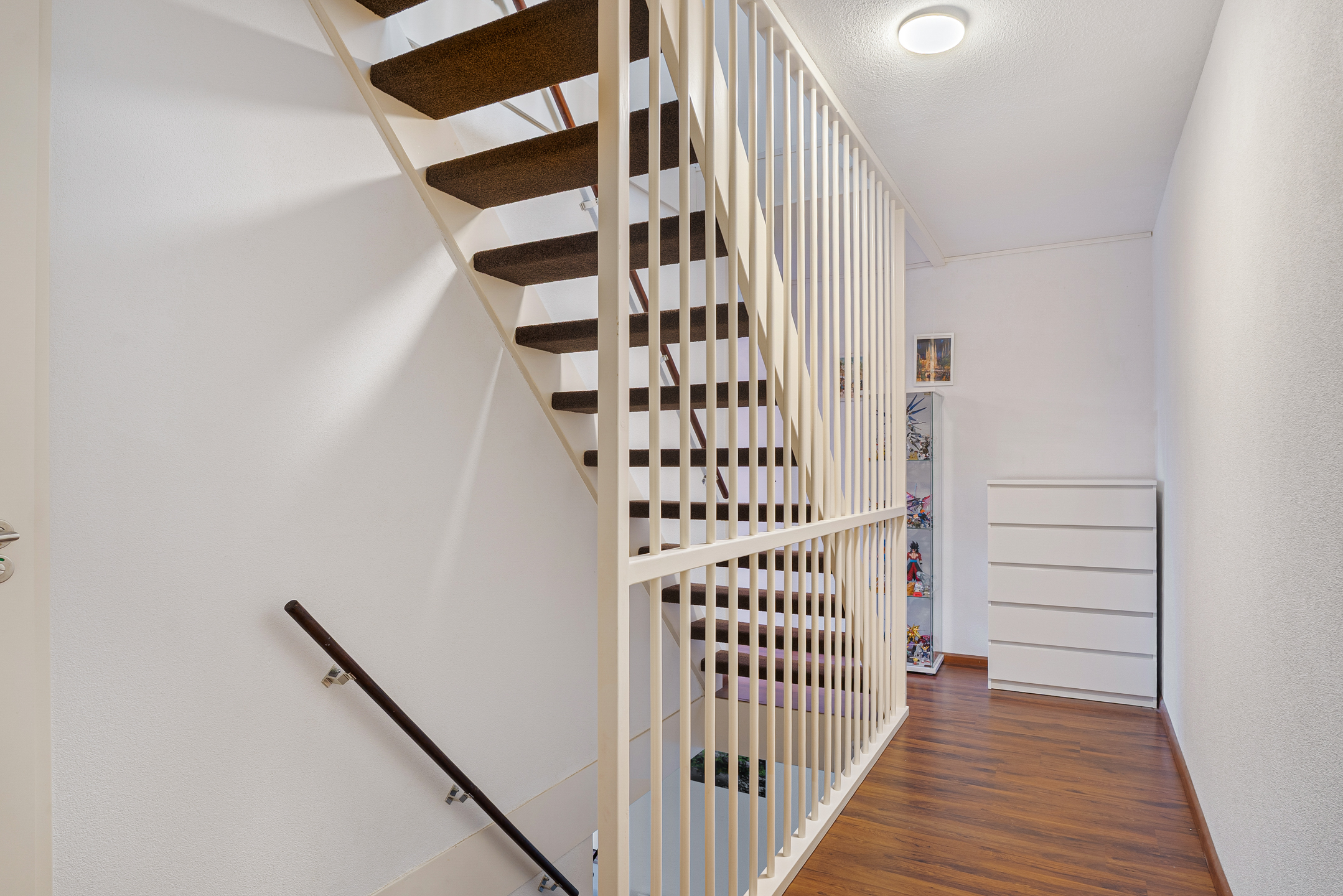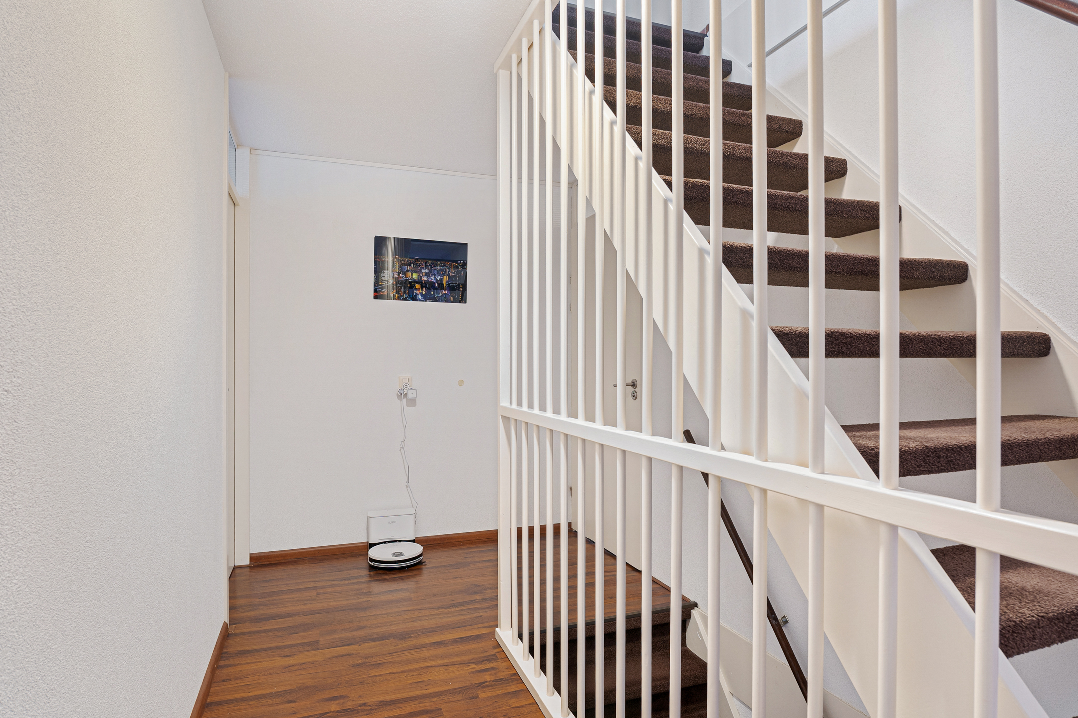 Daarnaast is er een aparte wasruimte met aansluitingen voor wasmachine en droger en de opstelling van de mechanische ventilatie. Ook deze verdieping is afgewerkt met een nette laminaatvloer.