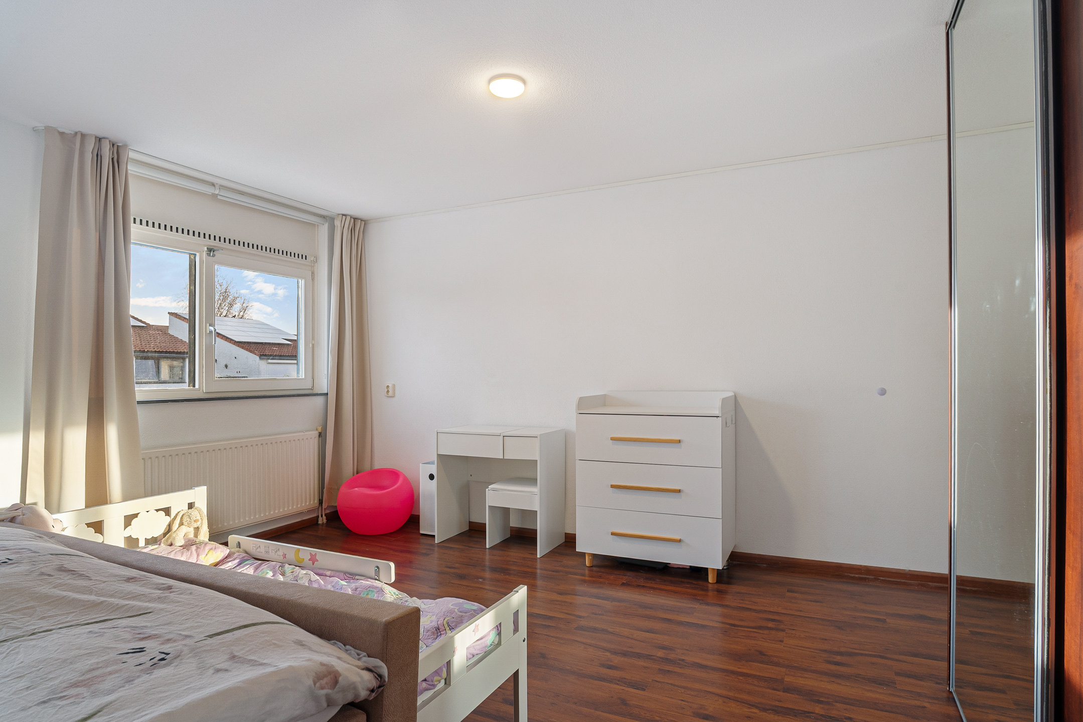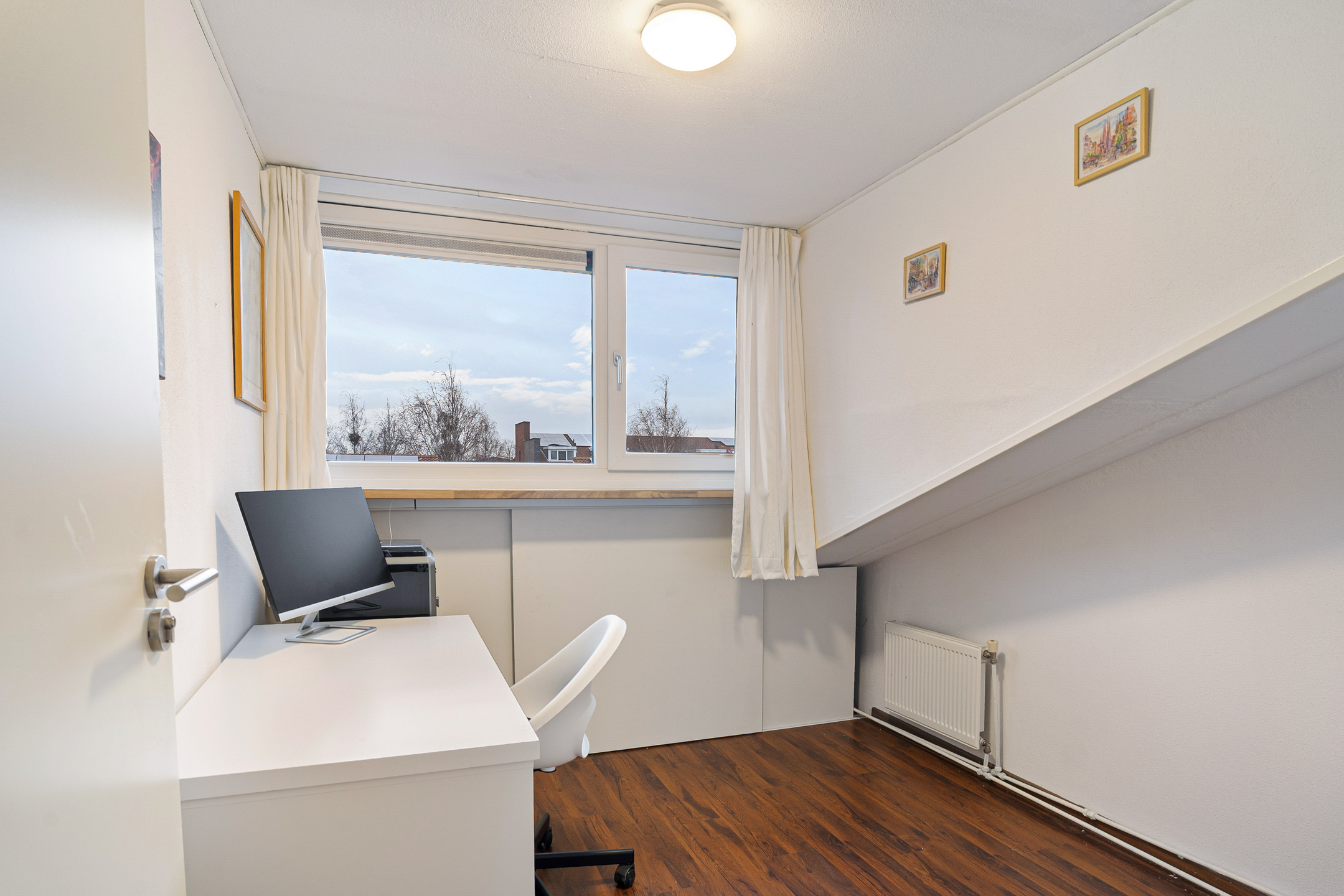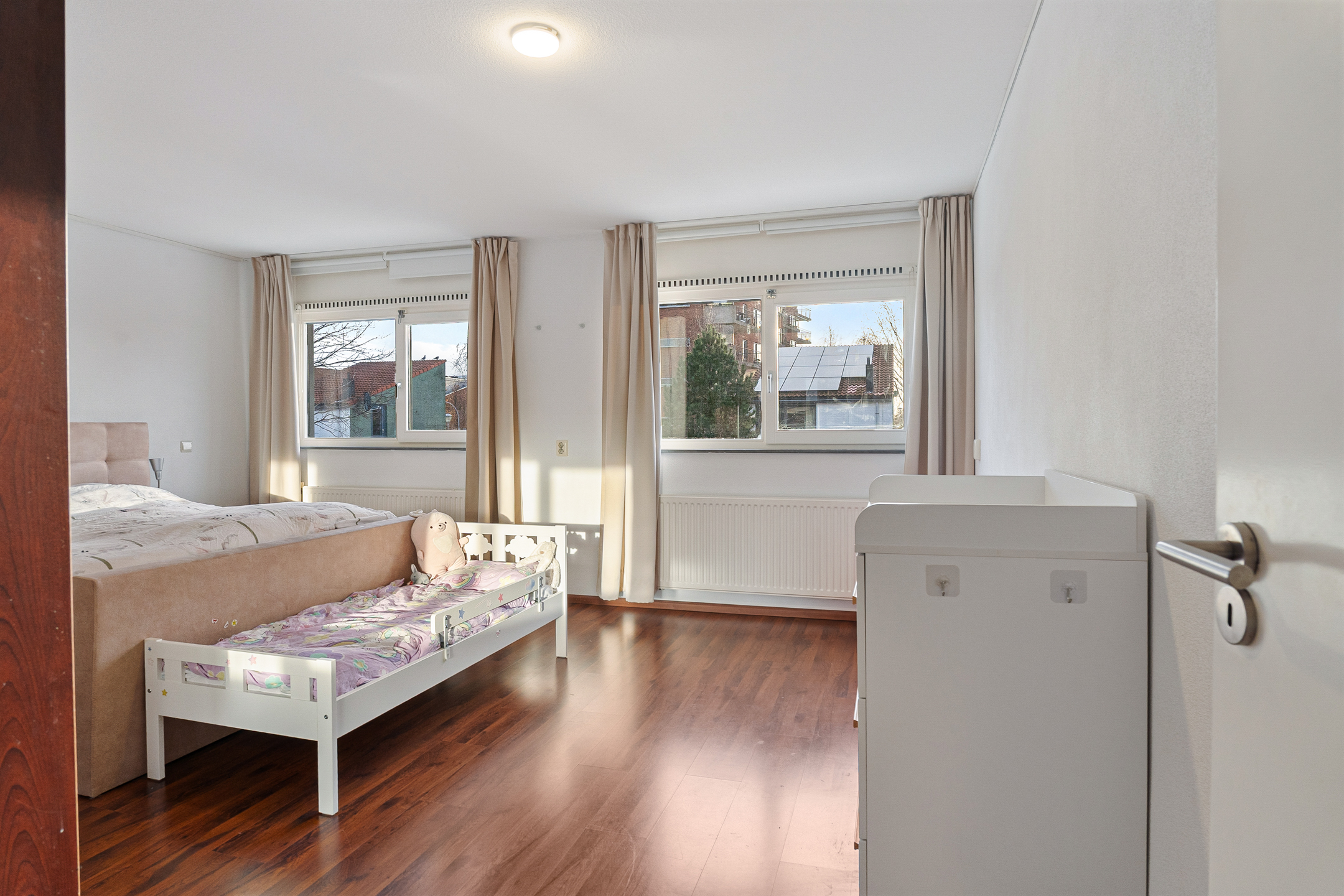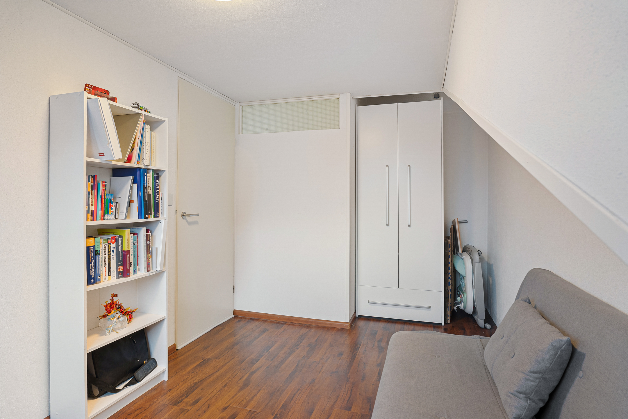 De tweede verdieping biedt verrassend veel ruimte en is ideaal voor een groot gezin, thuiswerken of logees. Aan de voorzijde ligt een ruime slaapkamer met hoge nok en veel daglicht.