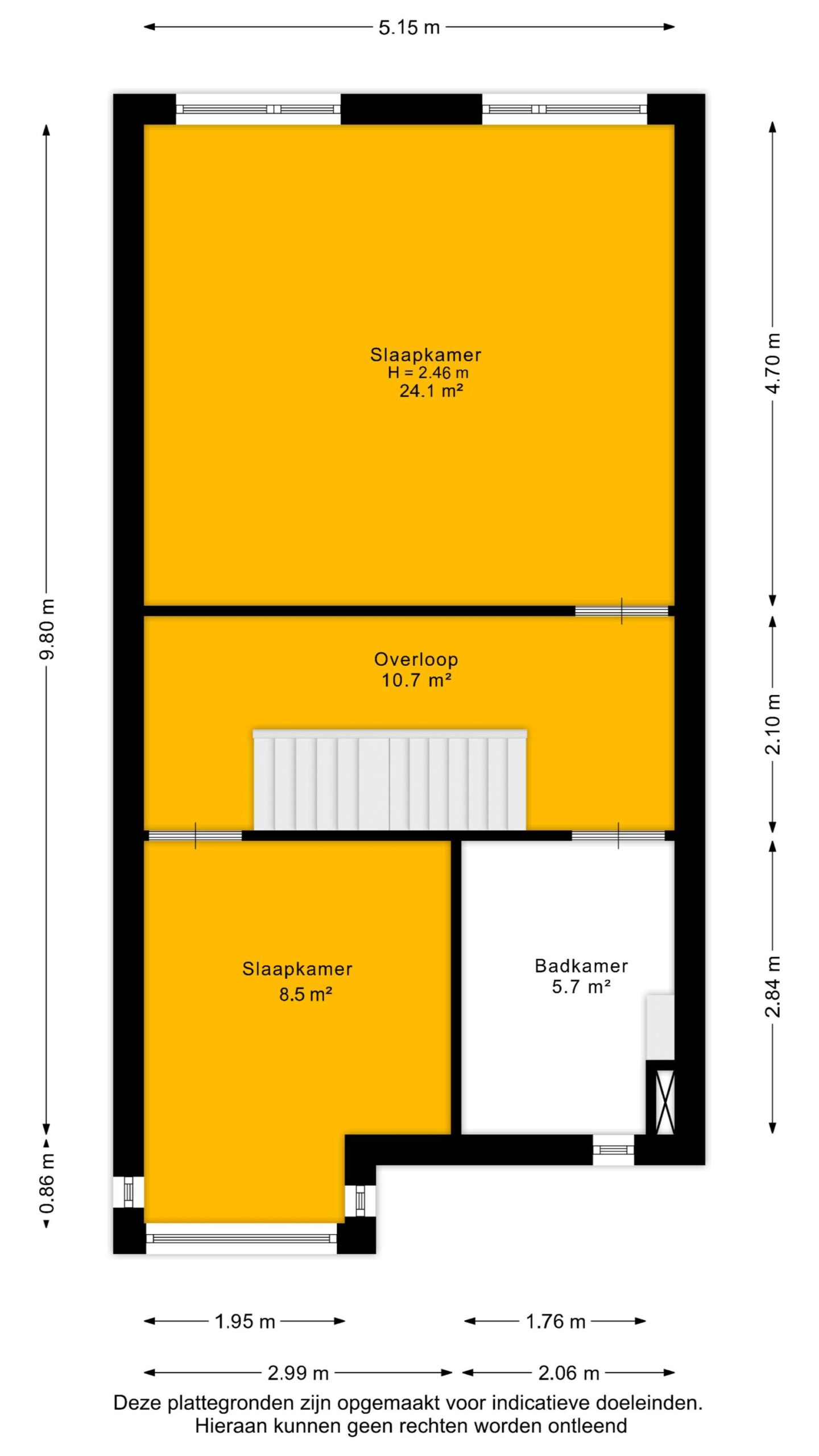 De overloop geeft toegang tot twee royale slaapkamers en de badkamer. Aan de voorzijde bevindt zich een comfortabele slaapkamer met fijne lichtinval.