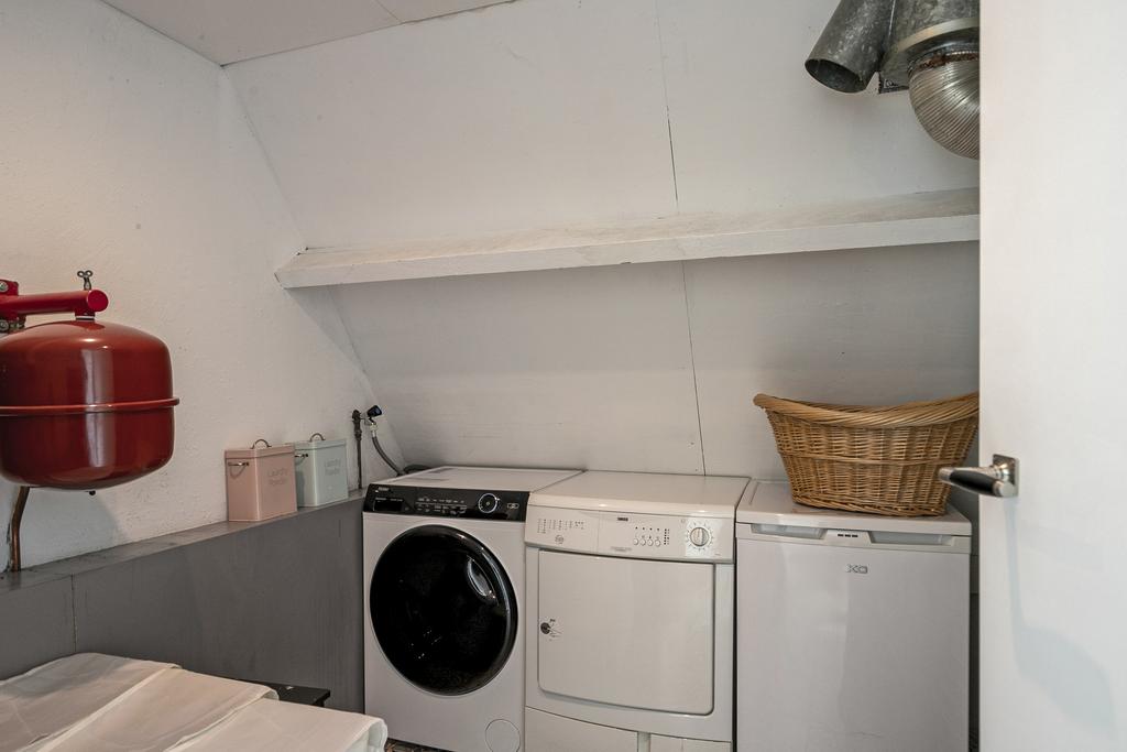 Wasruimte met betegelde vloer en slaapkamer 4 liggen aan de voorzijde van de woning.
