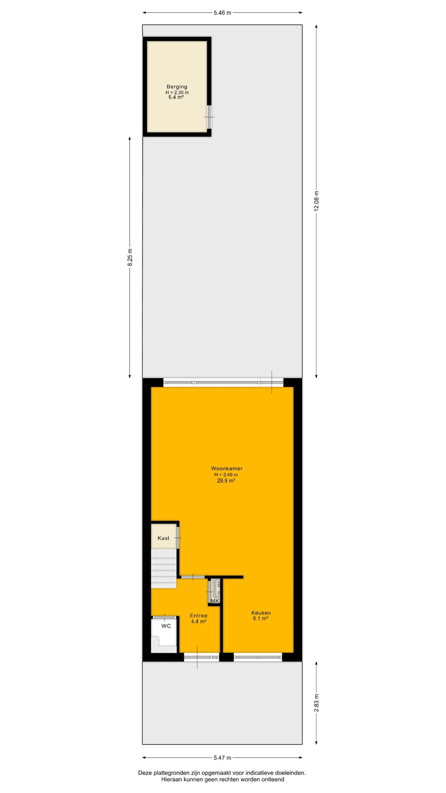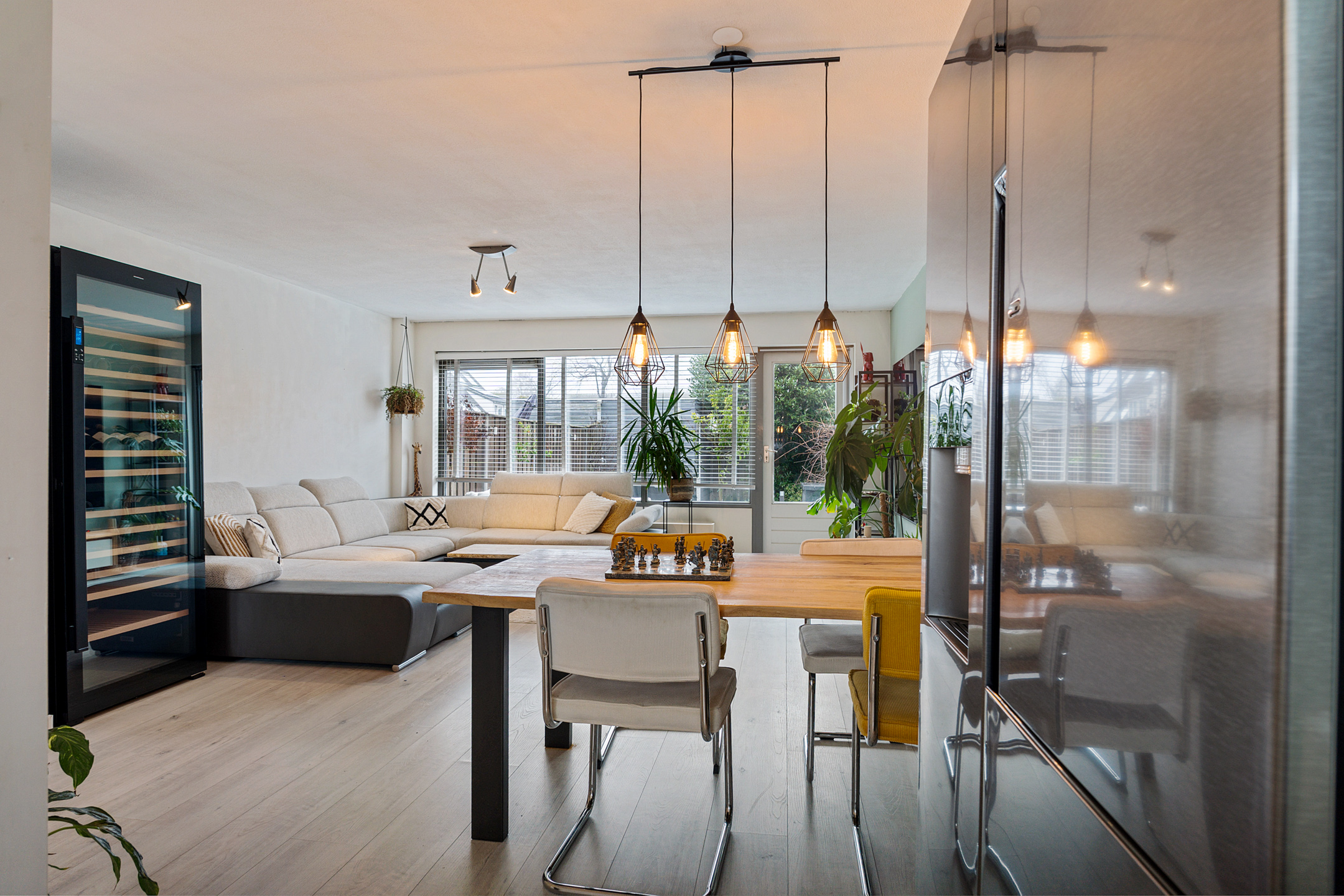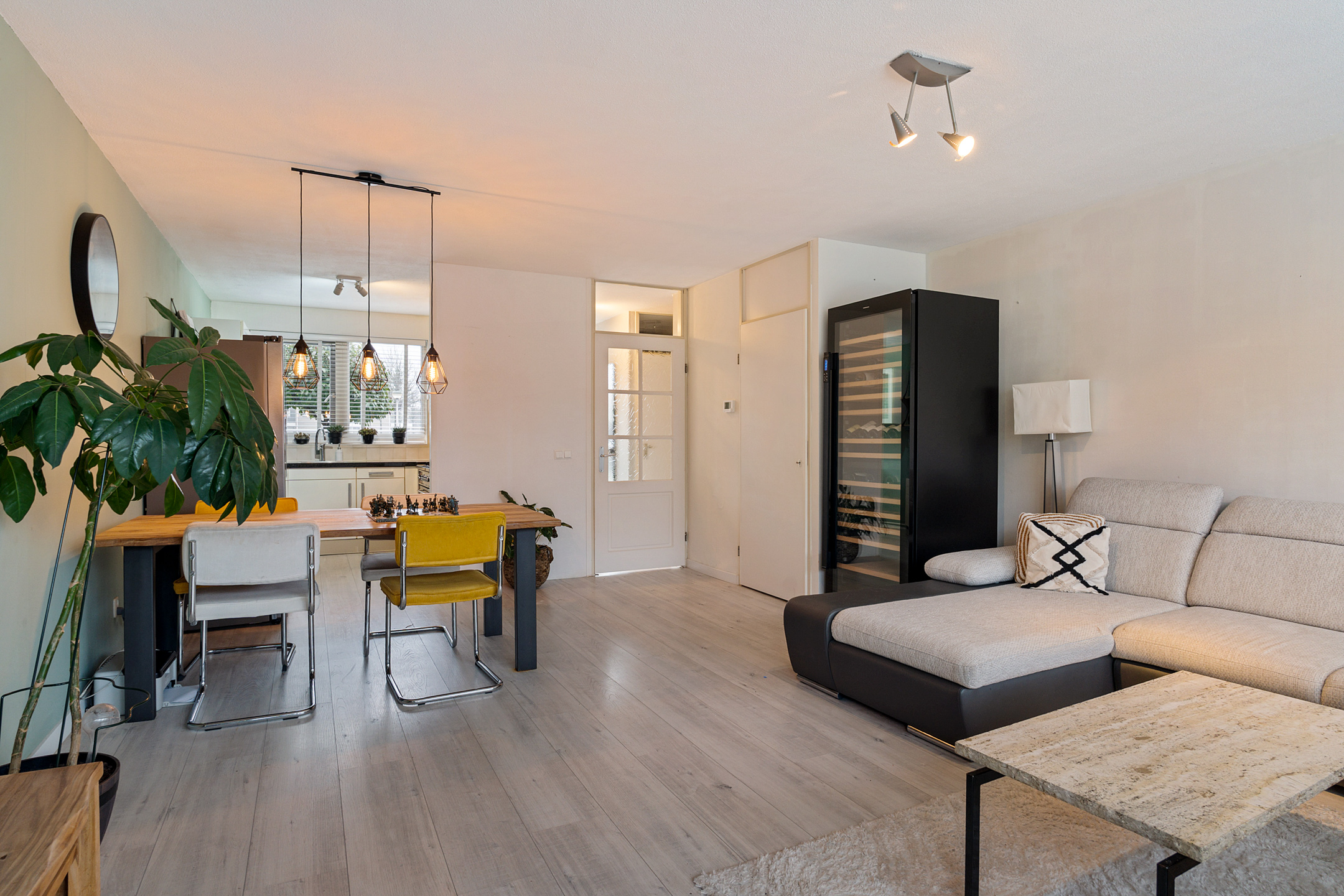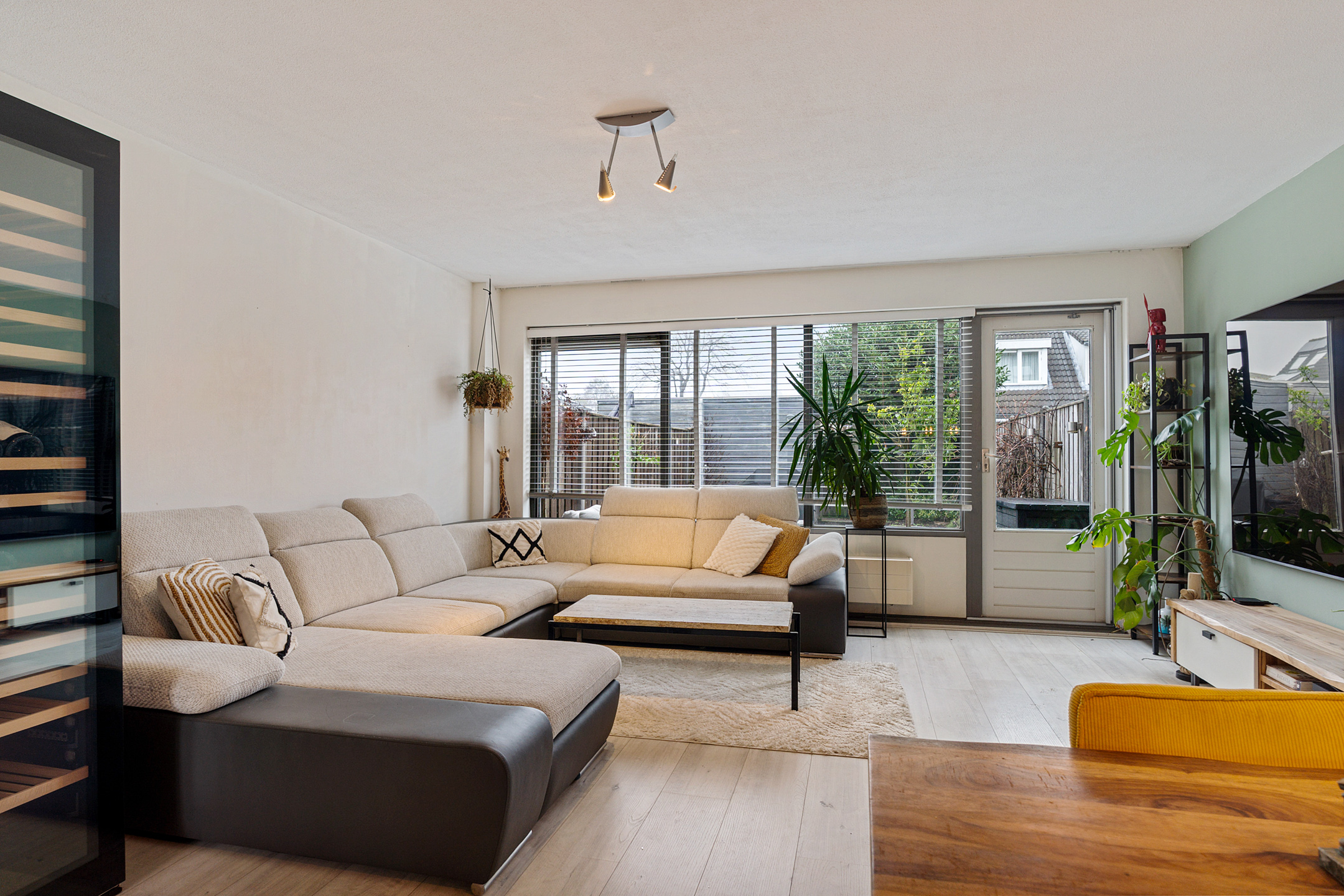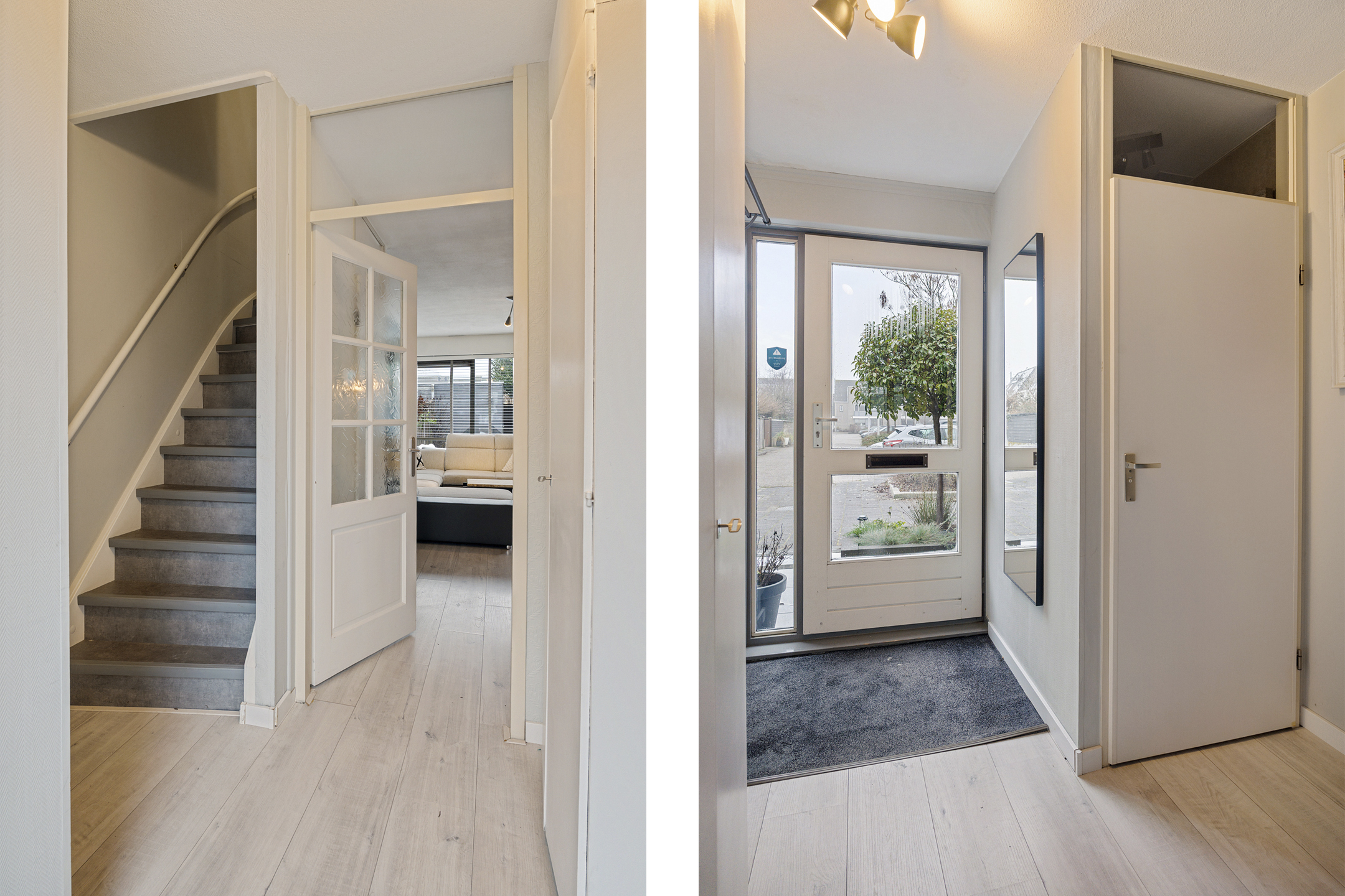Via de verzorgde voortuin bereik je de entree van de woning. In de hal vind je de meterkast, de trapopgang naar de verdieping en het toilet. Vanuit de hal loop je door naar de ruime, tuingerichte woonkamer, die is afgewerkt met een laminaatvloer. De woonkamer beschikt over een praktische trapkast en een deur die direct toegang geeft tot de achtertuin.