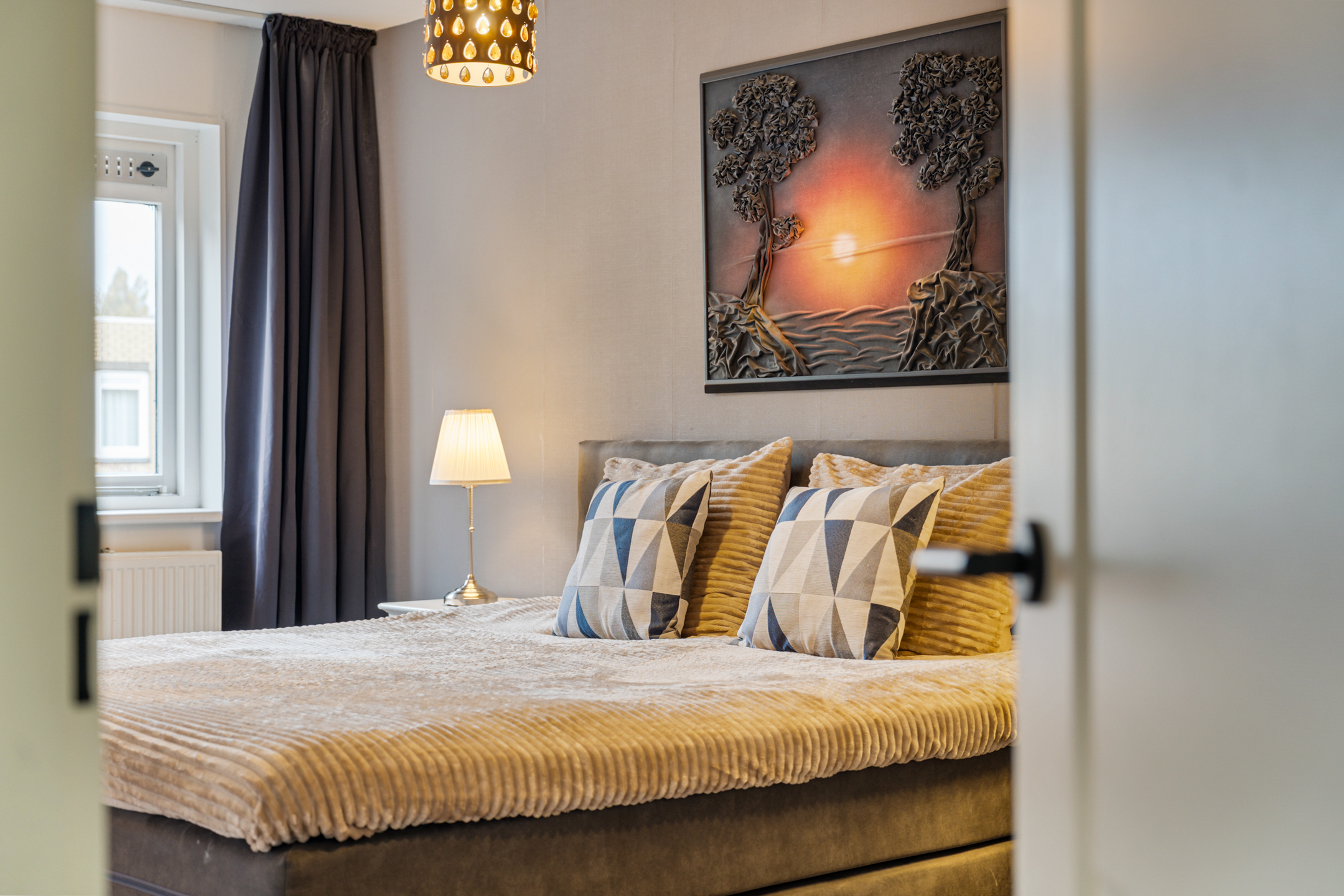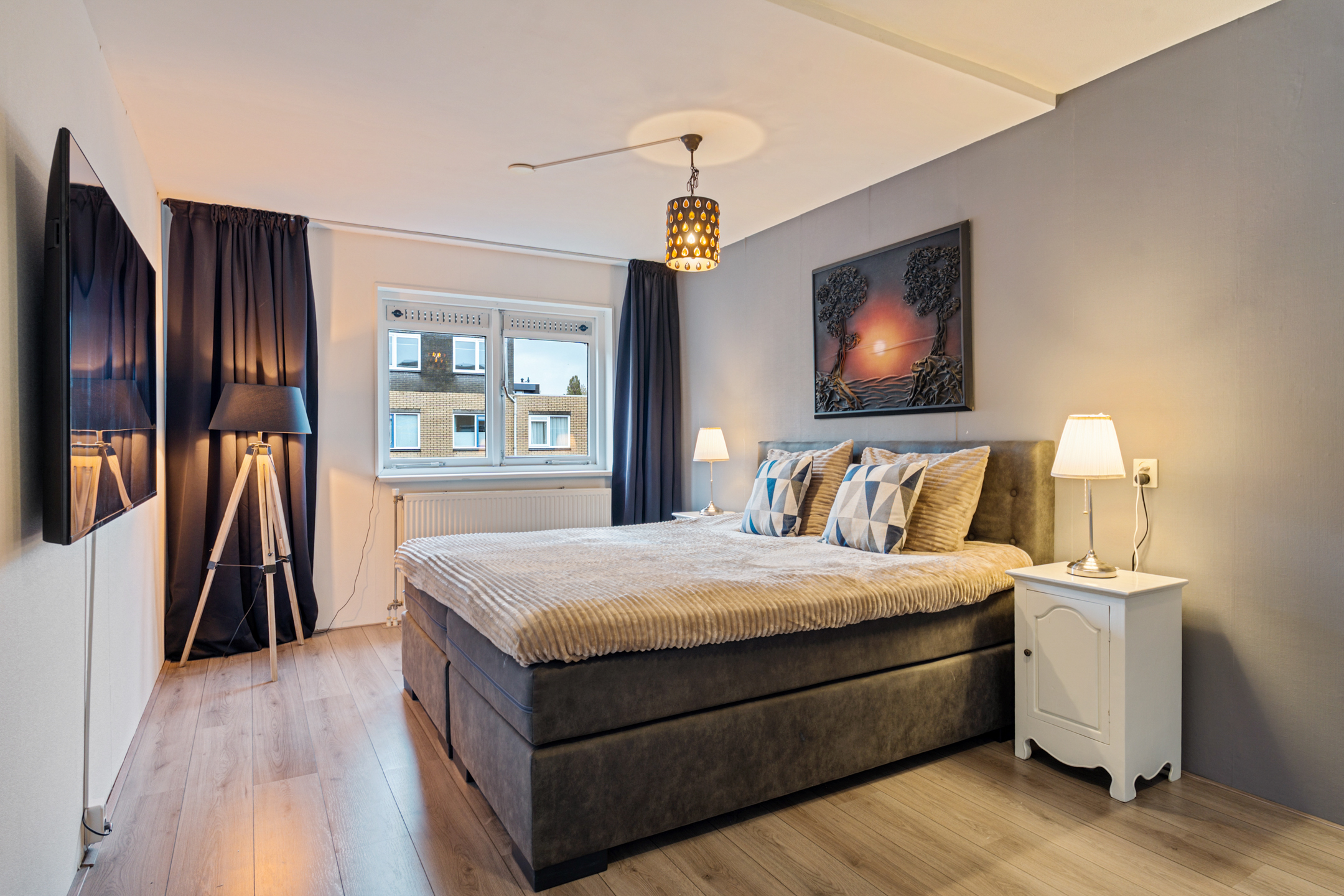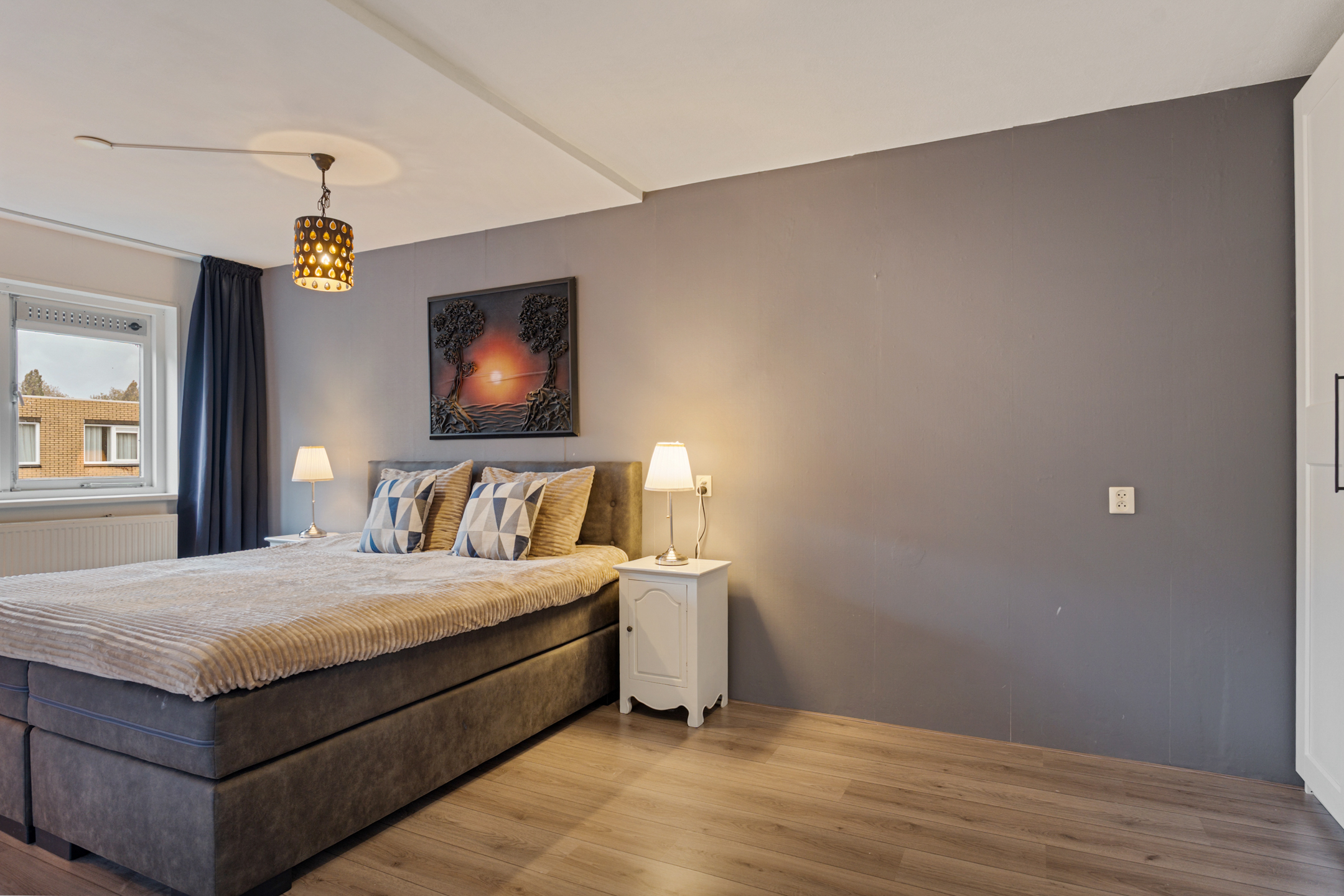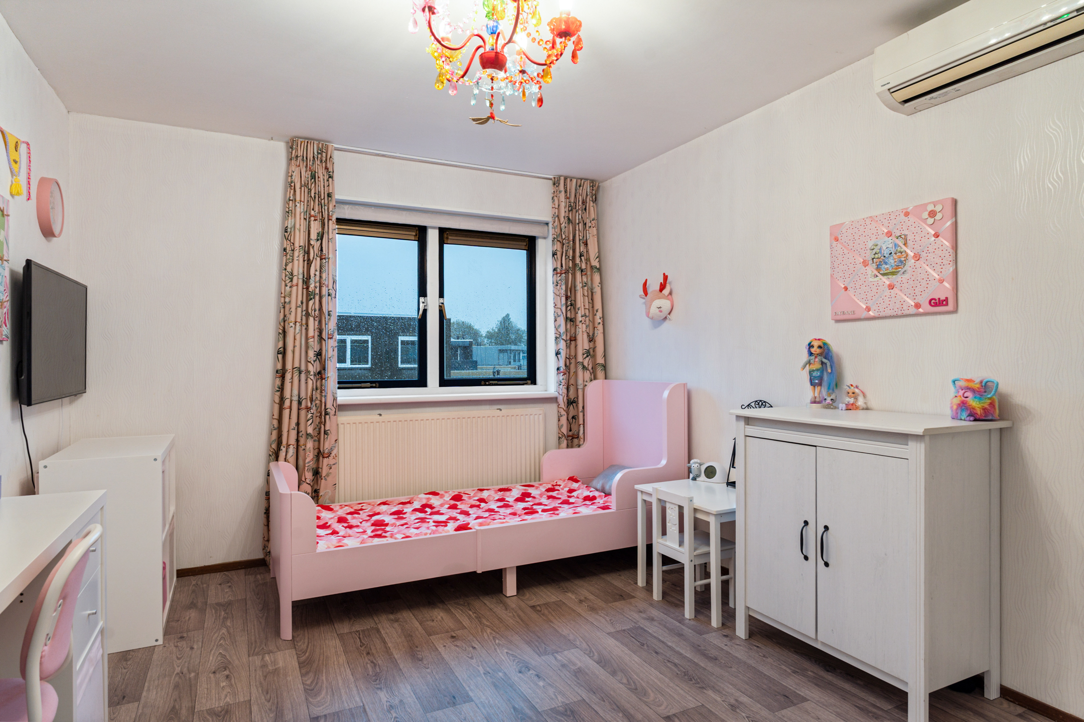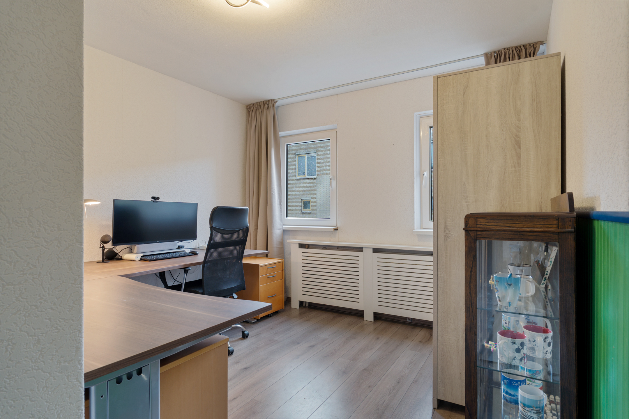 De tweede verdieping beschikt over nog twee volwaardige slaapkamers, waarvan één is uitgerust met airconditioning. Verder is er een ruime overloop met aansluitingen voor de wasmachine en de opstelplaats van de cv-ketel. Daarnaast is er een aparte berging, ideaal voor het opbergen van spullen.