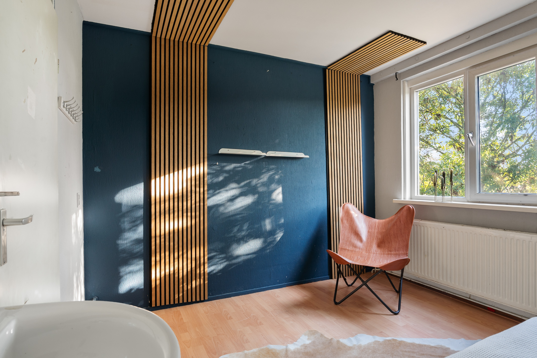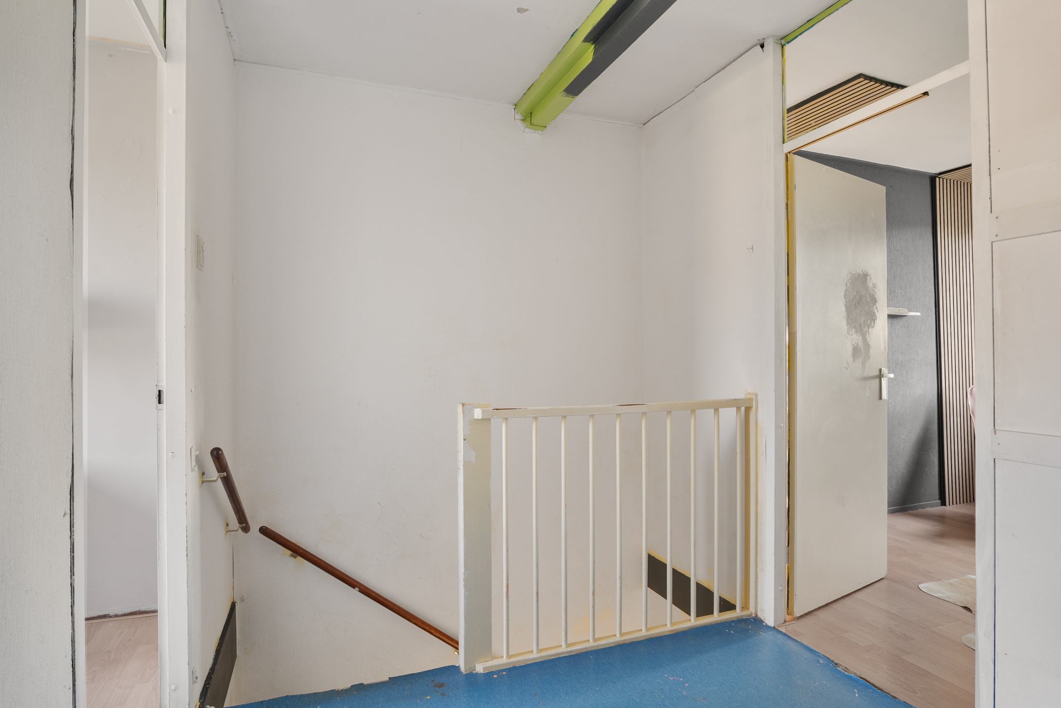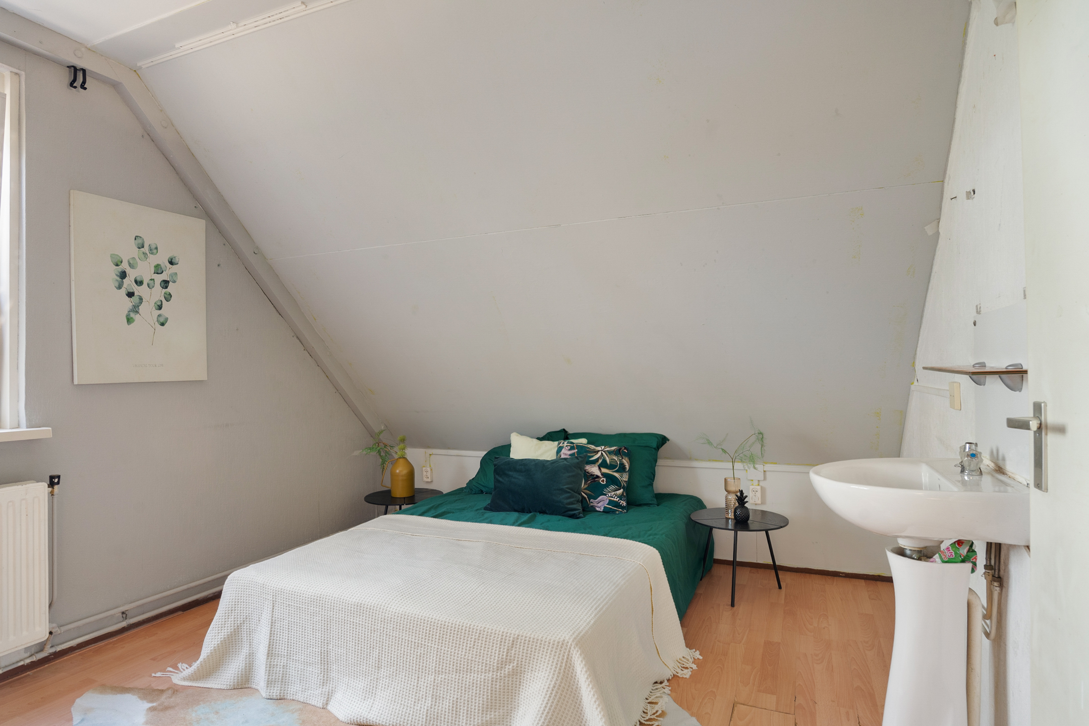 De zolderverdieping is praktisch ingedeeld met een overloop en twee extra slaapkamers. Beide kamers beschikken over daglicht via vaste ramen en zijn geschikt als slaap-, werk- of logeerkamer. Op de overloop zijn ook de aansluitingen voor de wasmachine en droger aanwezig, evenals de opstelling van de cv-ketel. De schuine daklijnen geven deze verdieping een speels karakter, terwijl de ruimte optimaal benut is.