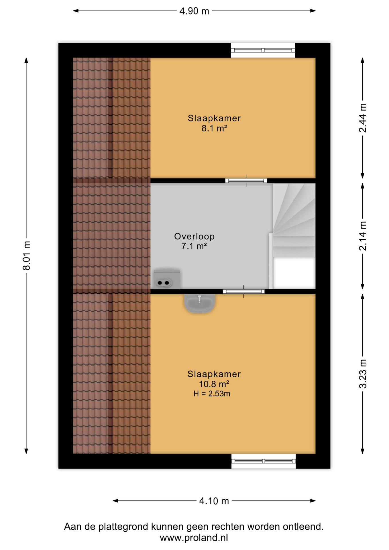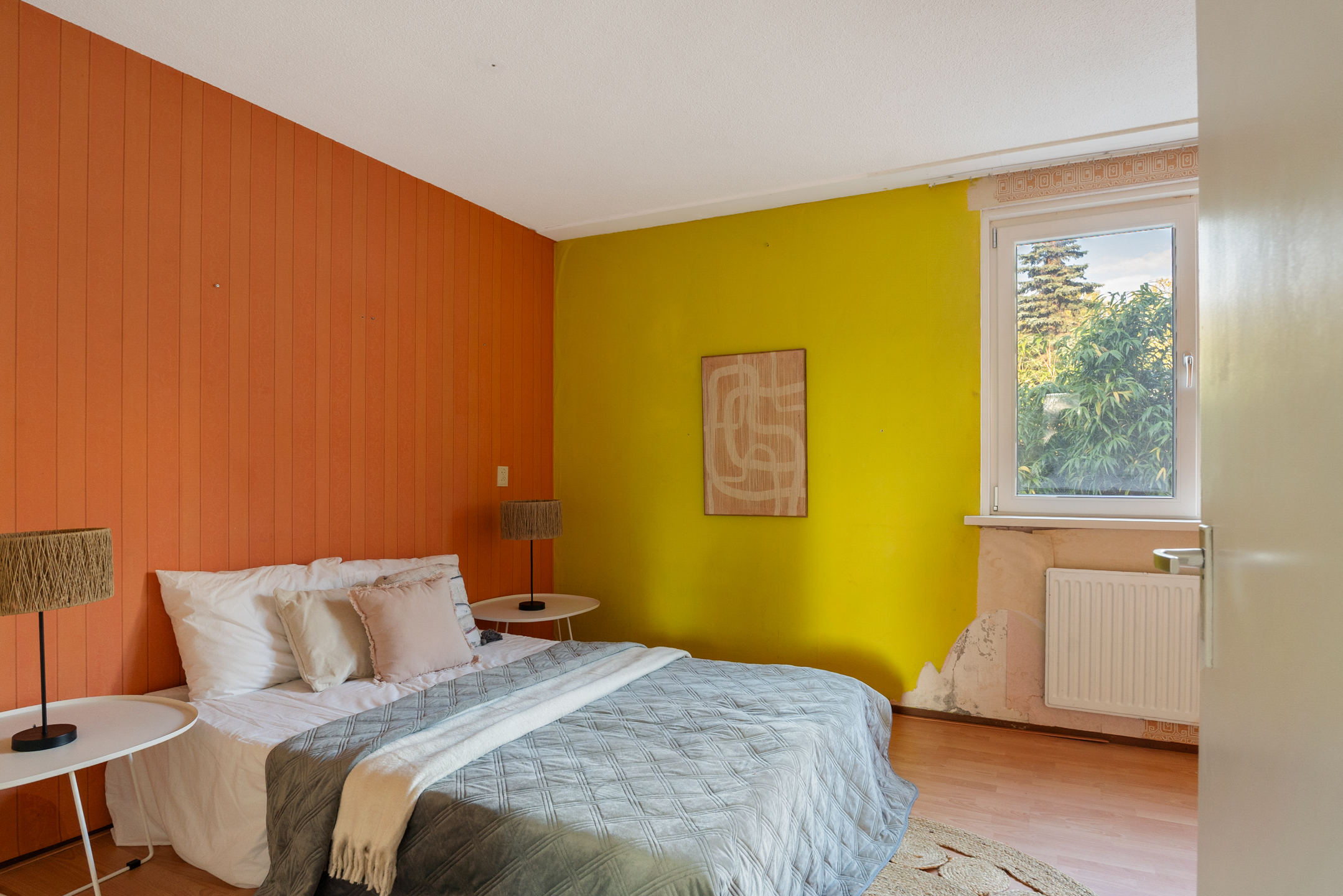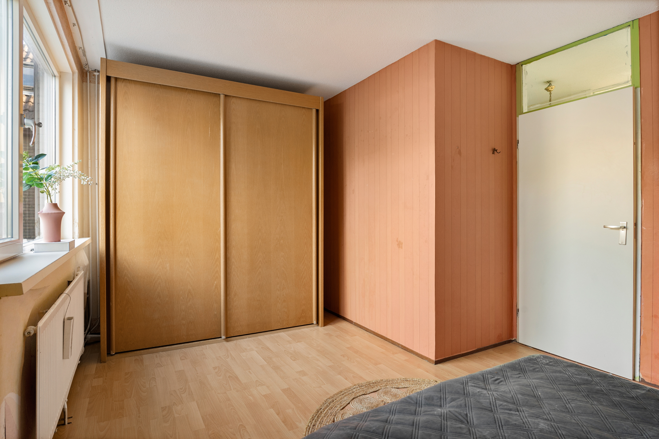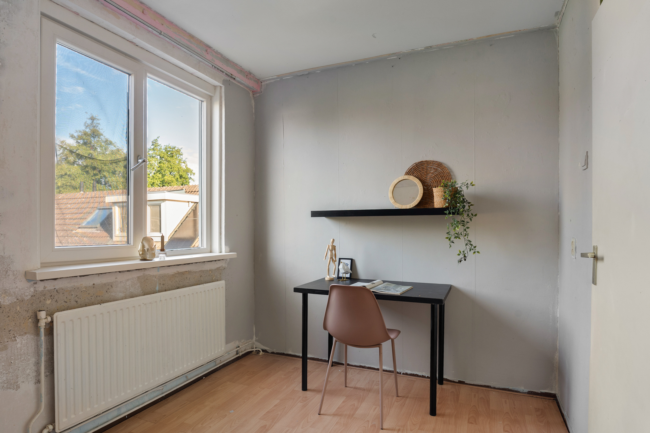 De zolderverdieping is praktisch ingedeeld met een overloop en twee extra slaapkamers. Beide kamers beschikken over daglicht via vaste ramen en zijn geschikt als slaap-, werk- of logeerkamer. Op de overloop zijn ook de aansluitingen voor de wasmachine en droger aanwezig, evenals de opstelling van de cv-ketel. De schuine daklijnen geven deze verdieping een speels karakter, terwijl de ruimte optimaal benut is.
