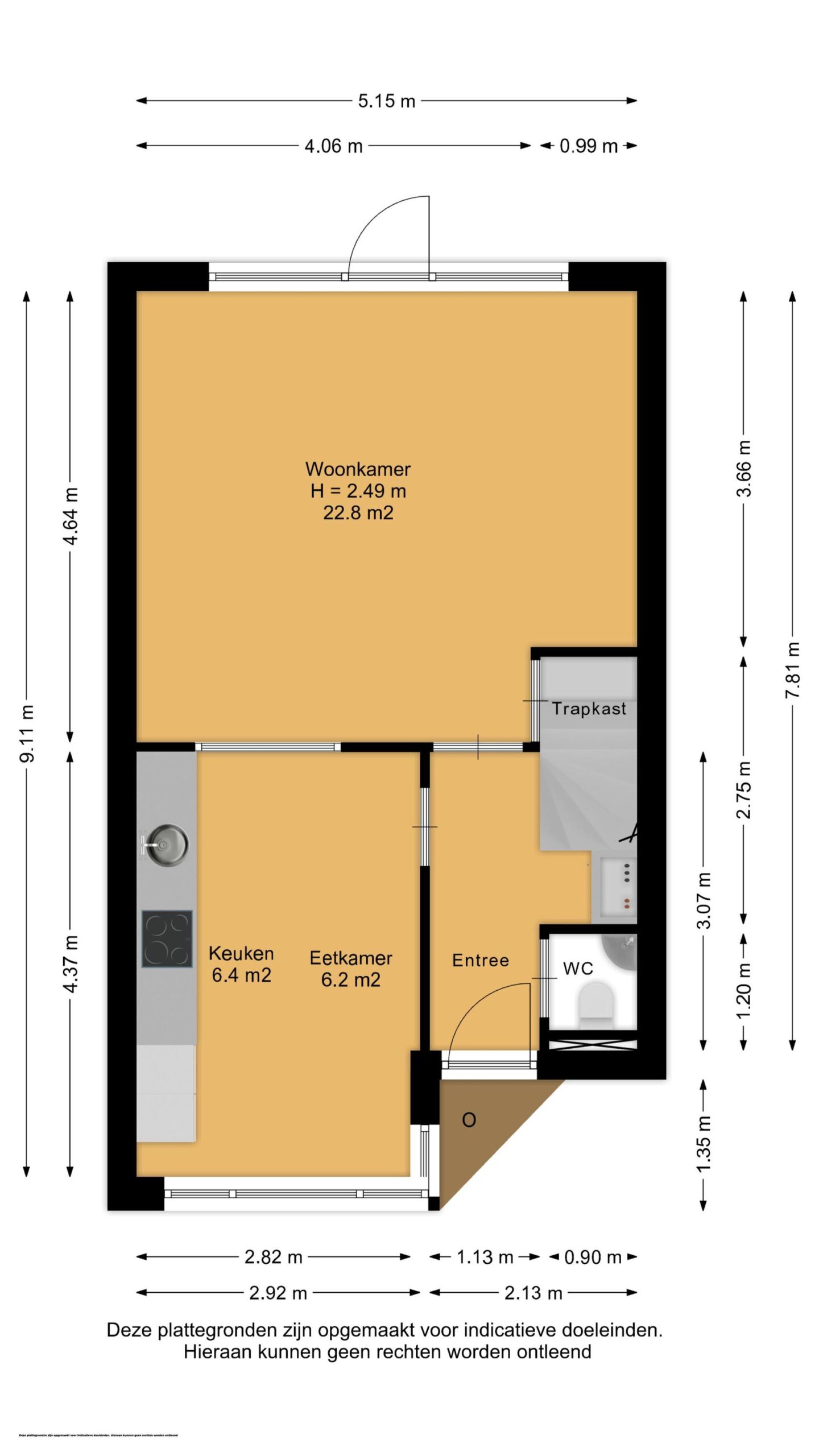 + Keuken en eetkamer aan de voorzijde, woonkamer aan de achterzijde