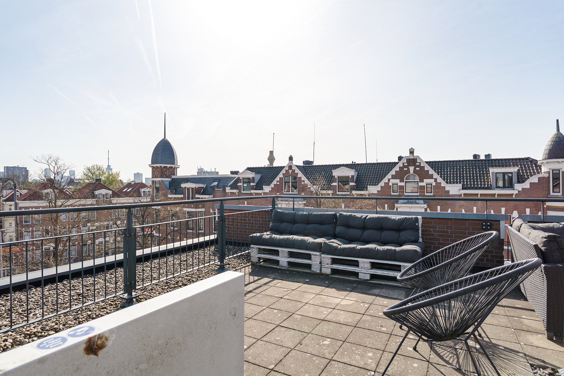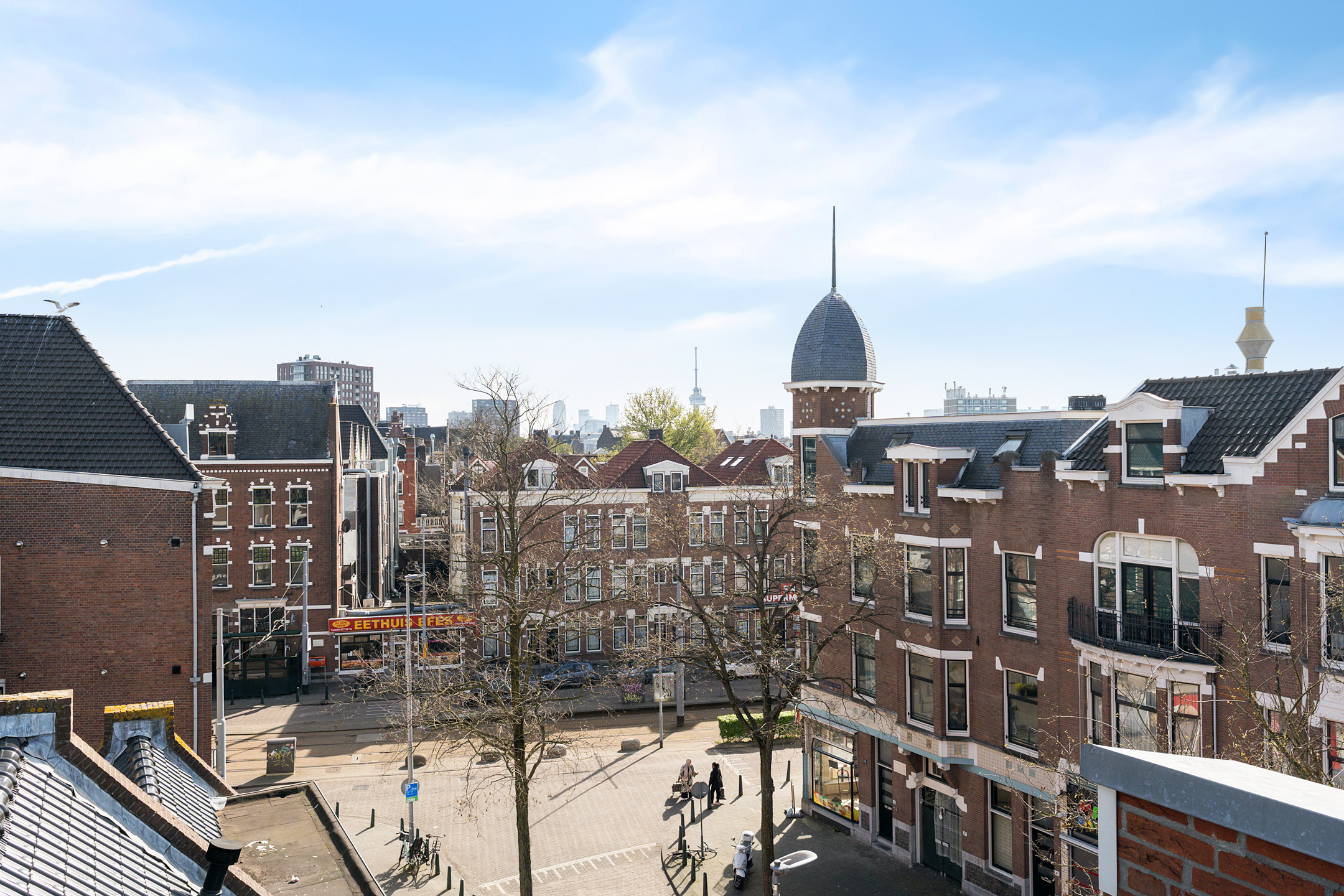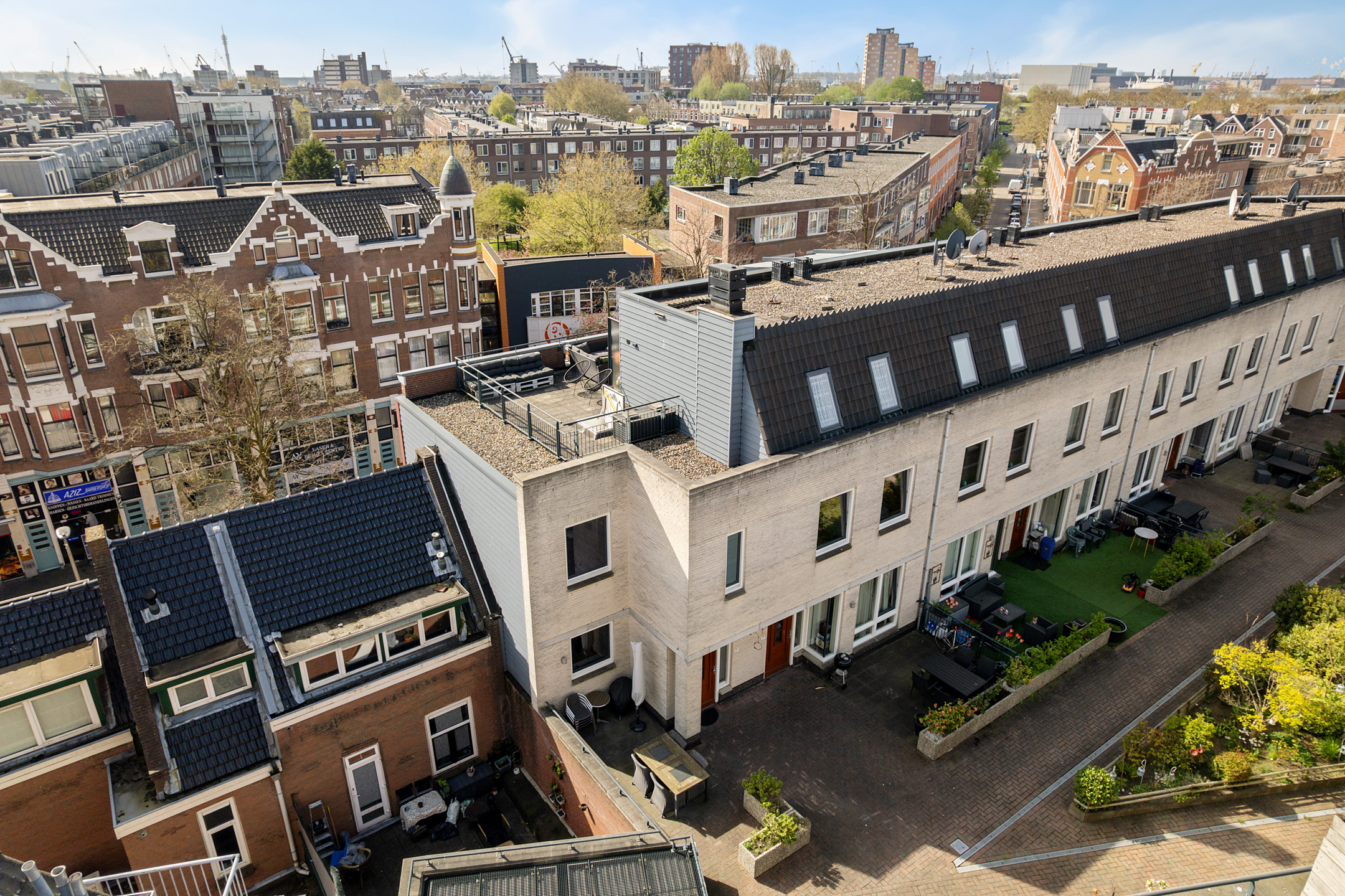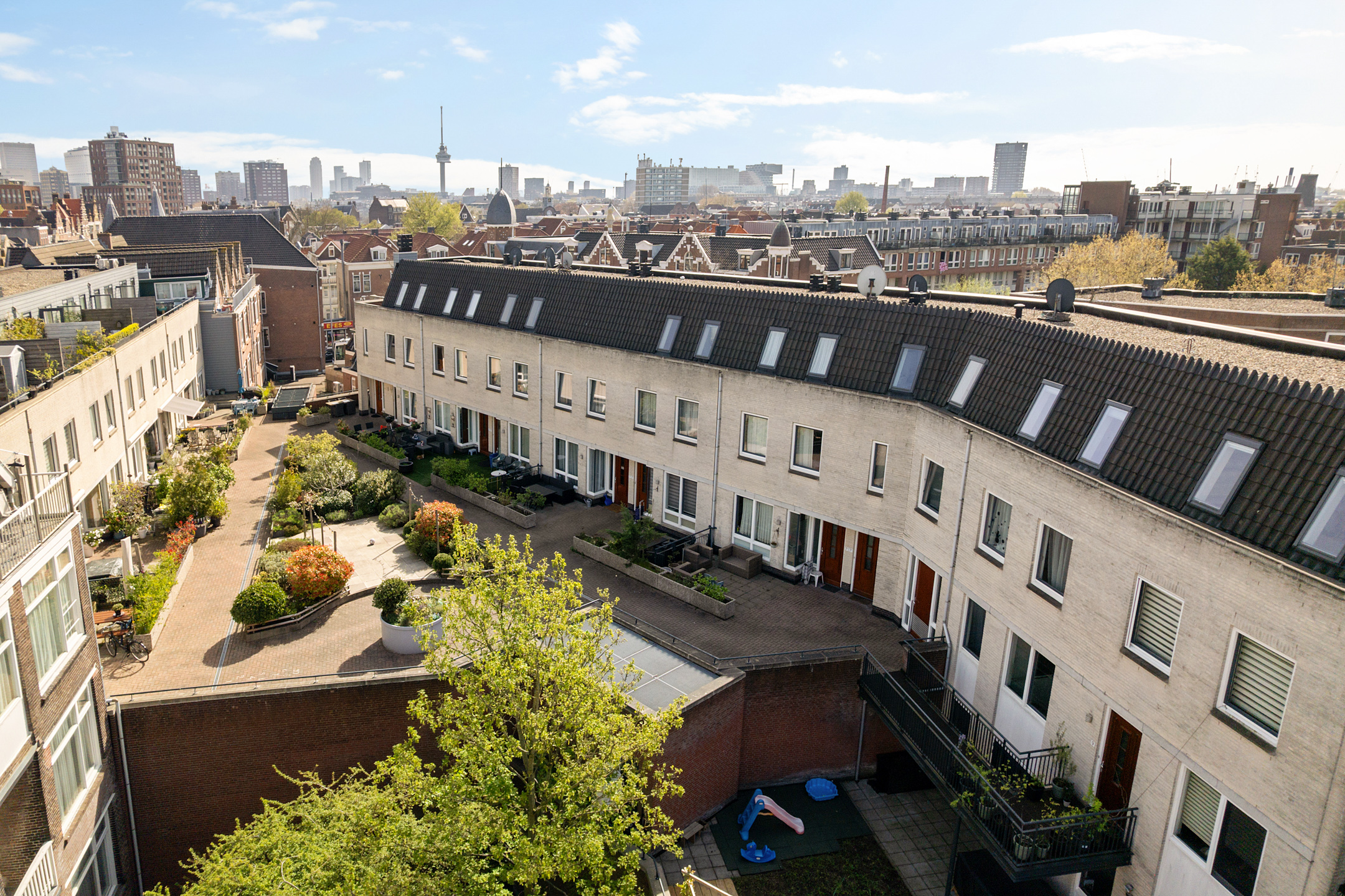 Op een heerlijk rustige locatie ligt dit uitstekend onderhouden maisonnette appartement met een tuintje en dakterras. Vanaf het zonnige terras kijk je uit op de Euromast. Je beschikt hier over een fijne woonkamer met open keuken (inclusief kookeiland) en op de verdieping vind je twee slaapkamers, een inloopkast en een luxe badkamer.