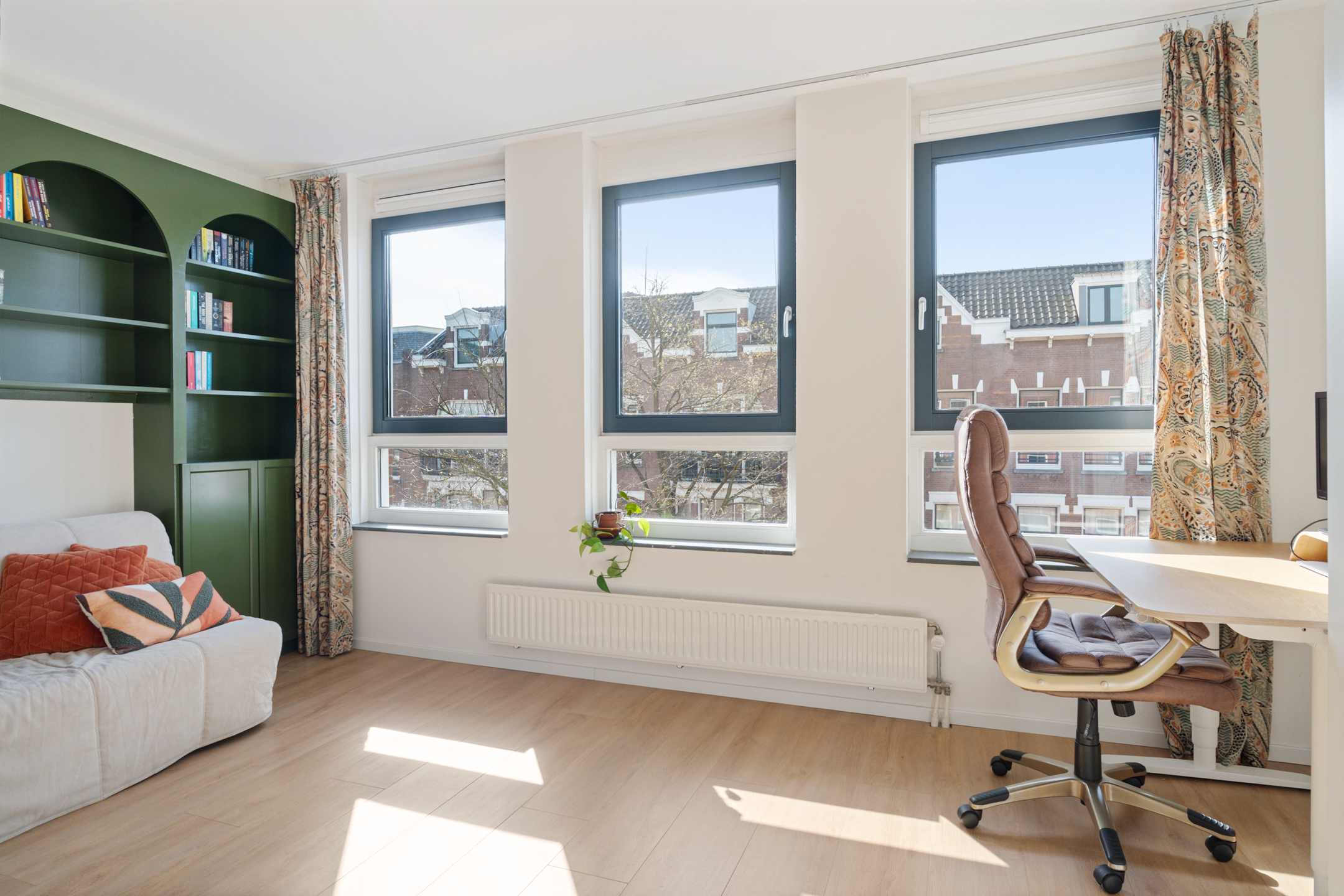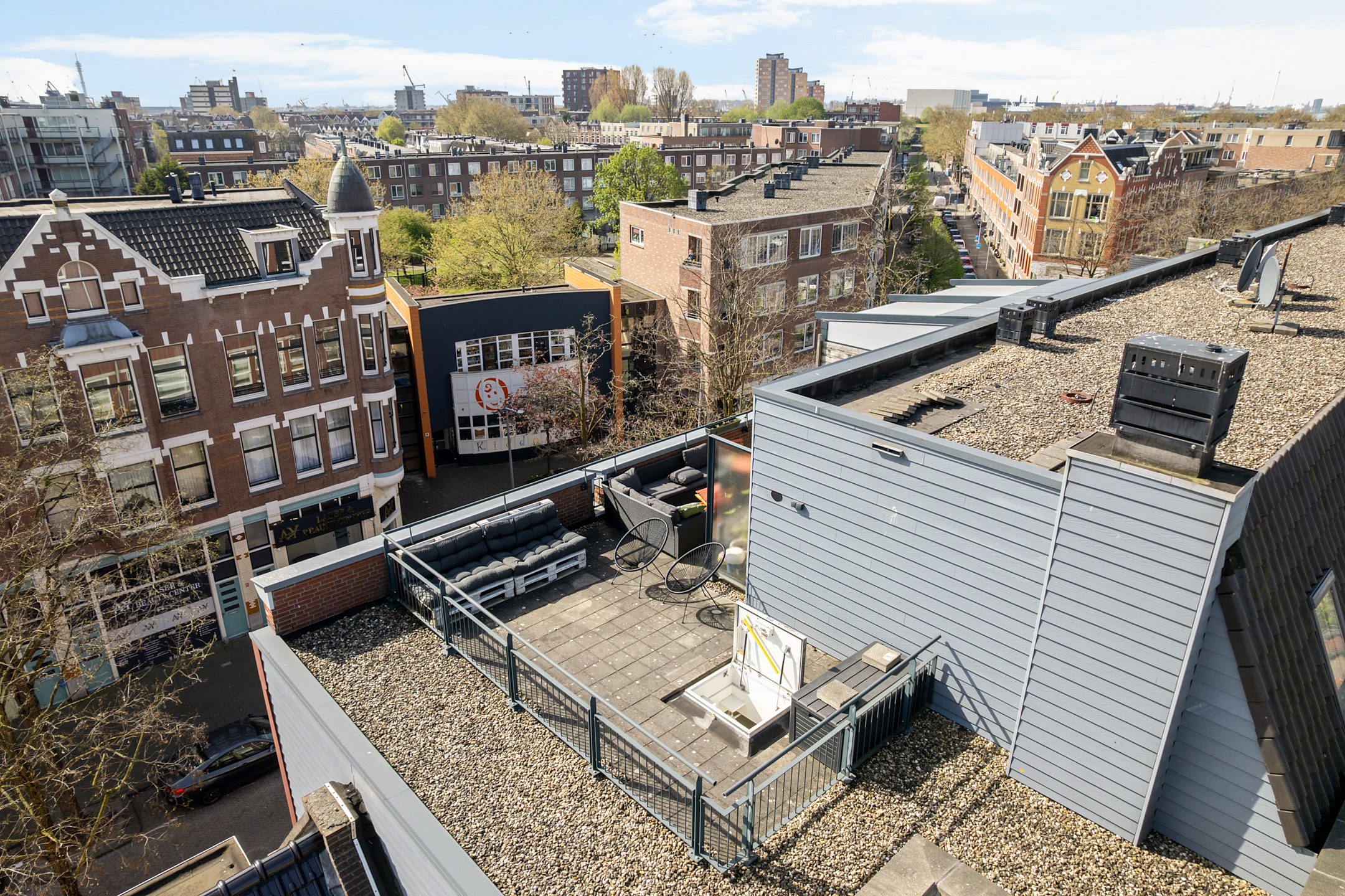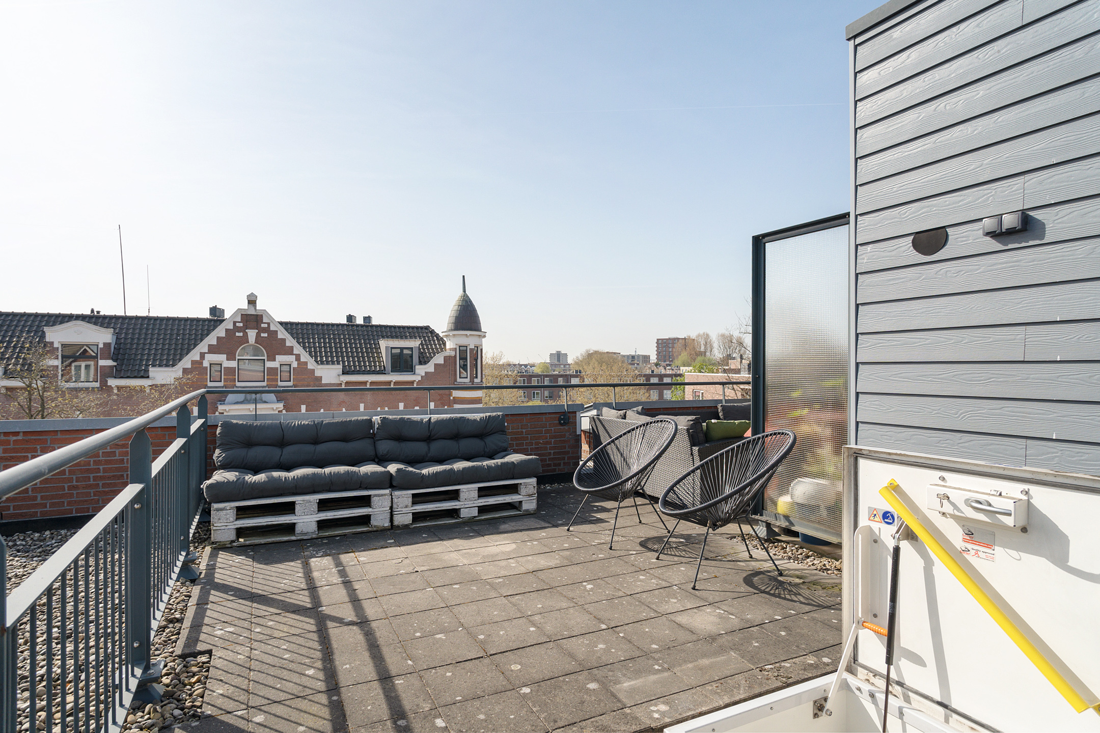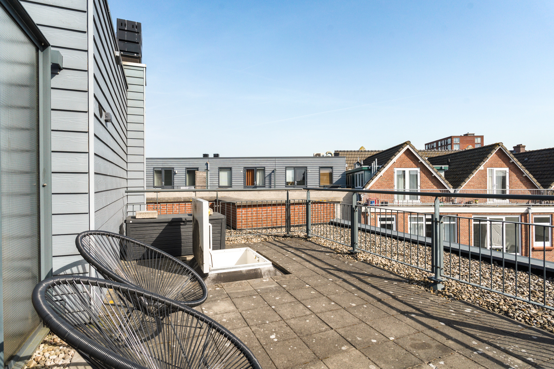 Op een heerlijk rustige locatie ligt dit uitstekend onderhouden maisonnette appartement met een tuintje en dakterras. Vanaf het zonnige terras kijk je uit op de Euromast. Je beschikt hier over een fijne woonkamer met open keuken (inclusief kookeiland) en op de verdieping vind je twee slaapkamers, een inloopkast en een luxe badkamer.