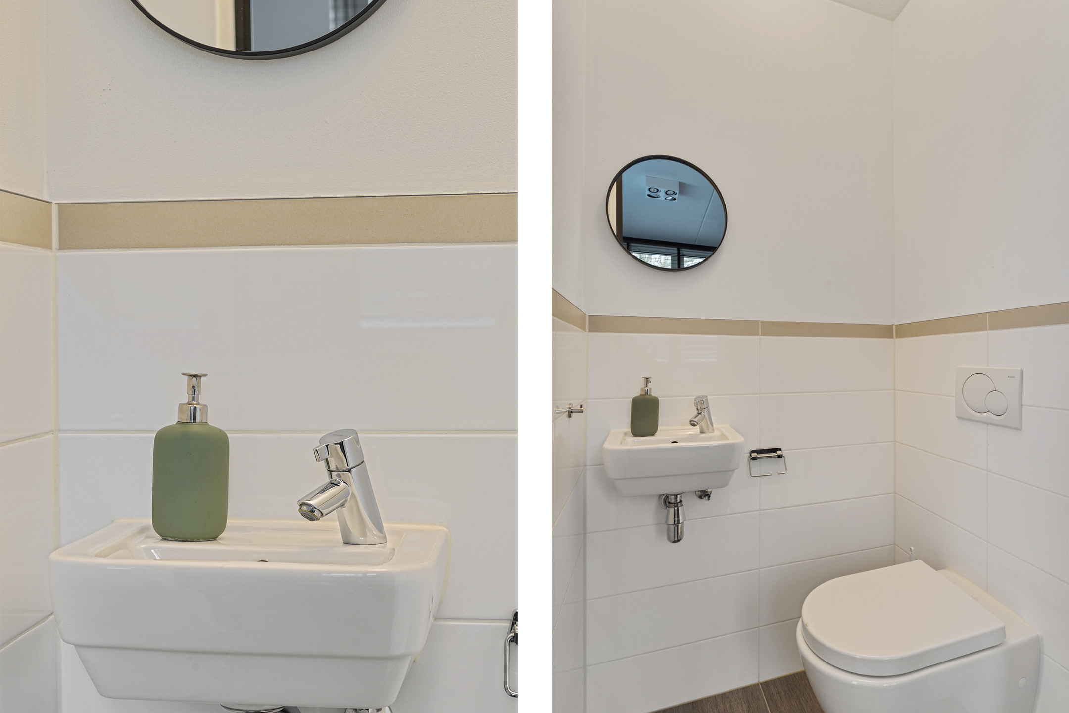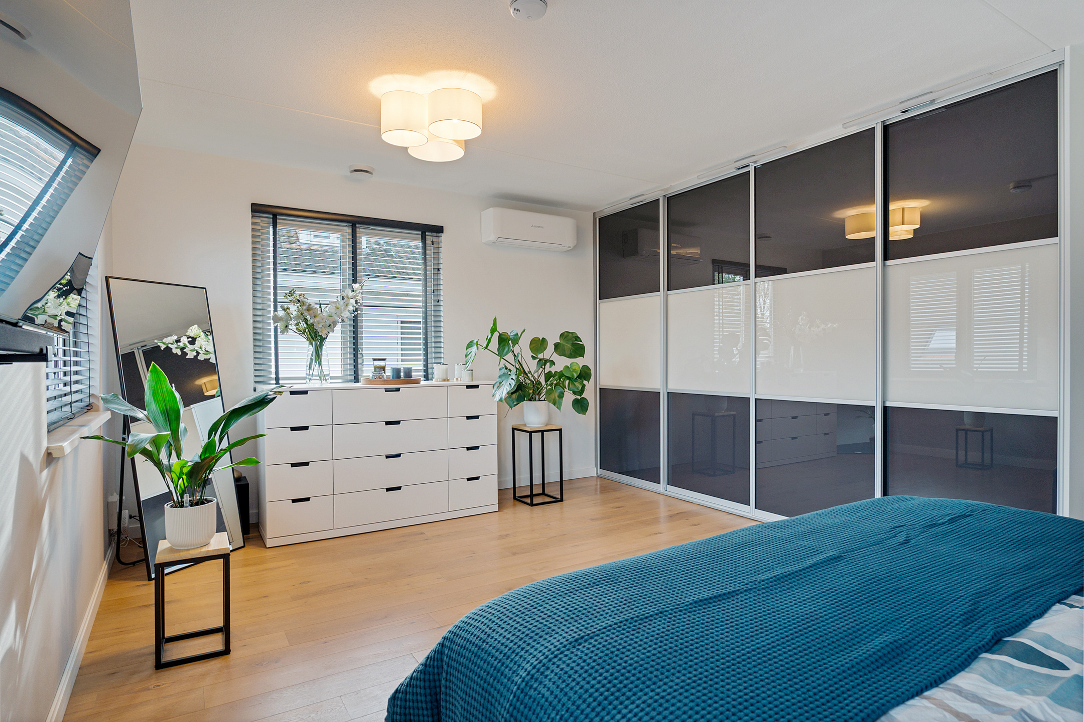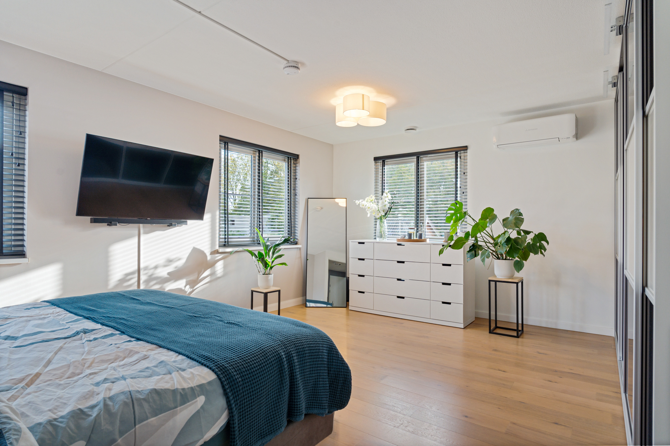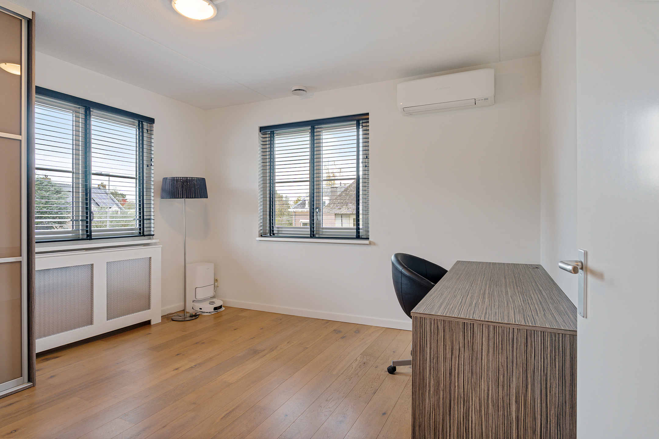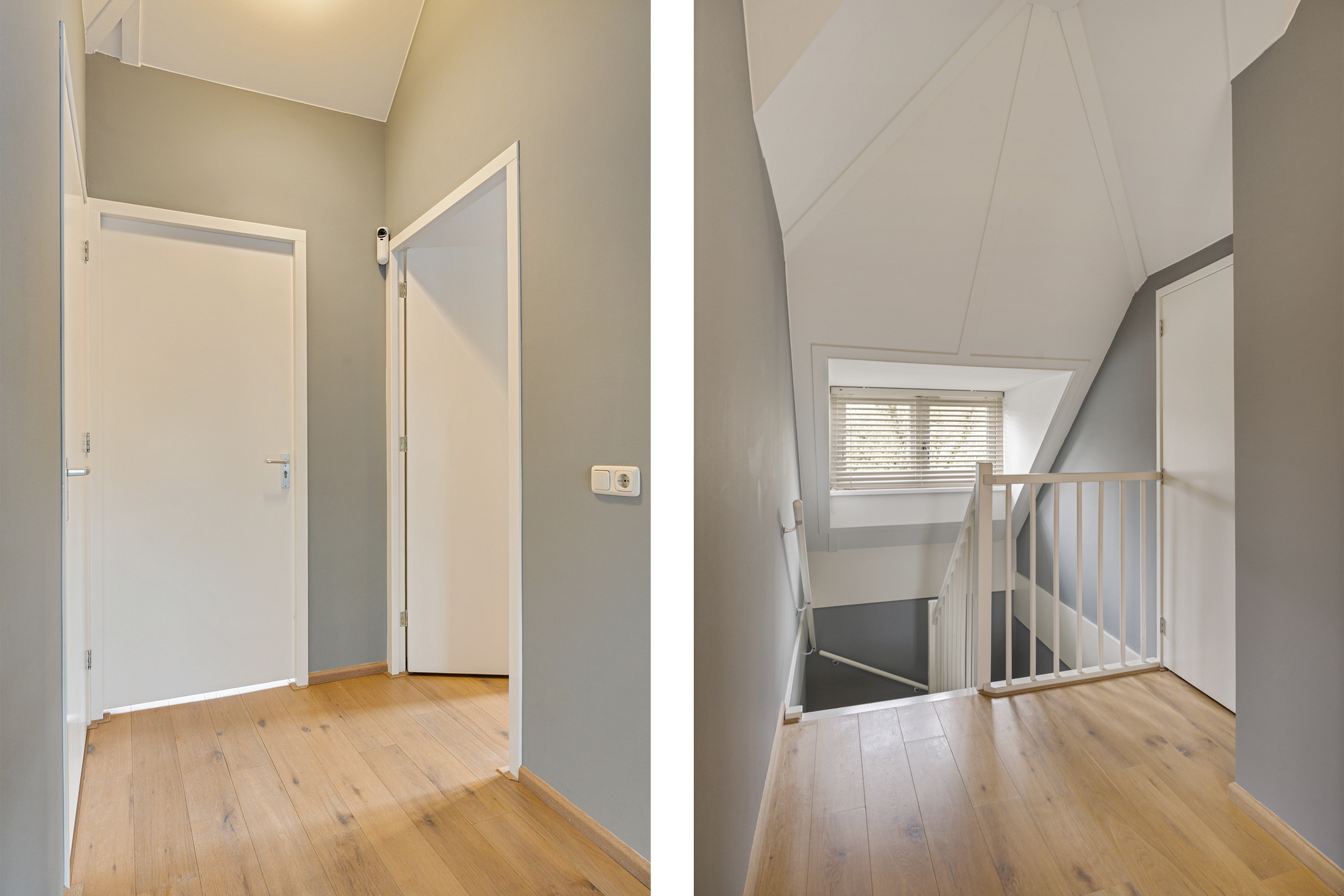 De overloop geeft toegang tot drie ruime slaapkamers, een modern zwevend toilet en een stijlvolle designbadkamer met inloopdouche, ligbad en wastafelmeubel met dubbele wastafelpartij. De gehele verdieping is afgewerkt met fraaie houten vloerdelen die zorgen voor een warme, luxe uitstraling.