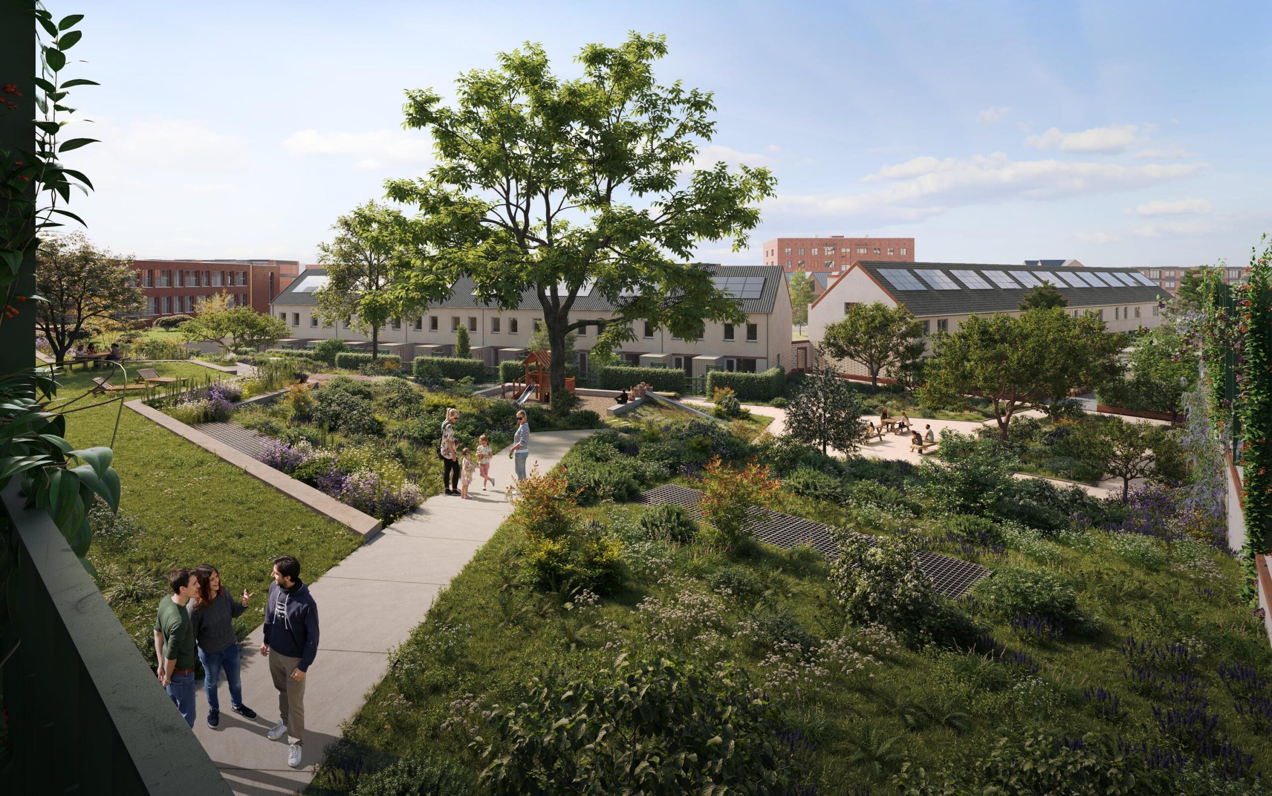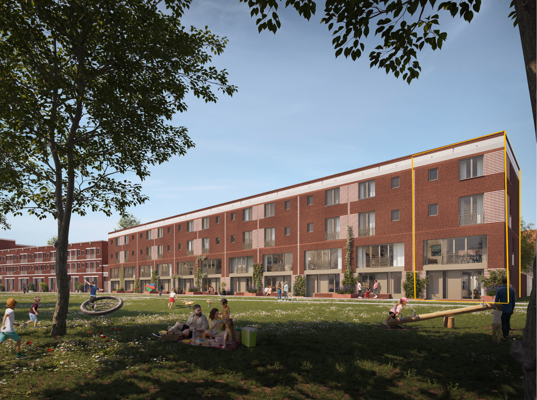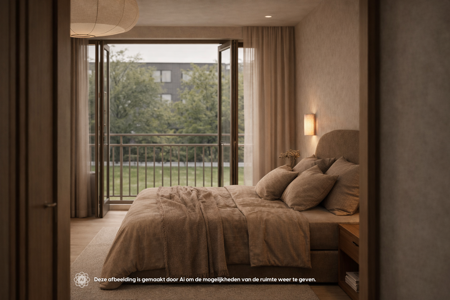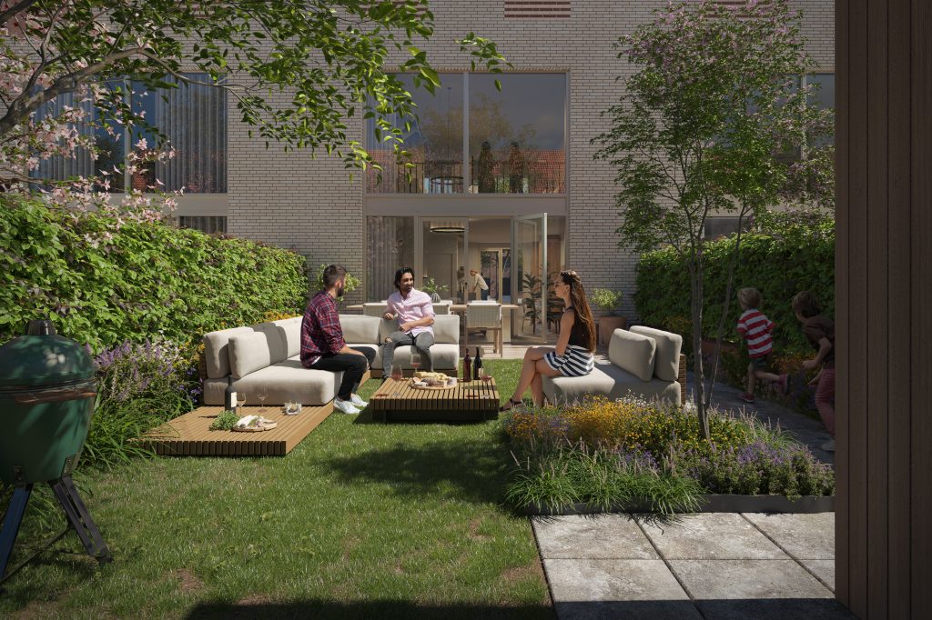 De diepe privétuin vormt een verlengstuk van de woonkeuken en biedt volop ruimte voor een terras, speelruimte of groeninvulling naar eigen wens. De tuin sluit aan op een gezamenlijke binnentuin met geïntegreerde beplanting en brede paden, wat bijdraagt aan een rustige en groene woonbeleving. Voor de binnentuin zijn geen kosten verbonden, maar er geldt wel een gebruiksrecht.