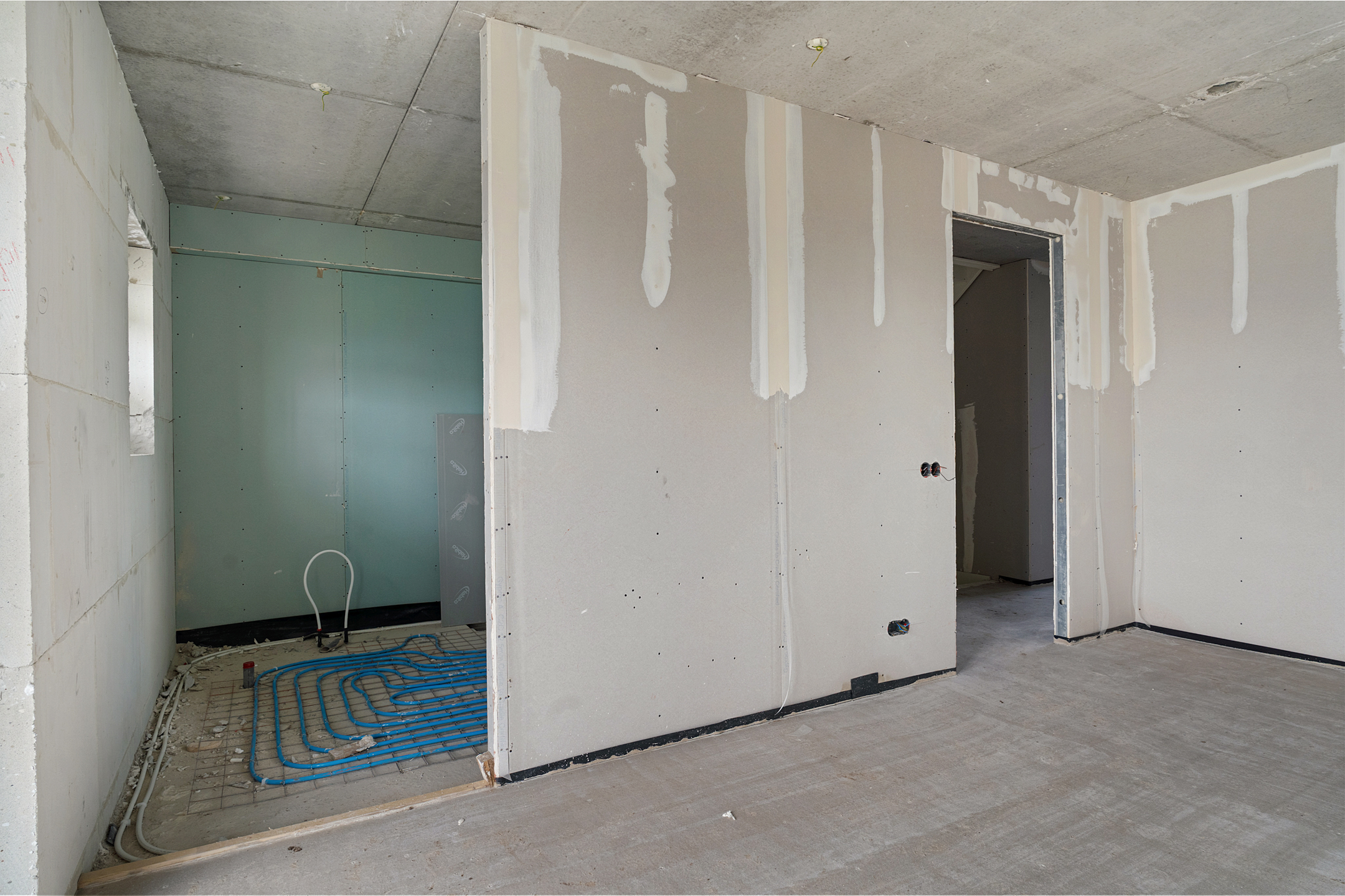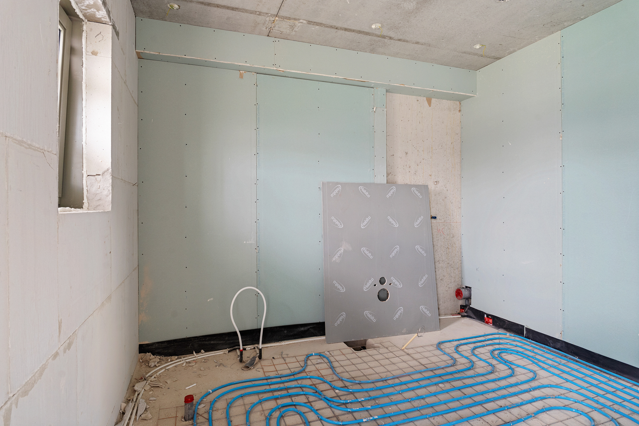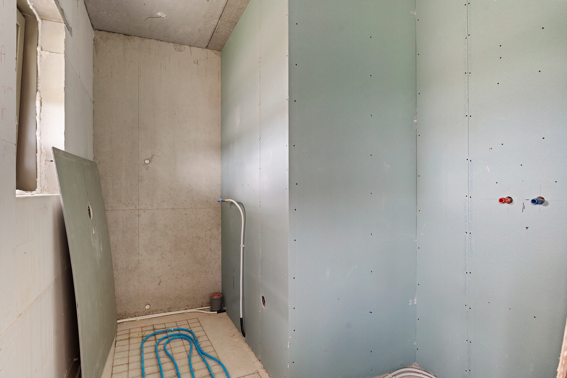 Je beschikt over twee badkamers (casco), waarvan één ensuite en één royale badkamer met ruimte voor een inloopdouche en de mogelijkheid voor een separaat toilet, volledig naar eigen wens af te werken..