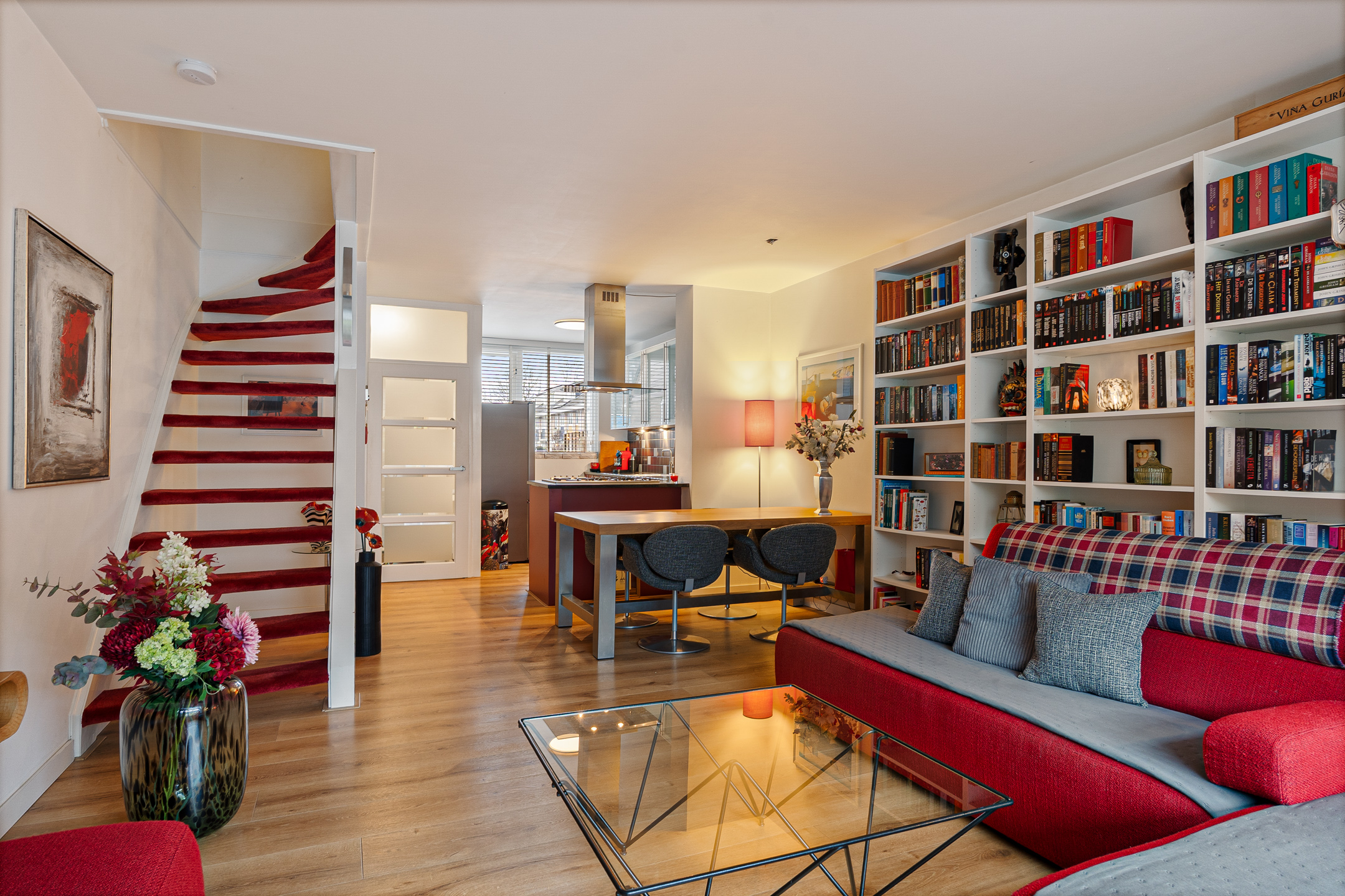 De ruime en lichte woonkamer is in 2018 geheel verbouwd: de open haard, haardplateau, gesloten trapopgang en bergkast zijn uitgebroken, waardoor de woning nu een veel ruimere opstelling heeft gekregen met een mooie open trapopgang. Wel is er nog een mogelijkheid tot het installeren van een nieuwe houtkachel.