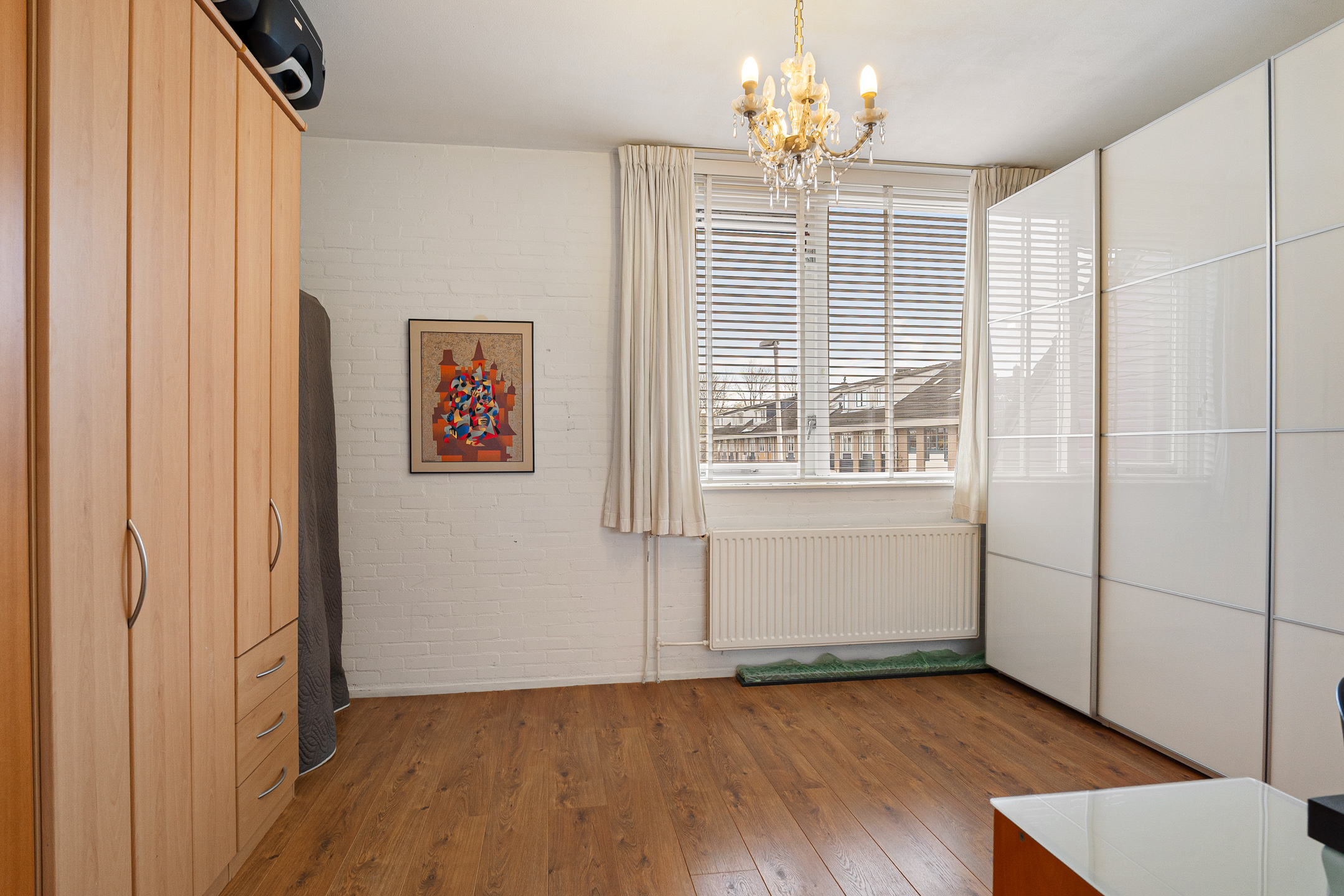 Op de eerste verdieping bevinden zich twee royale slaapkamers, beide over de gehele breedte van de woning. De slaapkamer aan de voorzijde is voorzien van laminaatvloer.