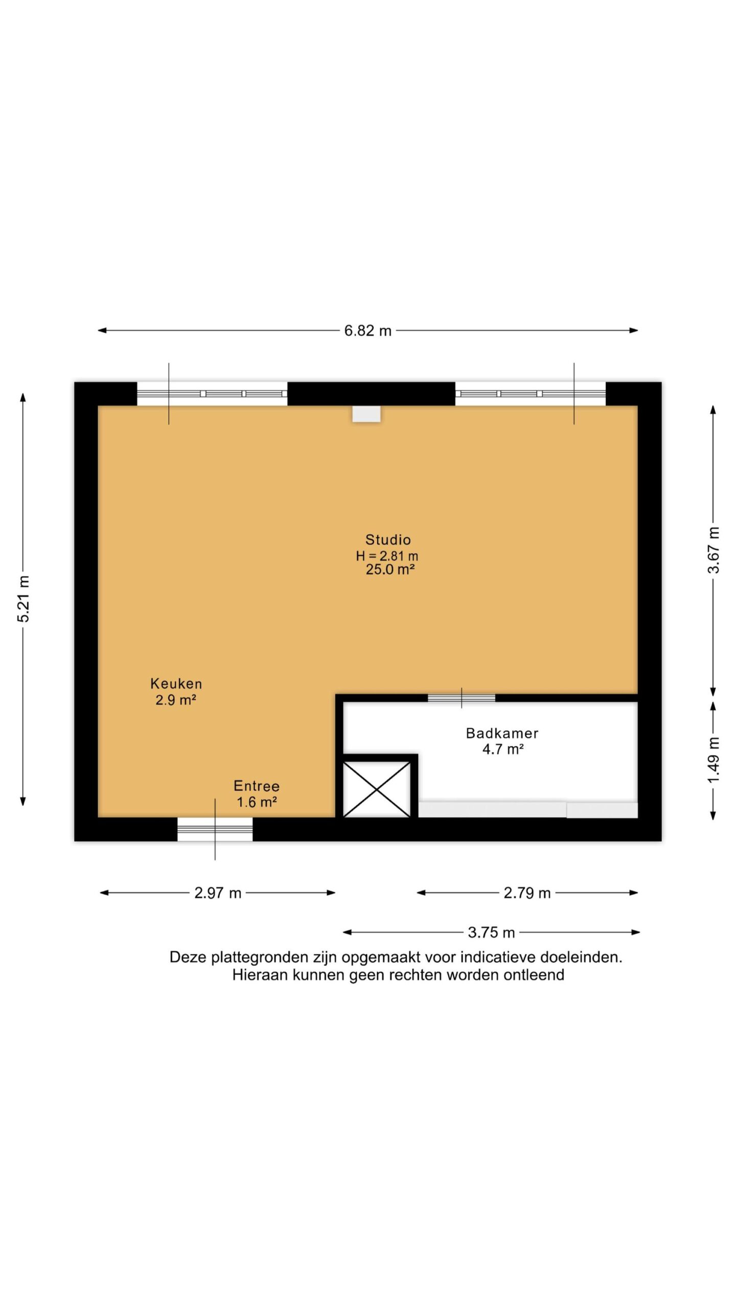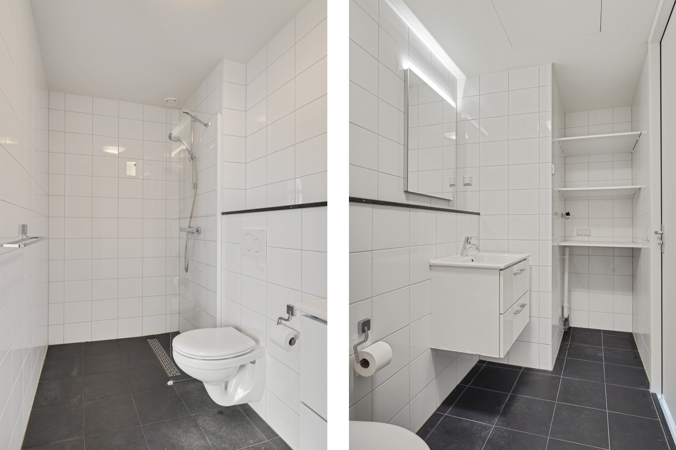 Via de gedeelde entree en trap bereik je de studio op de derde verdieping. Je komt binnen in de hal met toegang tot de moderne badkamer en de lichte leefruimte.