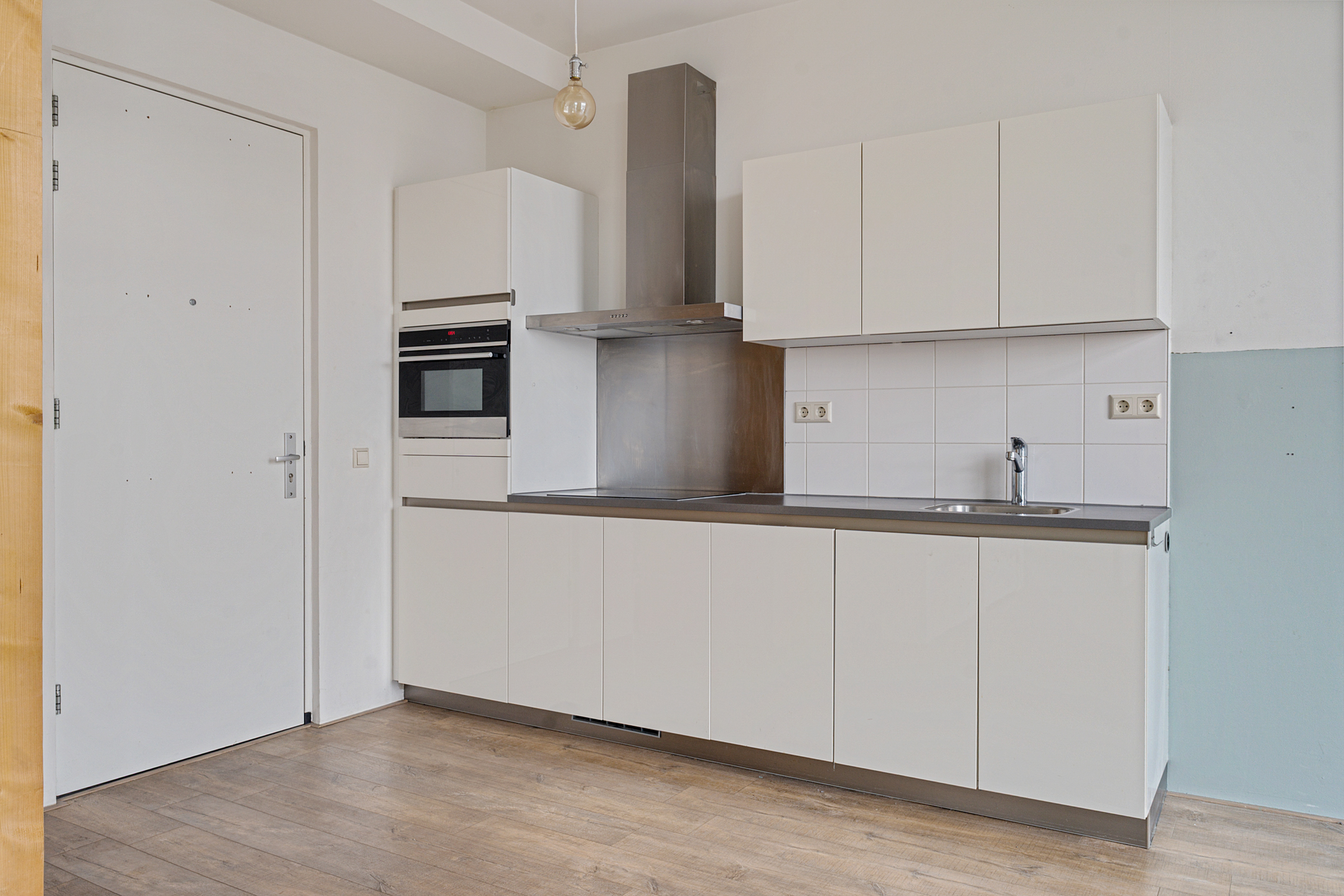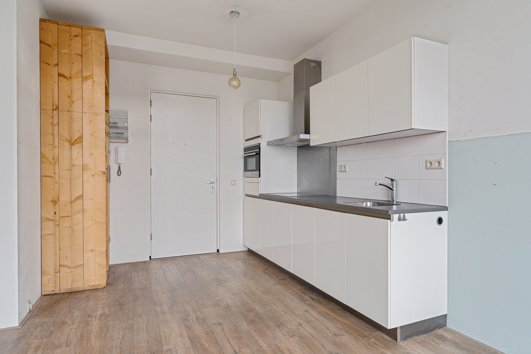 De keuken is praktisch geplaatst in een wandopstelling en voorzien van een inductiekookplaat, magnetron en voldoende kastruimte. De badkamer is modern betegeld en uitgerust met een douchehoek, wastafelmeubel, wandcloset en handdoekradiator.