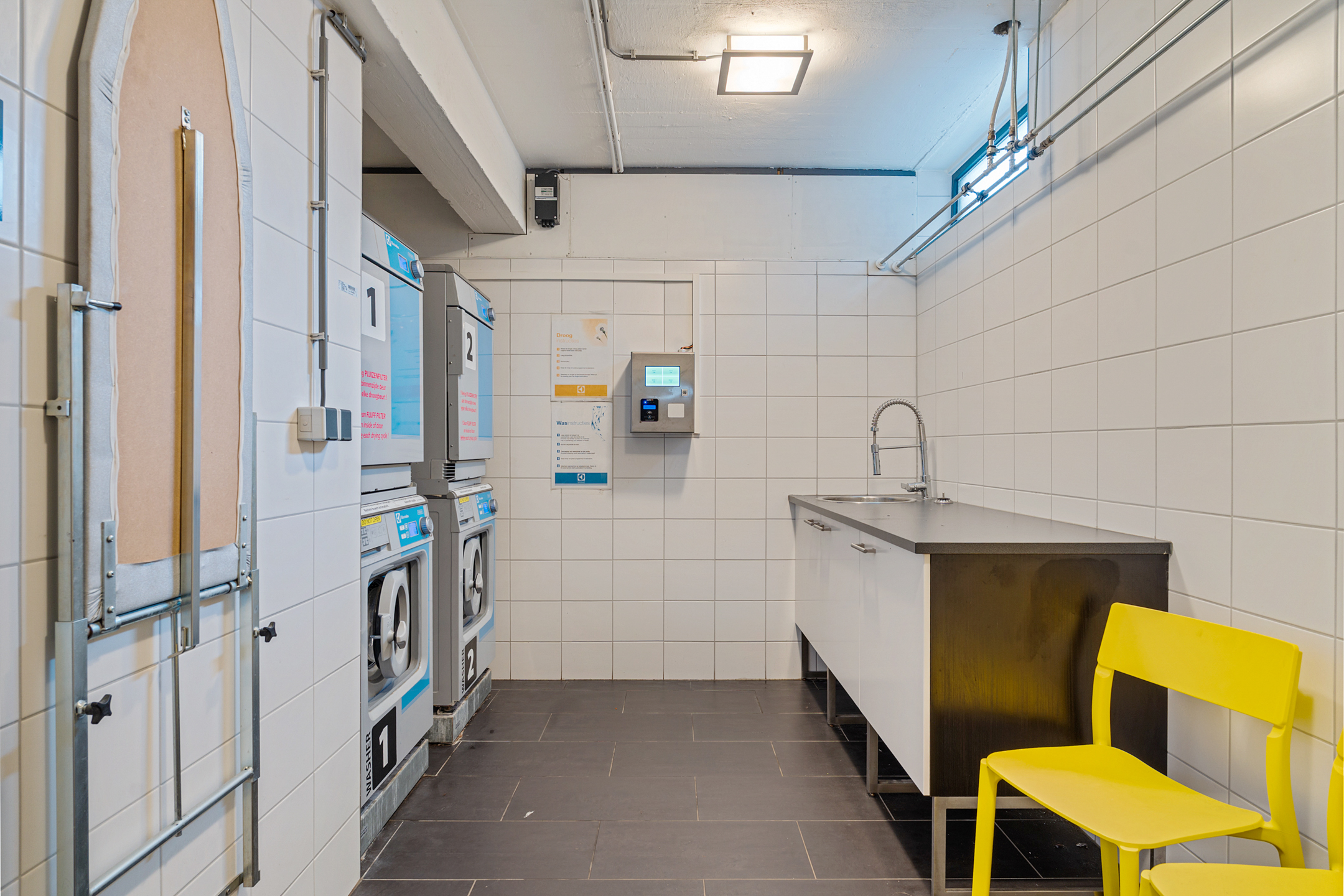 In de onderbouw beschik je over twee eigen bergingen, handig voor extra opslag of het stallen van fietsen en spullen die je niet dagelijks gebruikt. Ook is er een aparte ruimte voor gemeenschappelijk gebruik met gezamenlijke wasmachine, droger en strijkgelegenheid