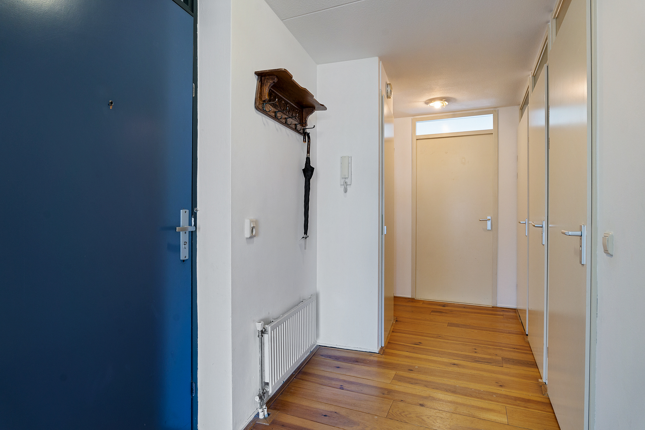 Bij binnenkomst in het complex word je verwelkomd in een verzorgde entree met een glazen pui die zorgt voor een lichte en open uitstraling. Hier vind je de brievenbussen en het bellentableau. Vanuit de hal heb je toegang tot zowel de lift als het trappenhuis, waarmee je comfortabel de verdiepingen bereikt.