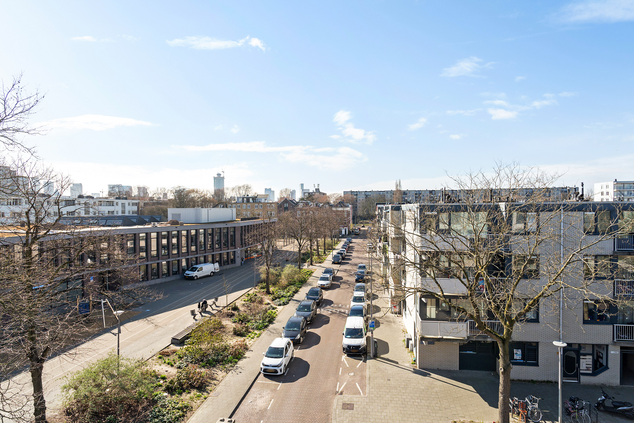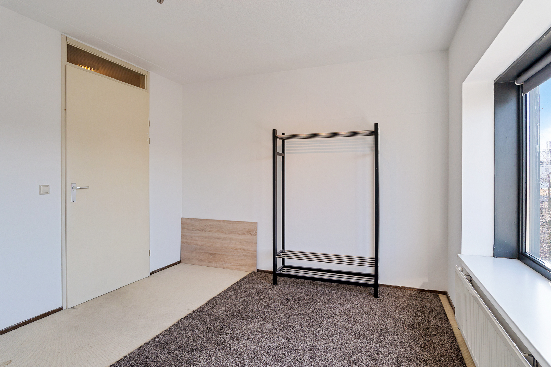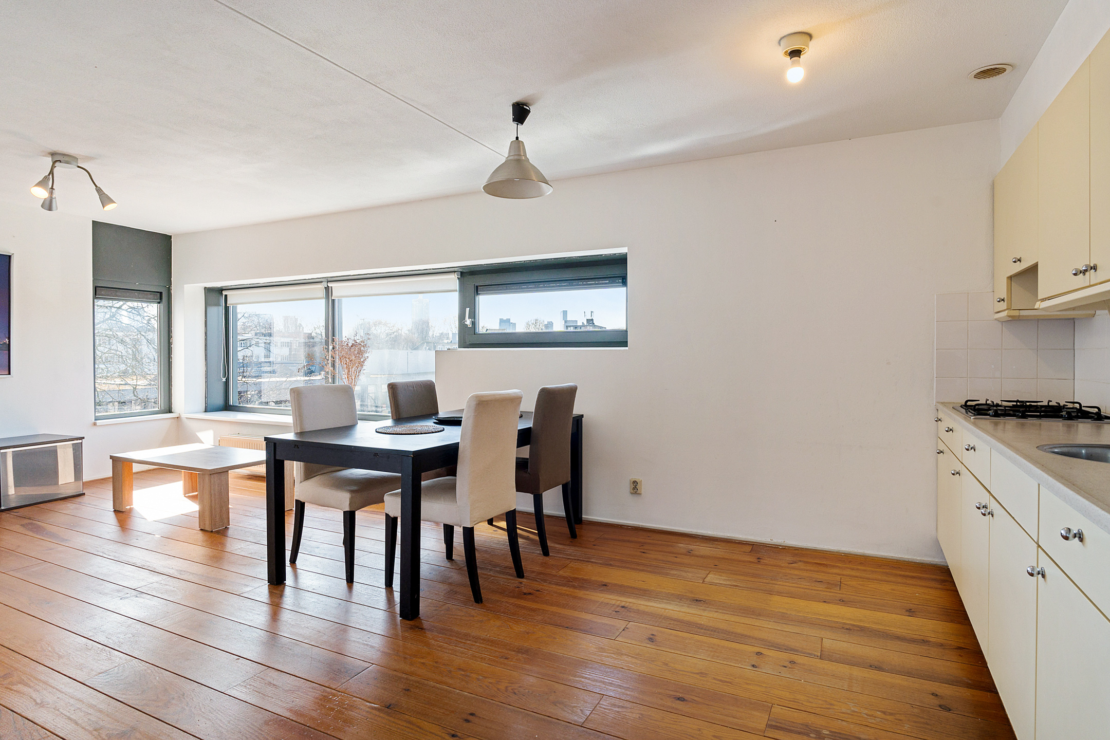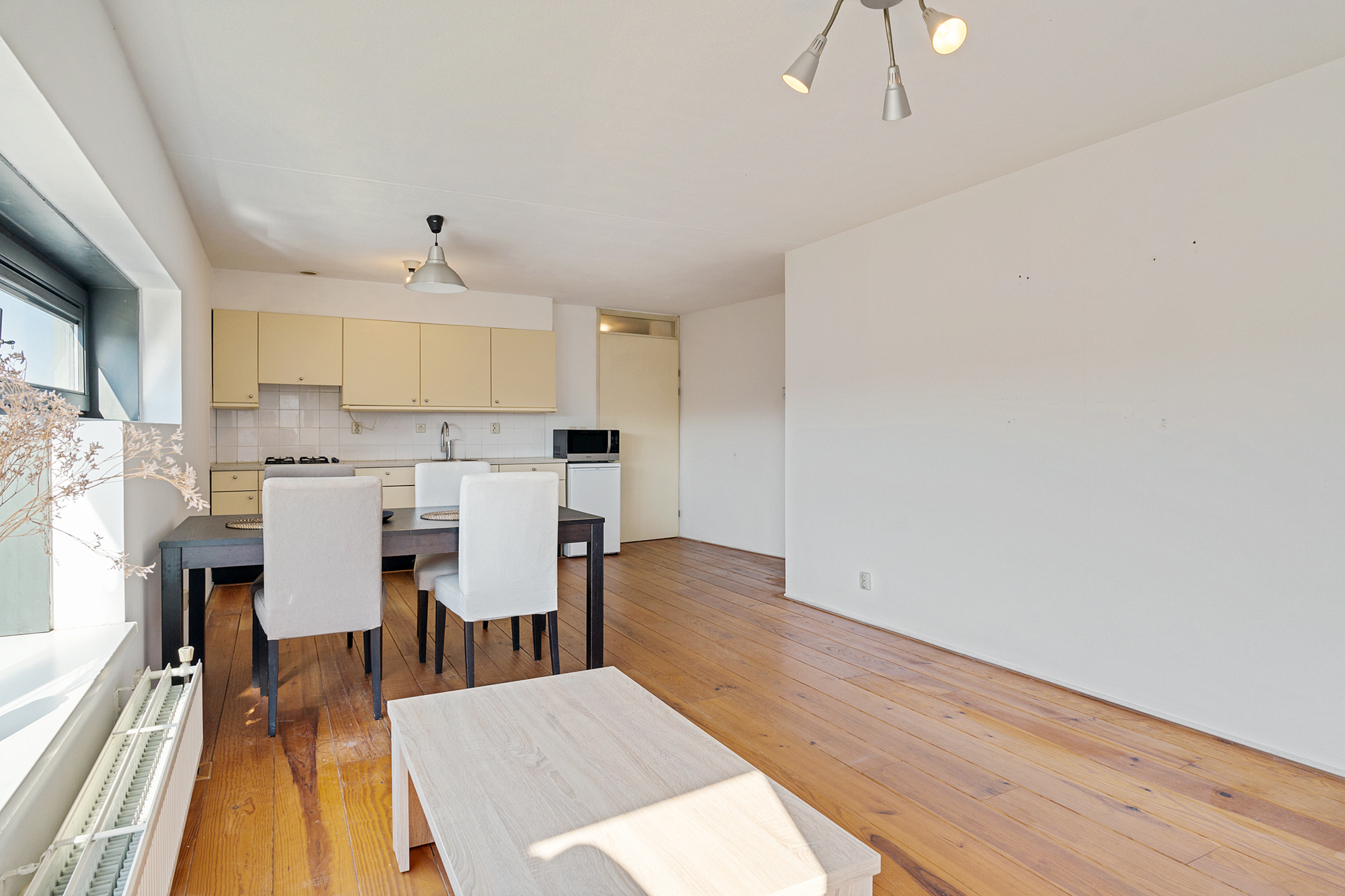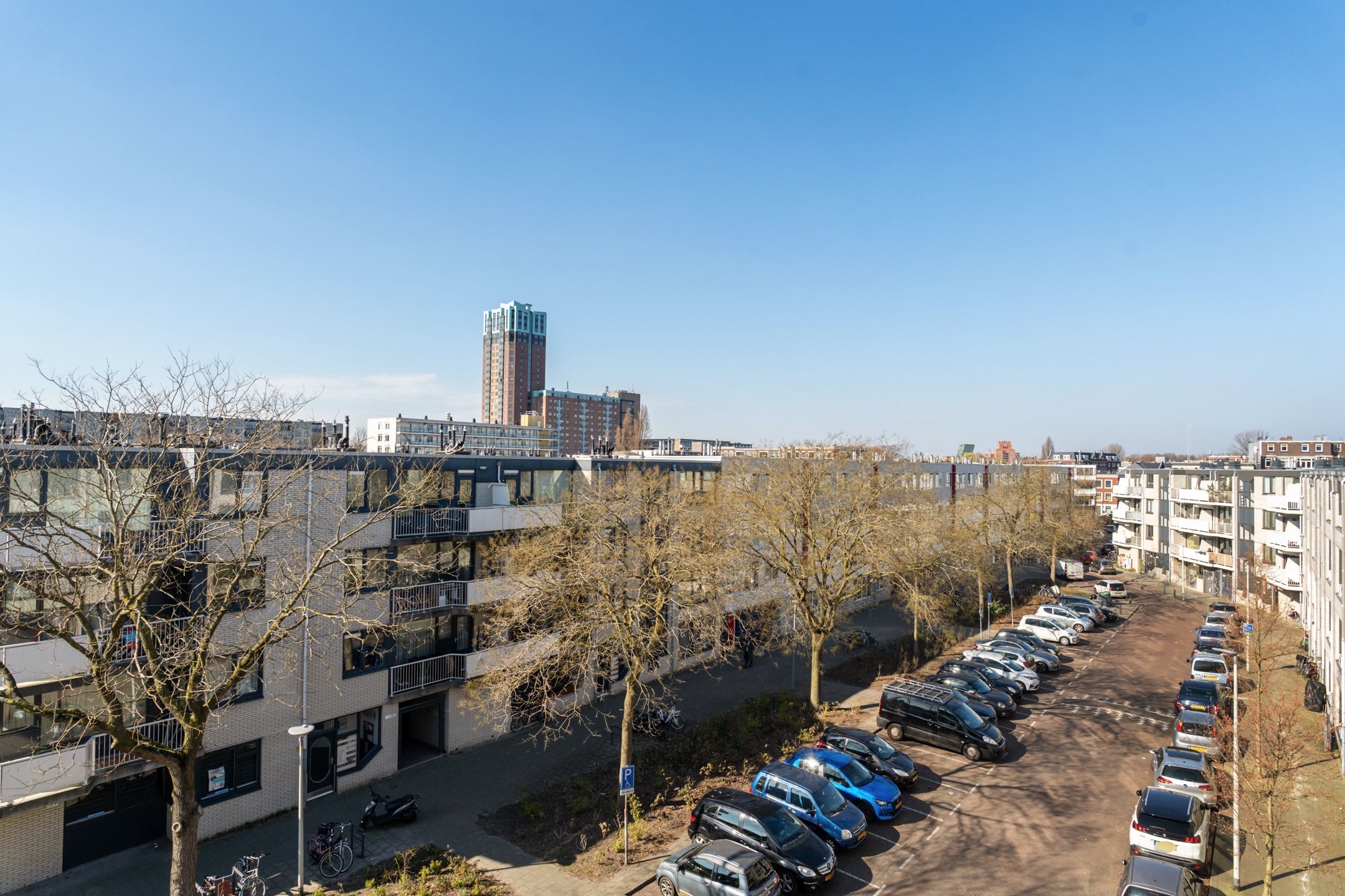 Bij binnenkomst in het appartement kom je in een hal die toegang biedt tot alle vertrekken. De ruime woonkamer is licht en luchtig, dankzij de grote raampartijen die zorgen voor een prachtig uitzicht op het Vredenoordplein en de skyline van Rotterdam. De woonkamer is verbonden met de eenvoudige maar praktische open keuken.