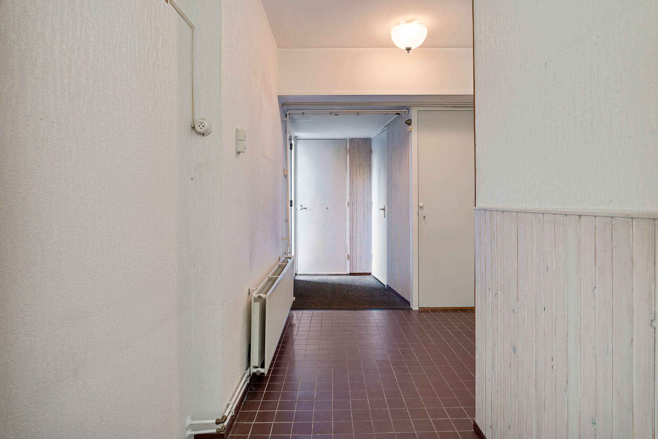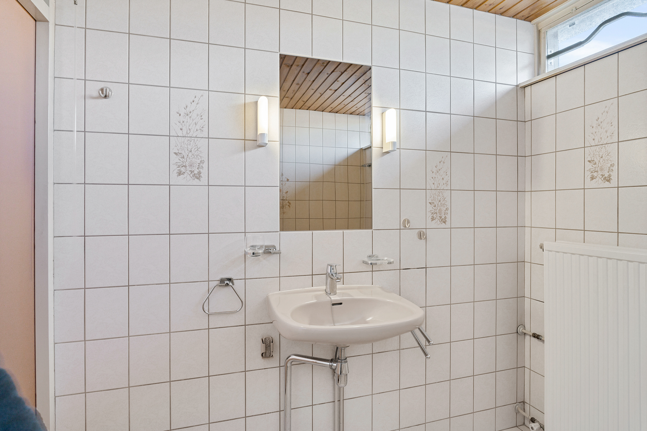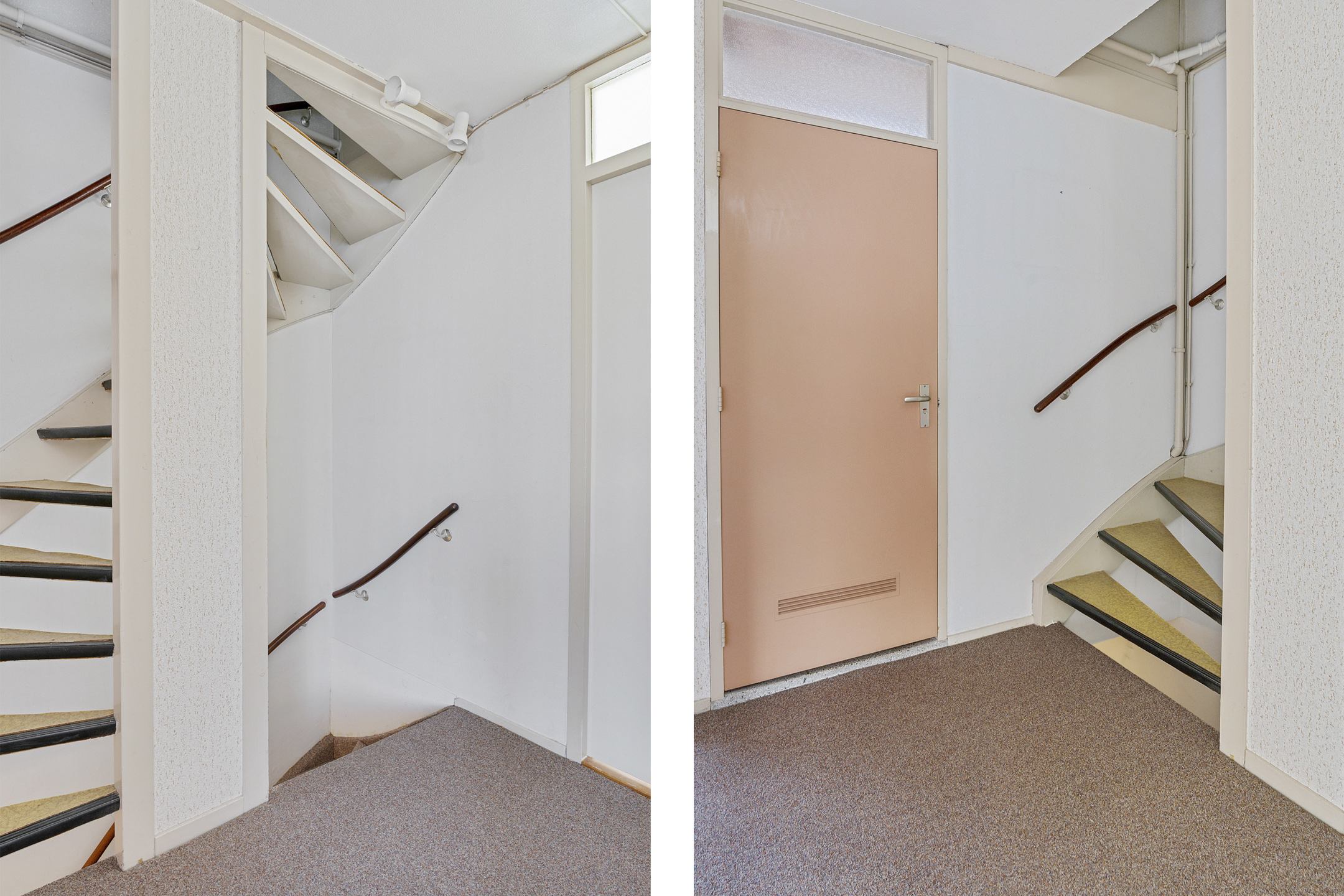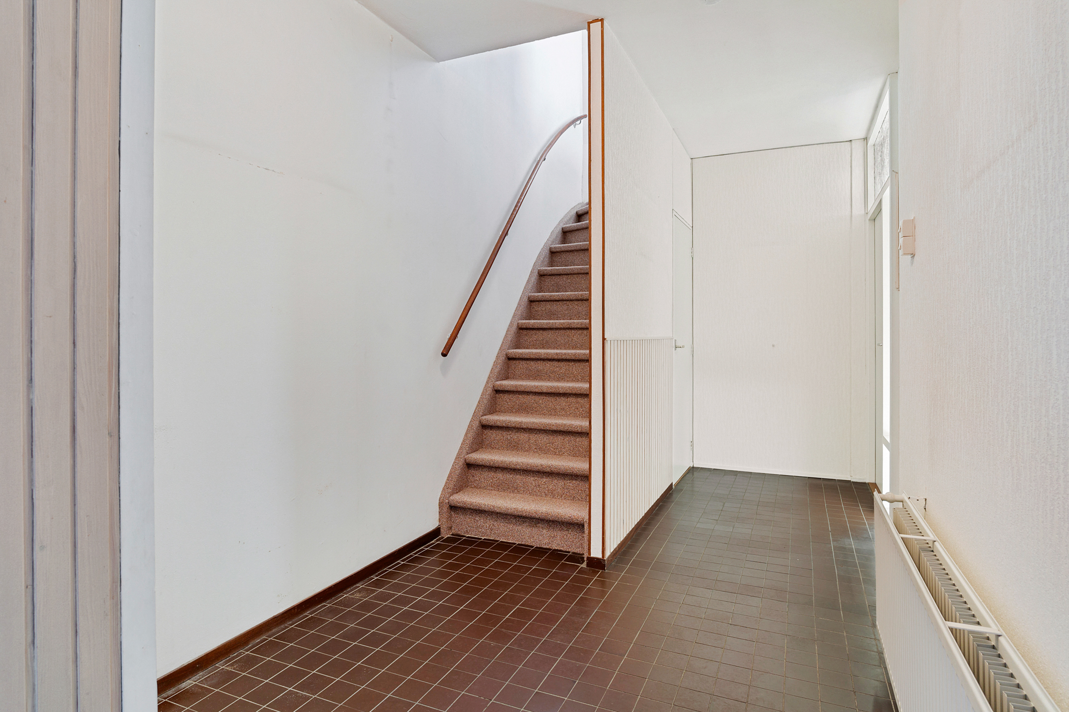 Je komt binnen in de ruime hal met trapopgang naar de eerste verdieping, meterkast, trapkast en toiletruimte. Vanuit de hal heb je toegang tot de inpandige stenen berging, die ook van buitenaf bereikbaar is – ideaal voor fietsen, hobbyspullen of extra opslag.
