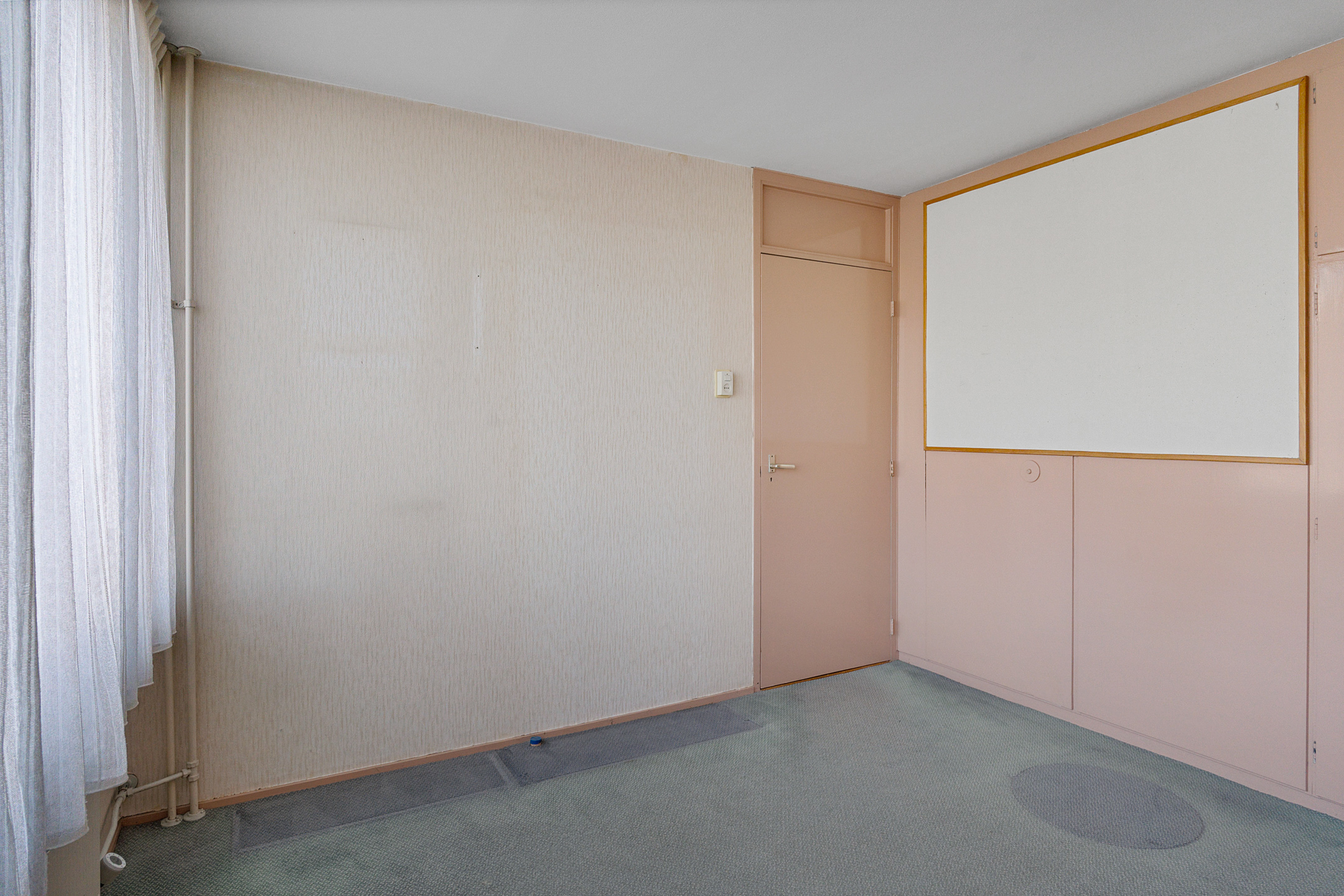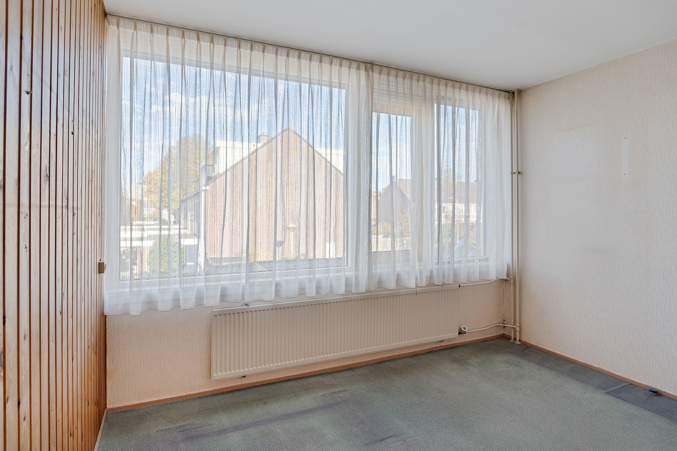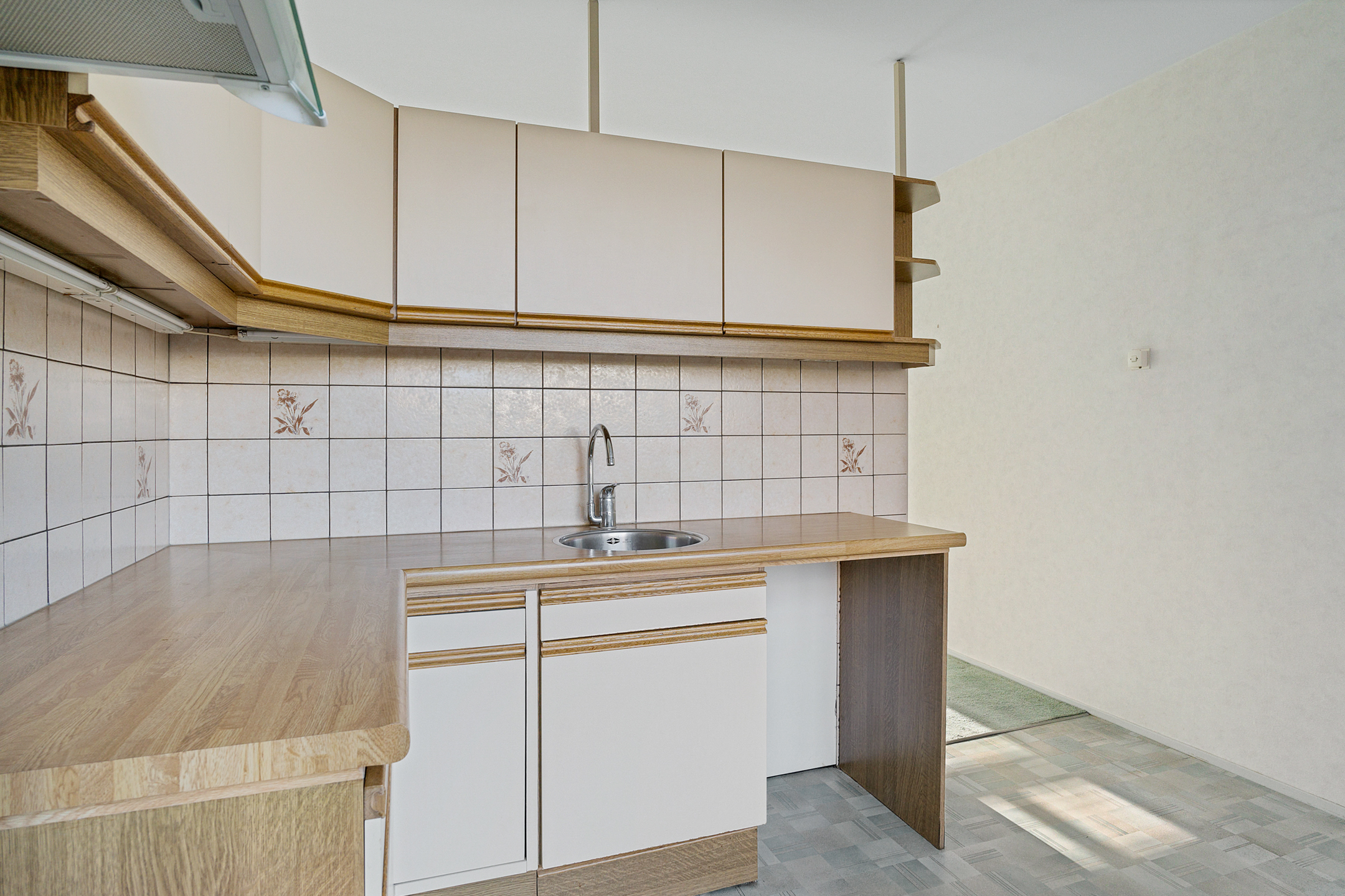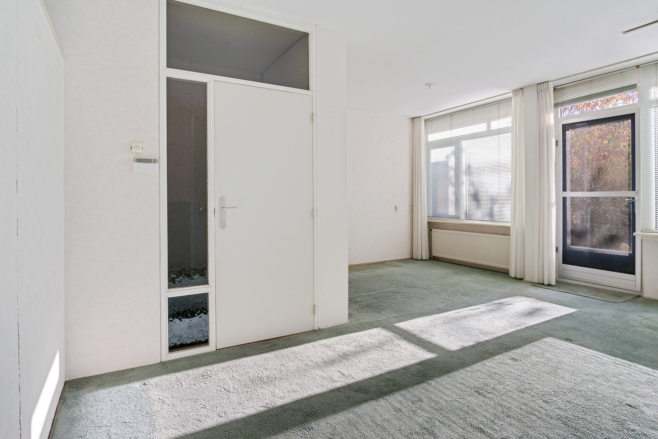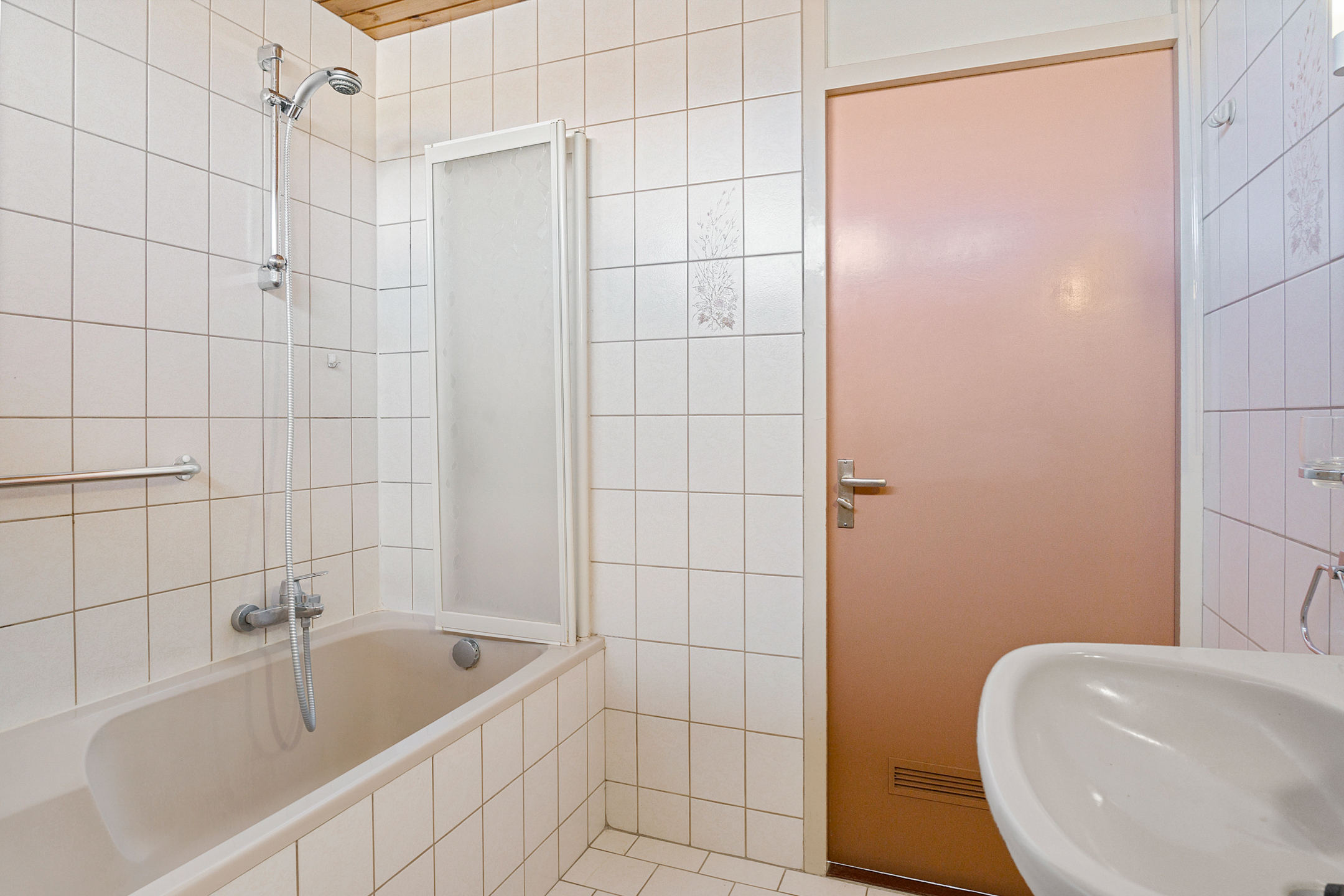 Aan de voorzijde bevindt zich de halfopen keuken. Deze is eenvoudig uitgevoerd en niet voorzien van inbouwapparatuur, waardoor je hier alle vrijheid hebt om een moderne keuken naar eigen smaak te realiseren. De brede woonkamer aan de achterzijde biedt dankzij de grote raampartijen veel lichtinval en zicht op de tuin. Wil je graag een open woonkeuken? Door de breedte en indeling behoort een keuken aan de achterzijde zeker tot de mogelijkheden.