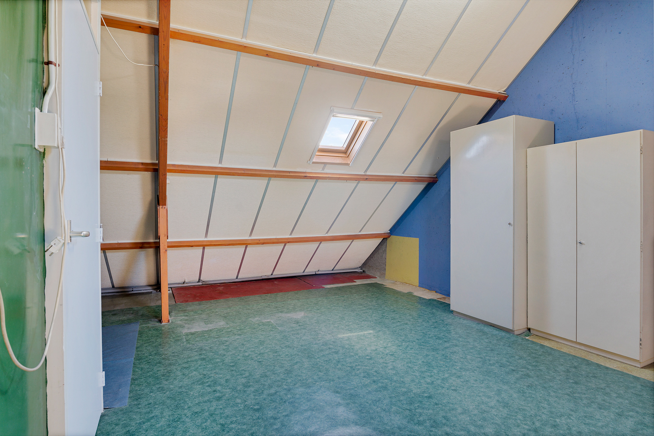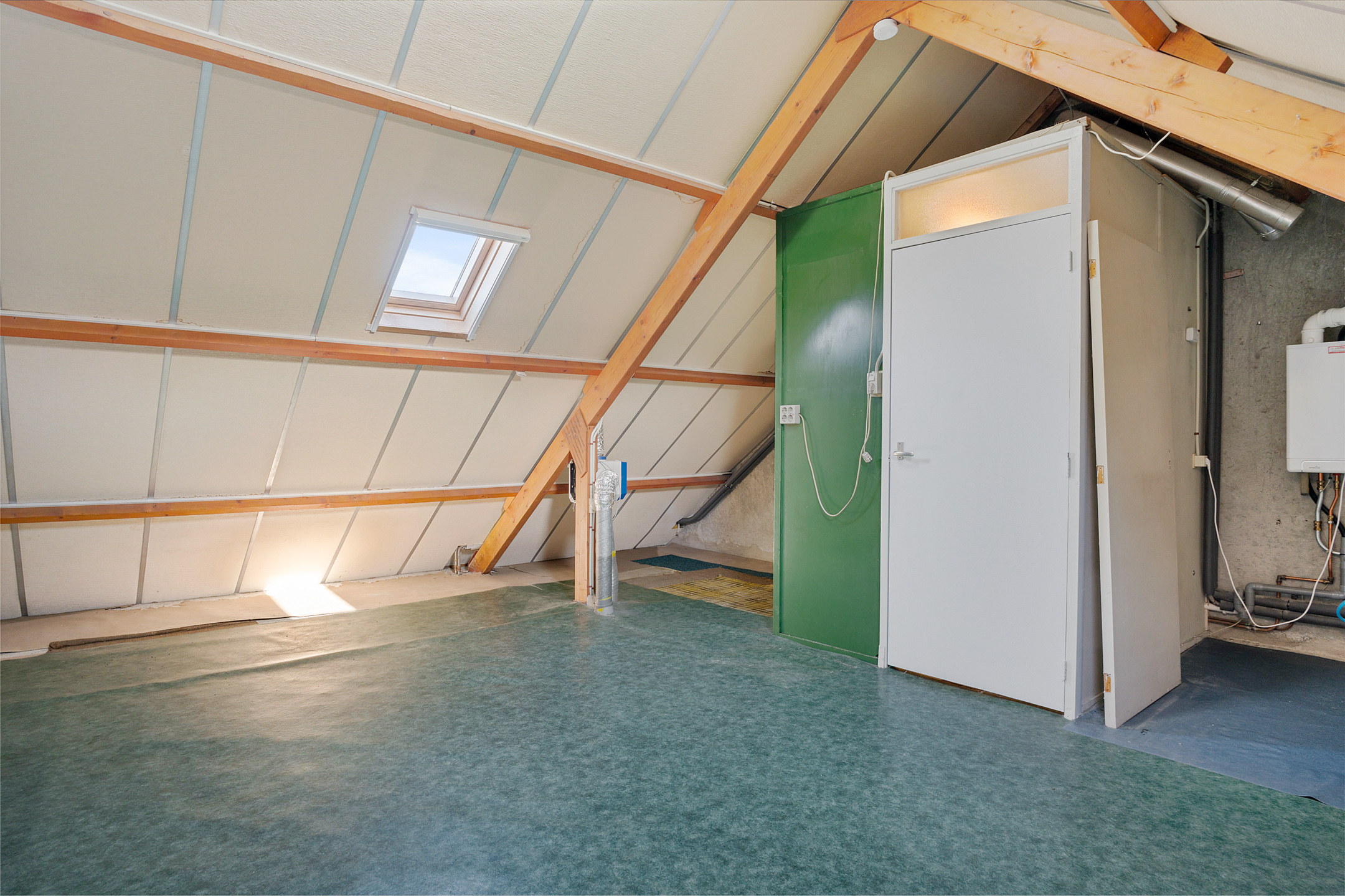 De tweede verdieping biedt een verrassend ruime vierde slaapkamer met opstelplaatsen voor de cv-combiketel (vernieuwd in 2019) en wasapparatuur. Dankzij de royale ruimte is hier volop potentie: een dakkapel behoort tot de mogelijkheden en zelfs het creëren van twee slaapkamers kan hier een realistische optie zijn.