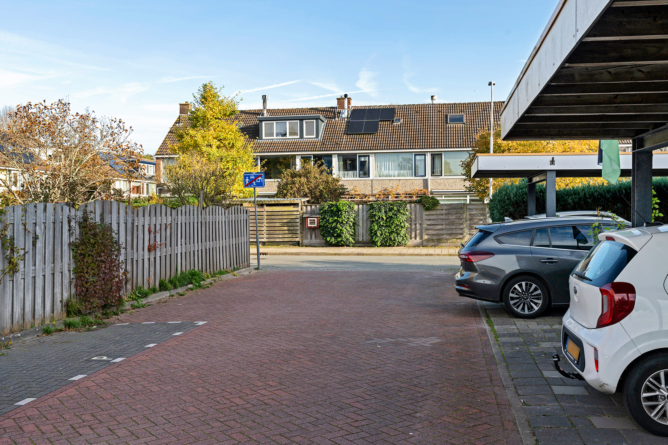 Aan de voorzijde beschik je over een eigen carport, waardoor je altijd verzekerd bent van een parkeerplek voor de deur. De voortuin is verzorgd aangelegd.